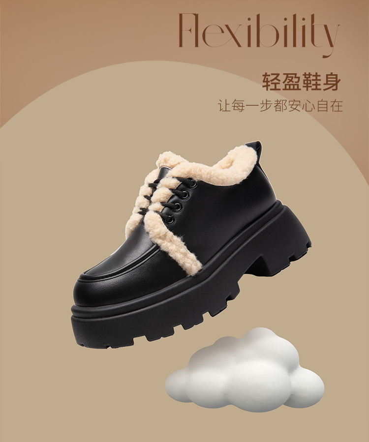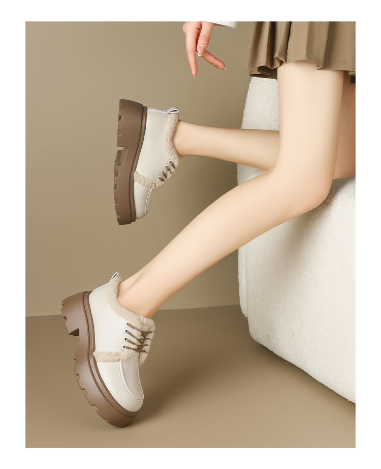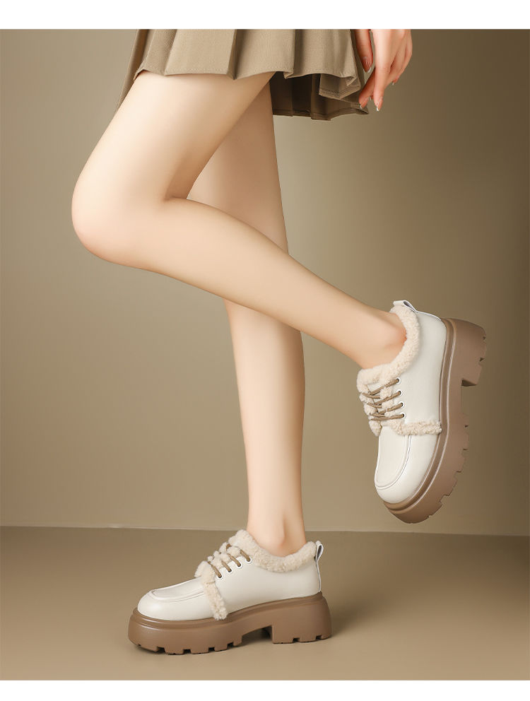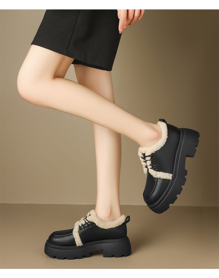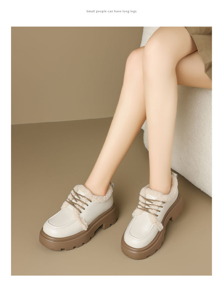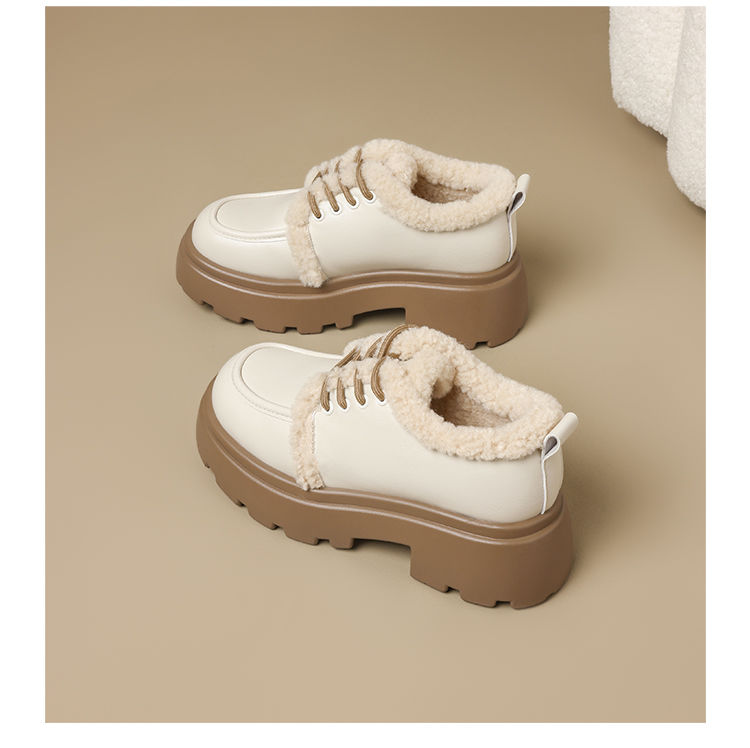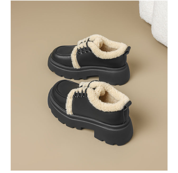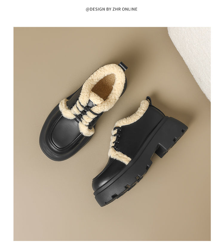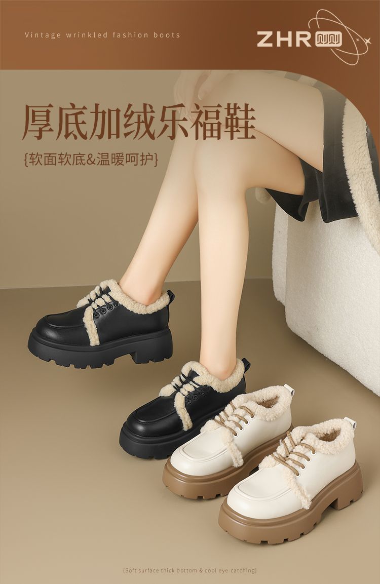 ZHR加绒乐福鞋女2024新款冬季厚绒保暖包跟棉鞋通勤ins厚底单鞋女