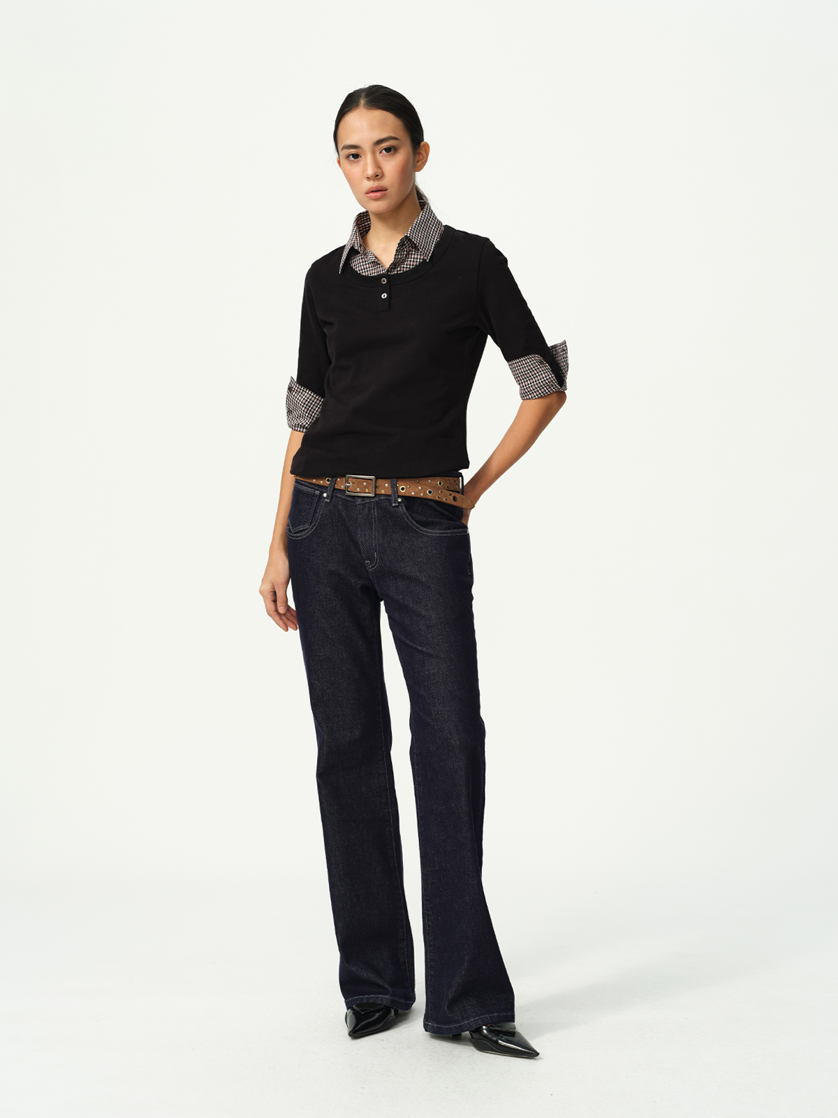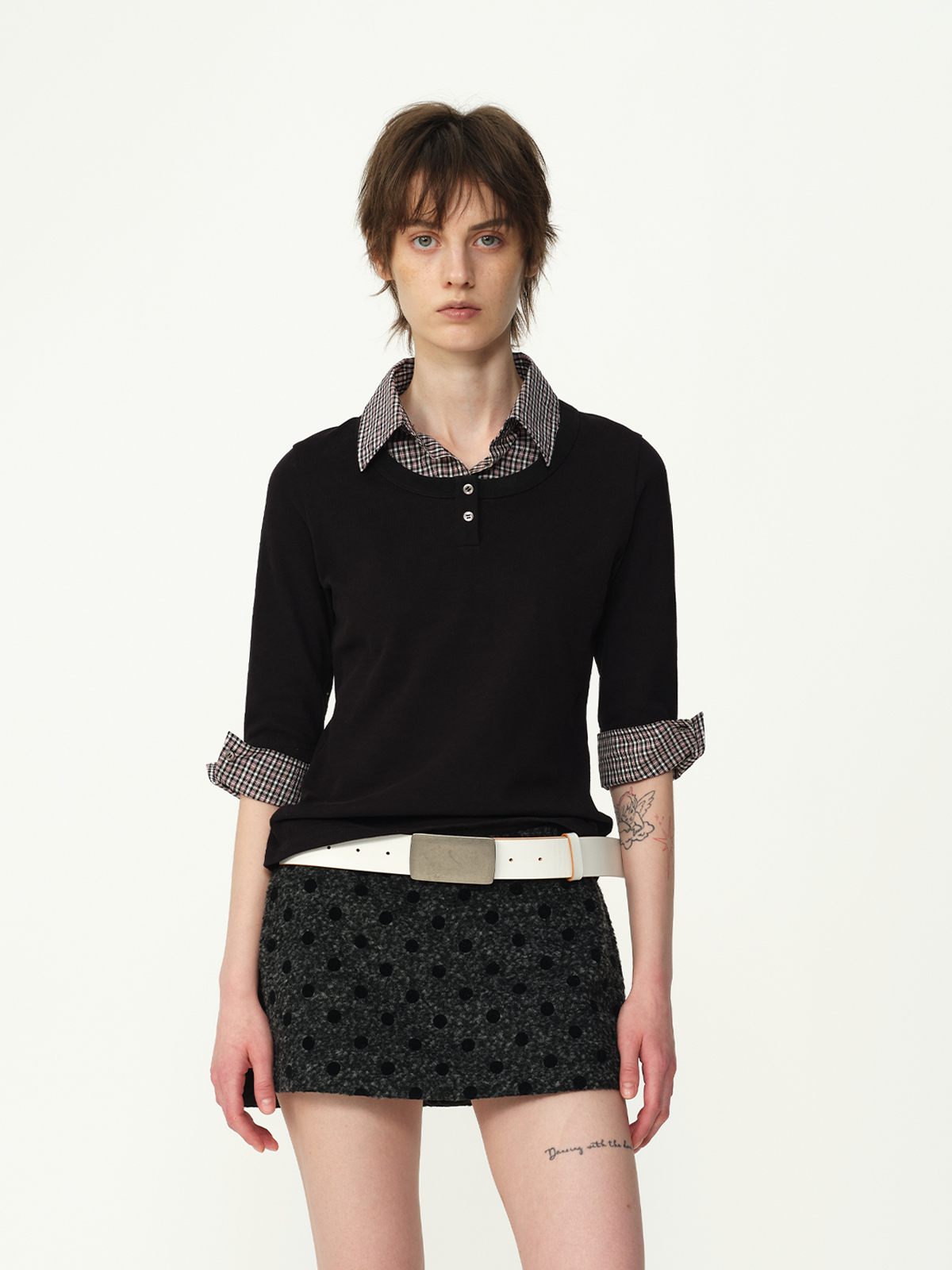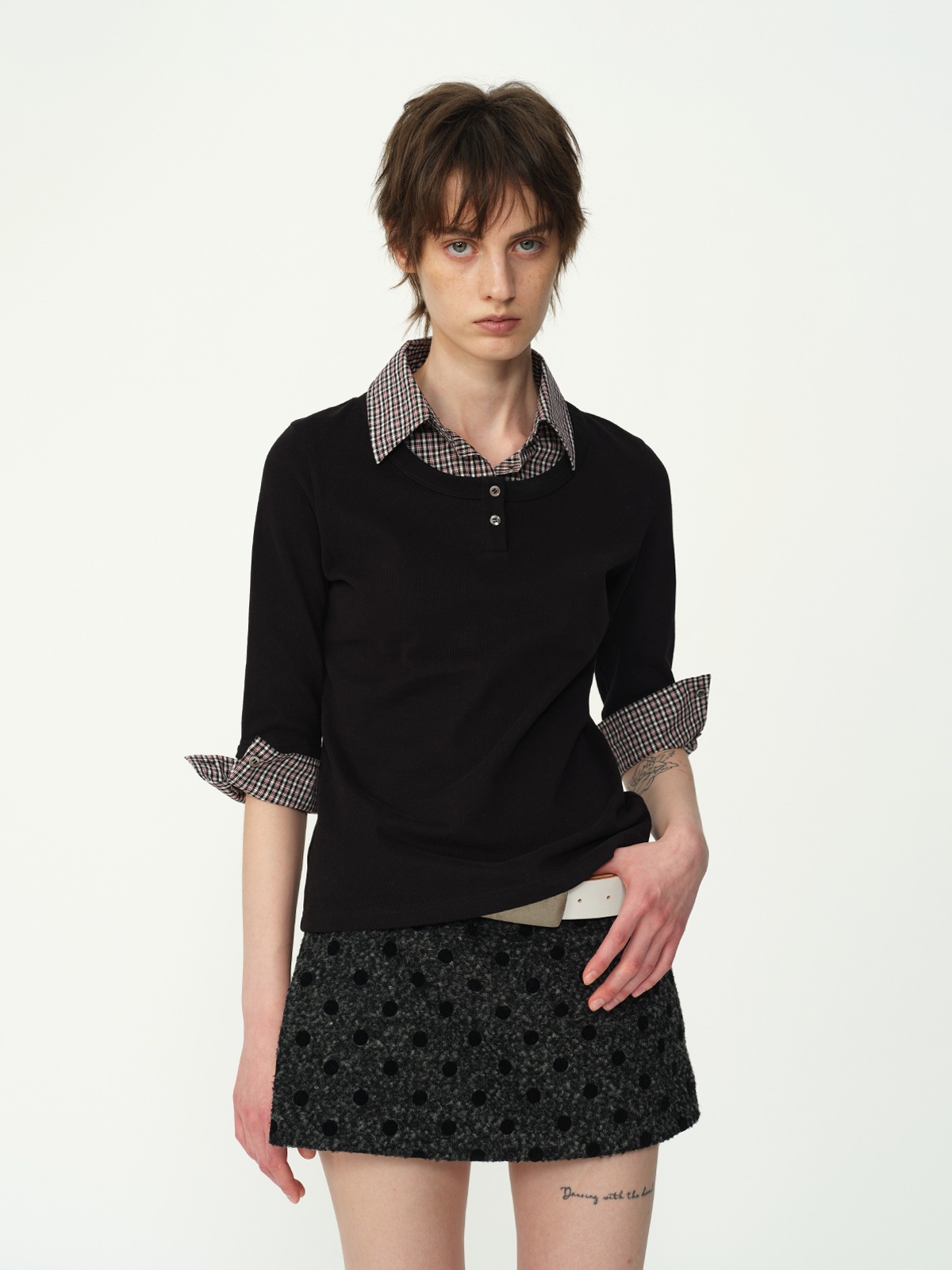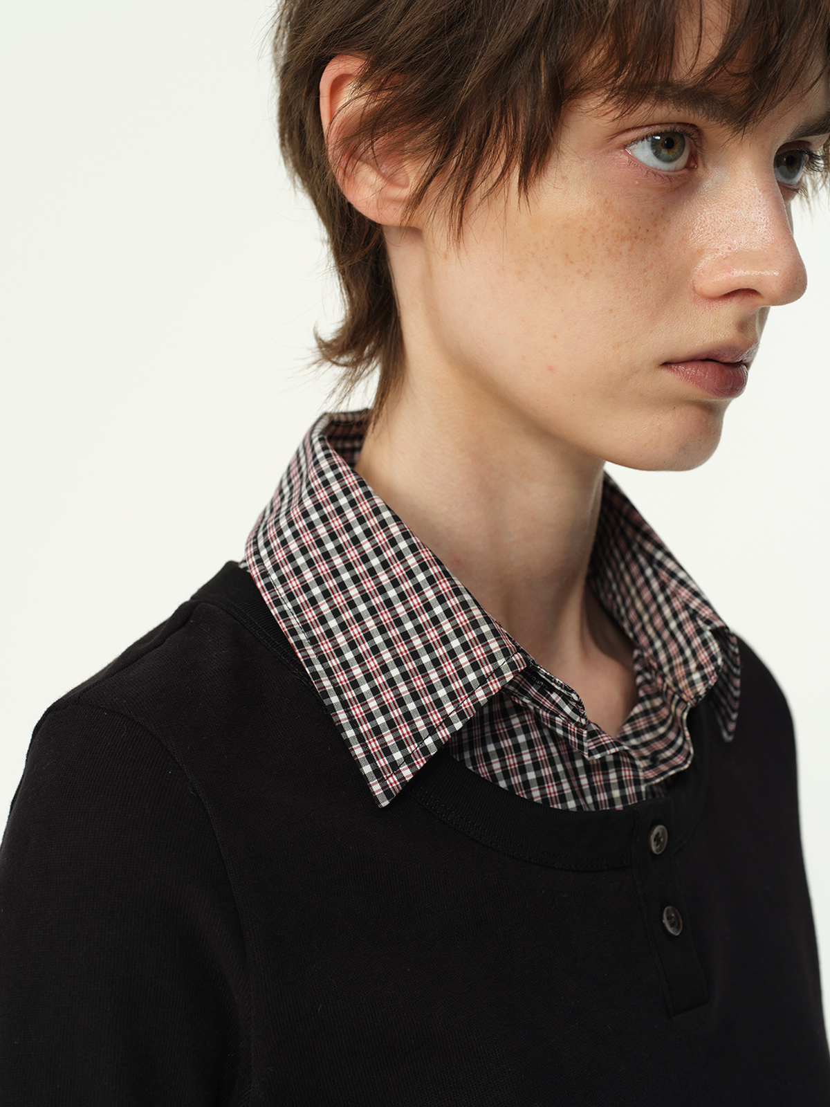 Evistub girls/E-5QCX1267/撞色格纹拼接假两件衬衫
