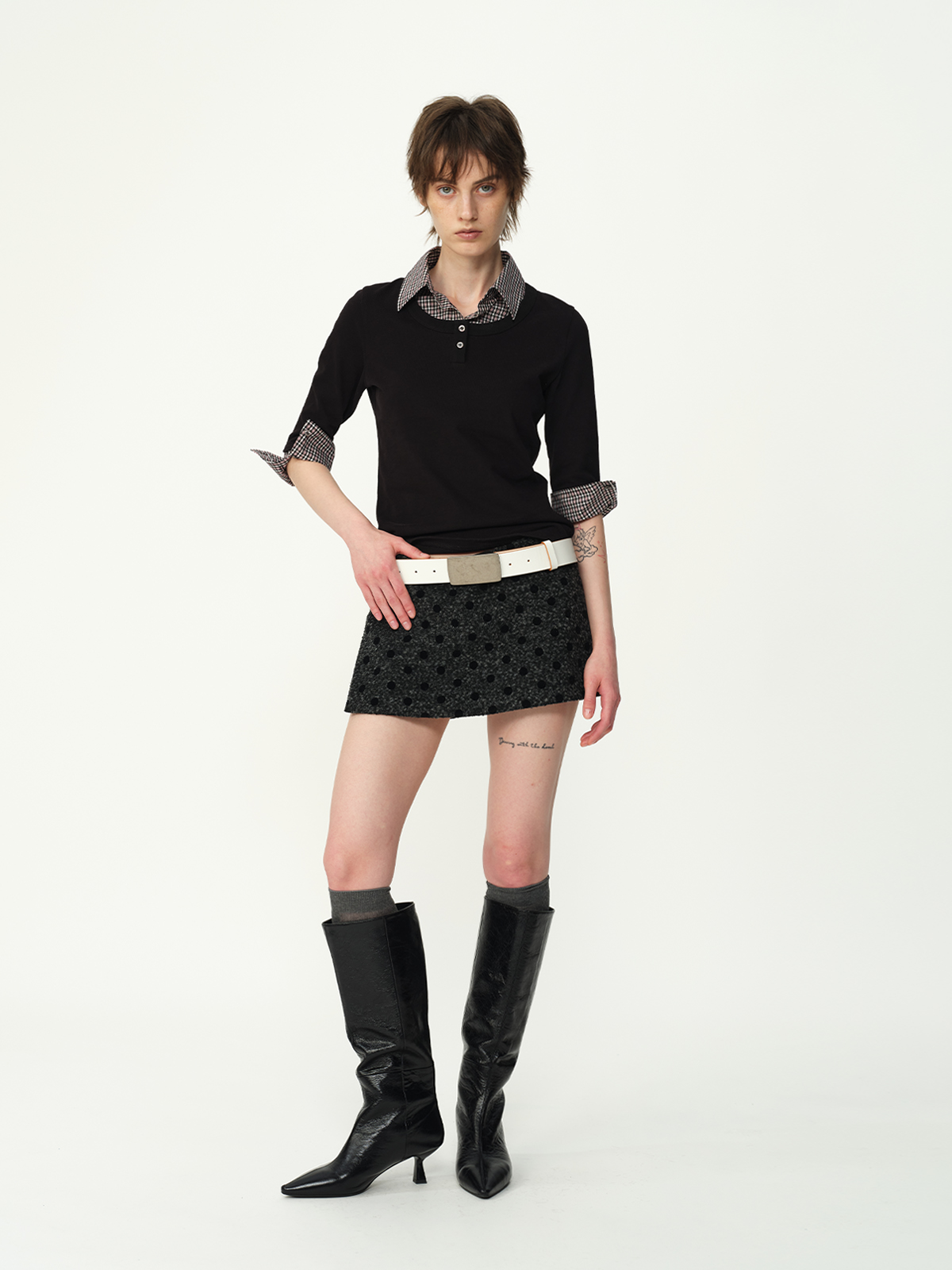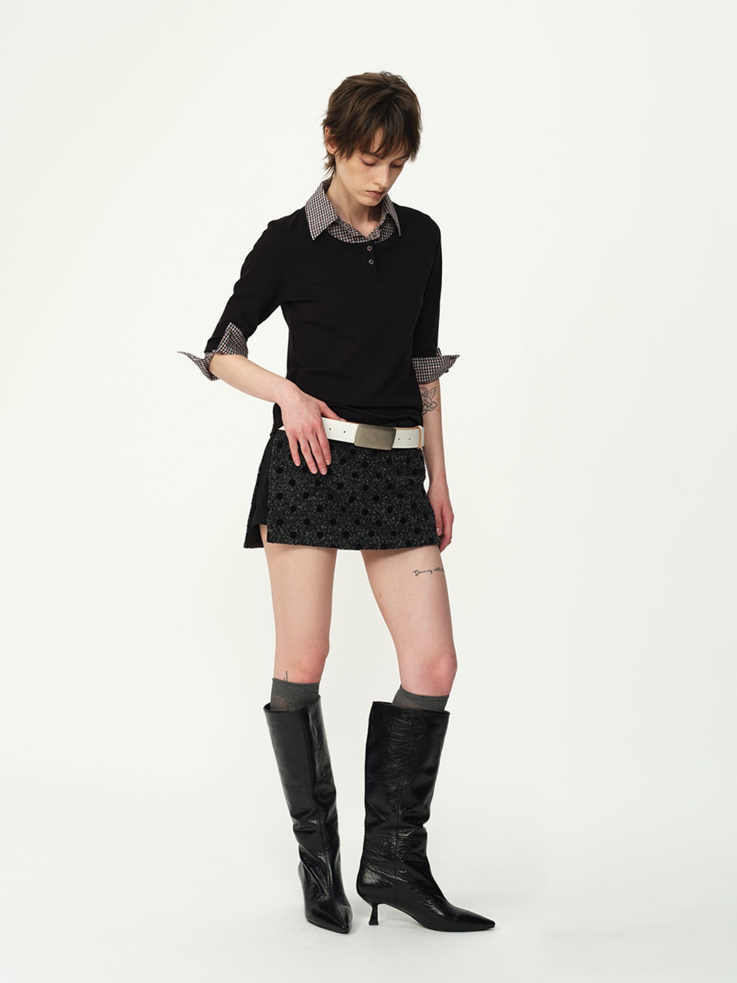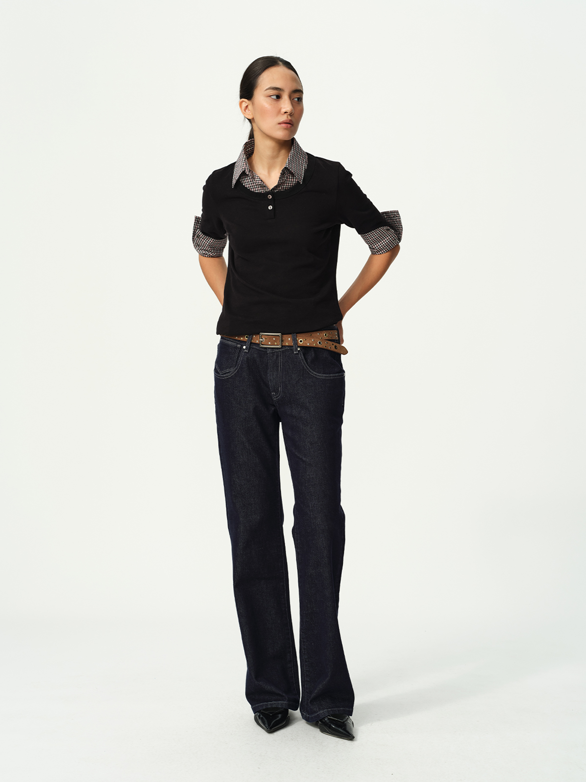 Evistub girls/E-5QCX1267/撞色格纹拼接假两件衬衫