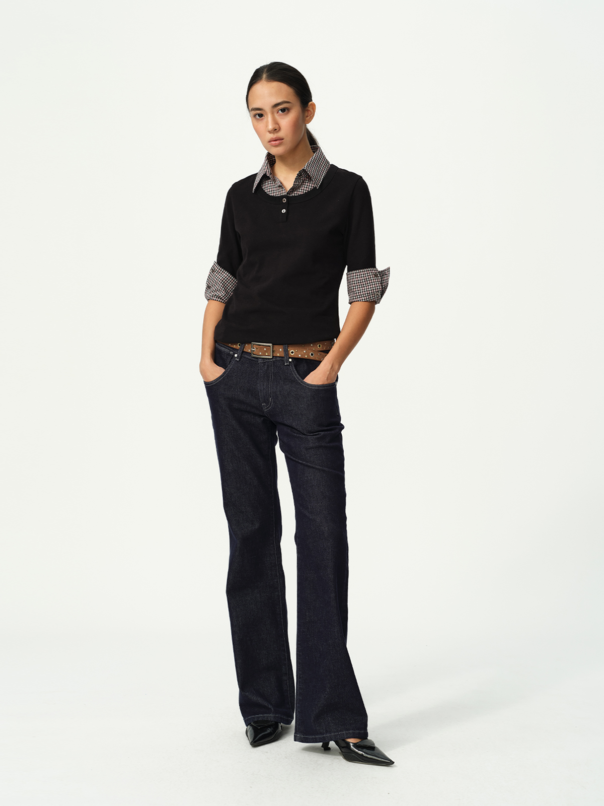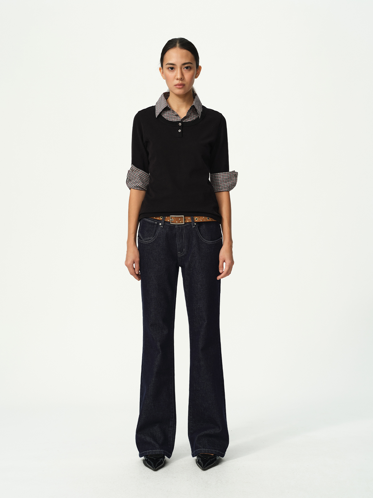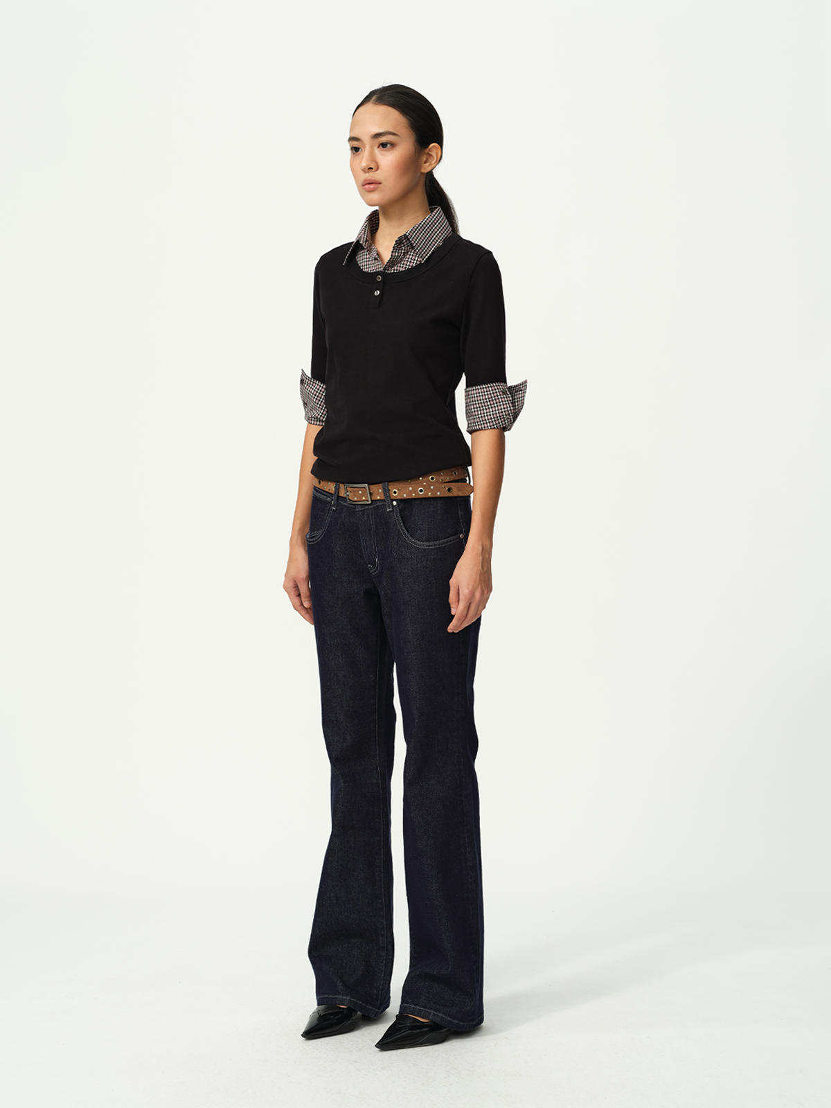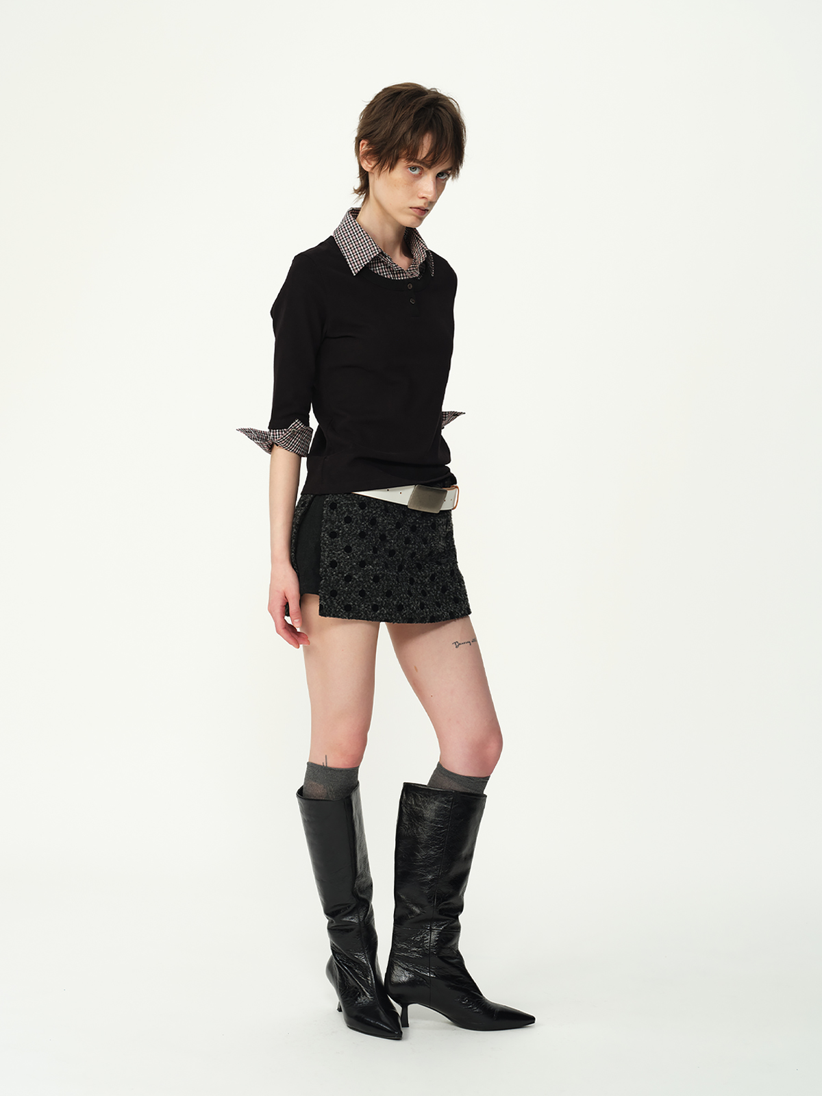 Evistub girls/E-5QCX1267/撞色格纹拼接假两件衬衫