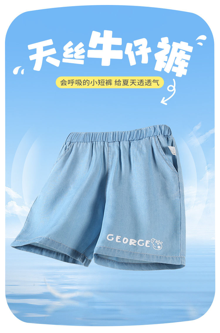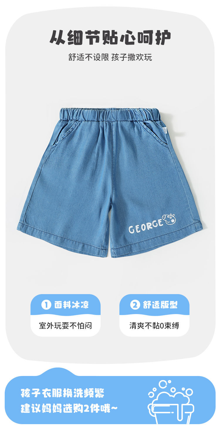 【100%莱赛尔】【120-150】【小猪佩奇】男童夏季牛仔短裤儿童裤子