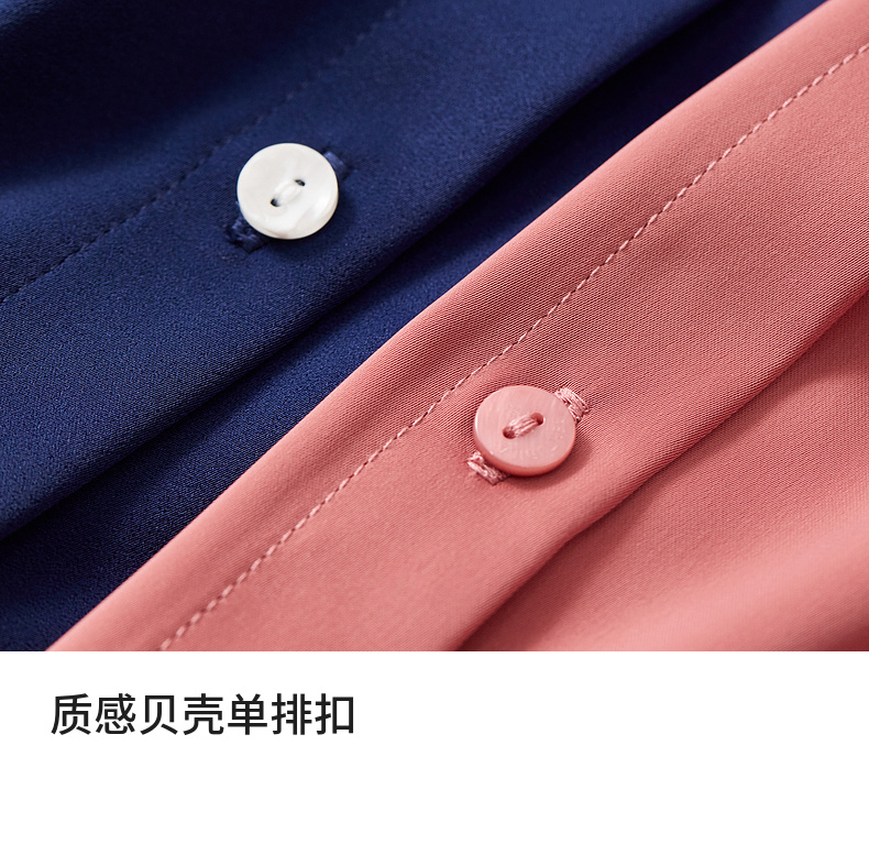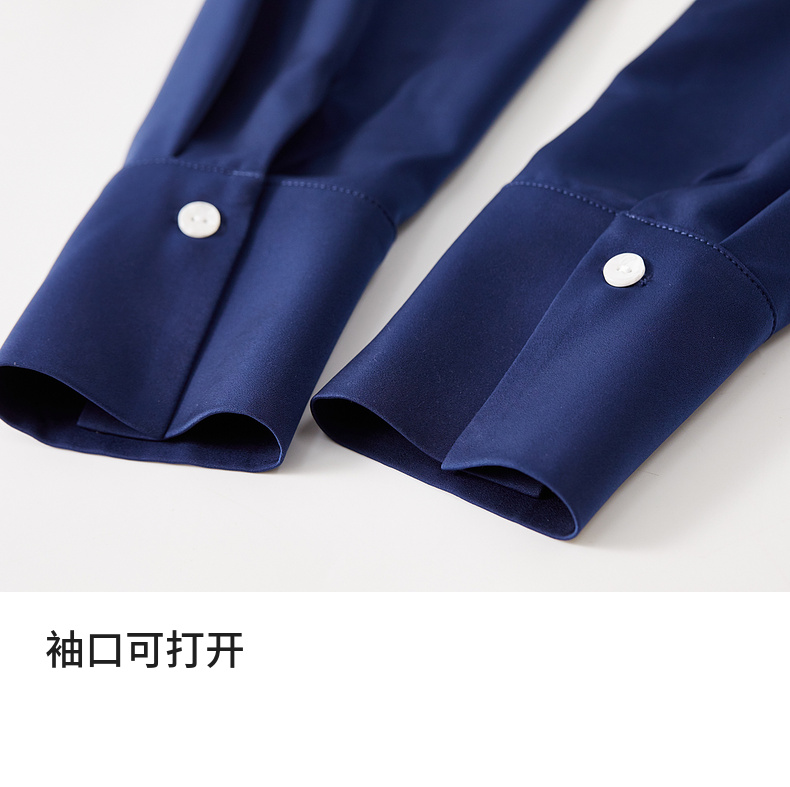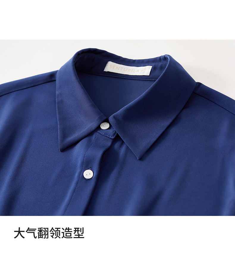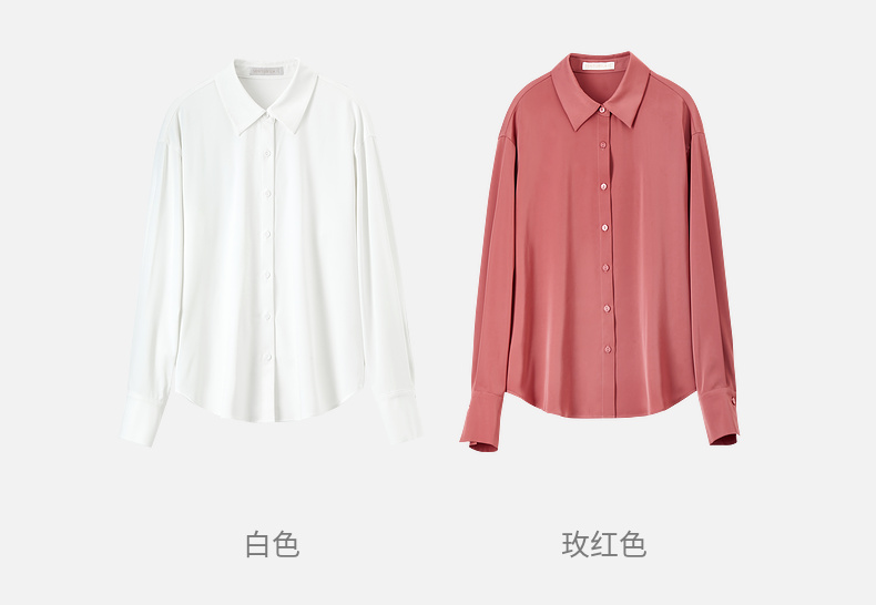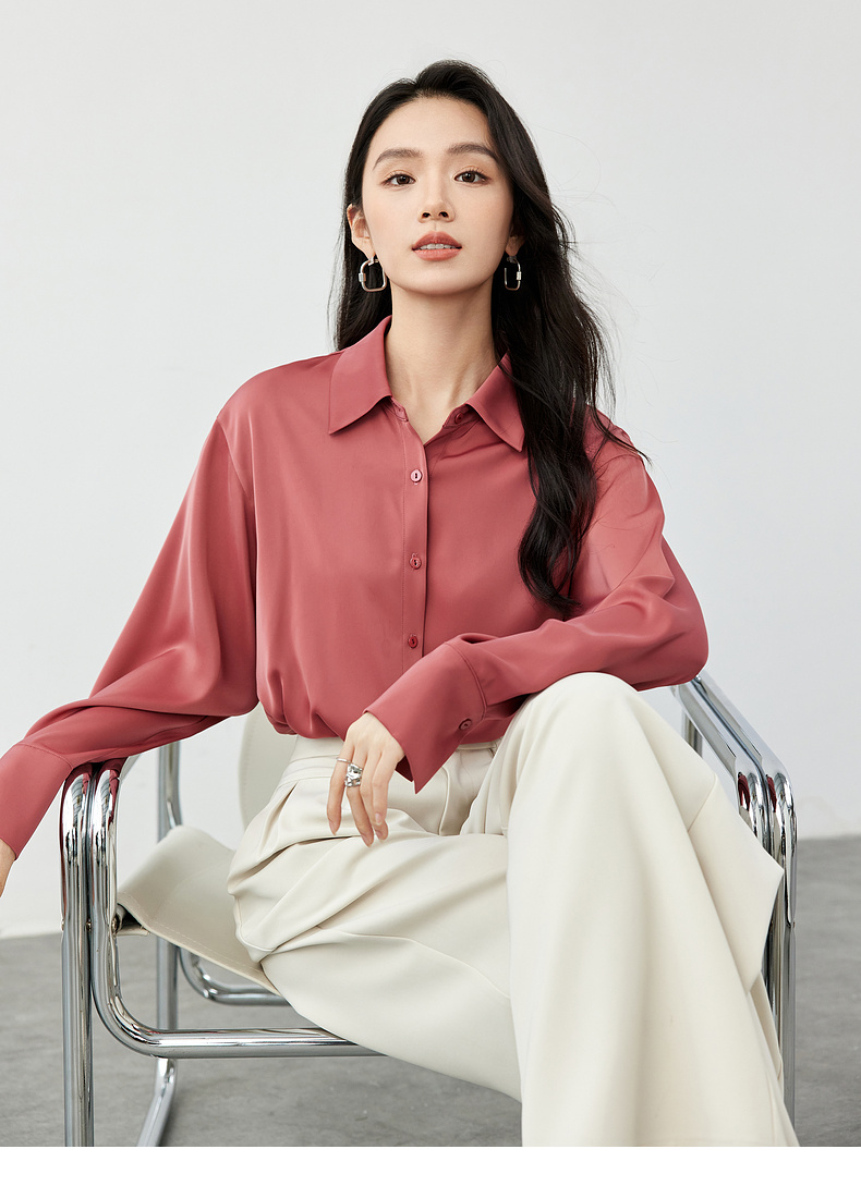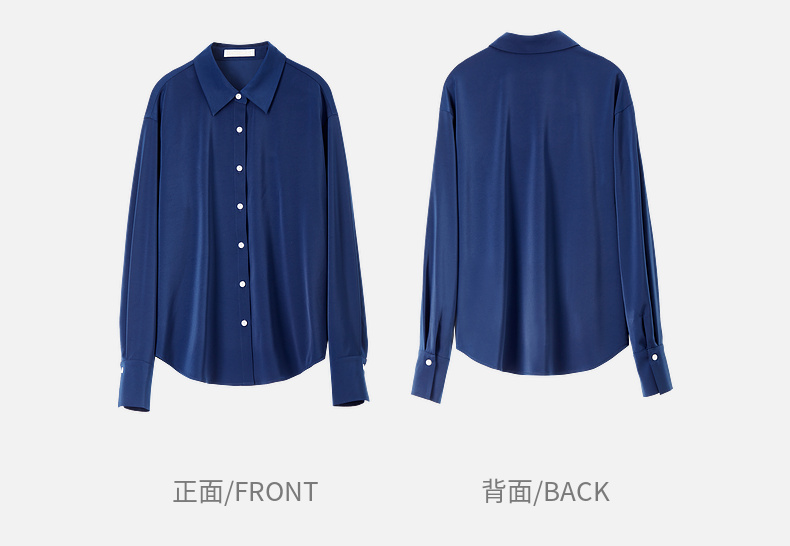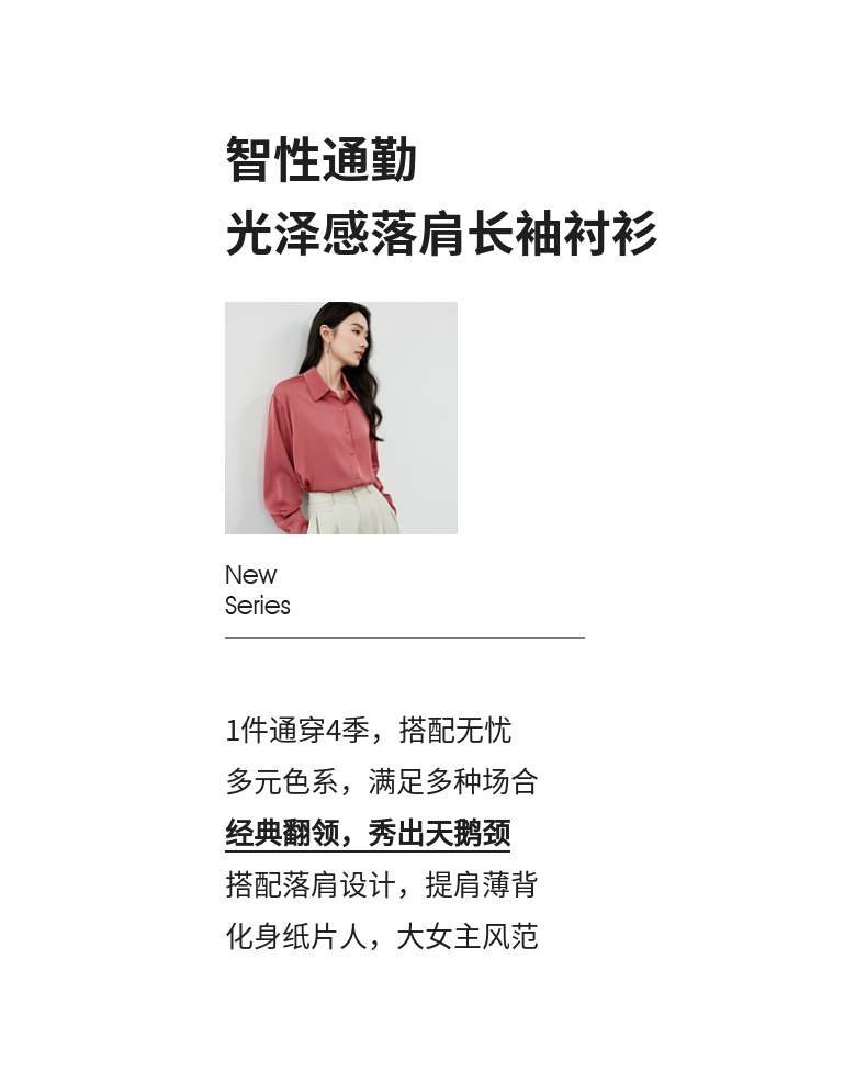 【内购】气质通勤光泽感长袖衬衫翻领落肩贝壳扣弧形衣摆上衣-153CC3580X