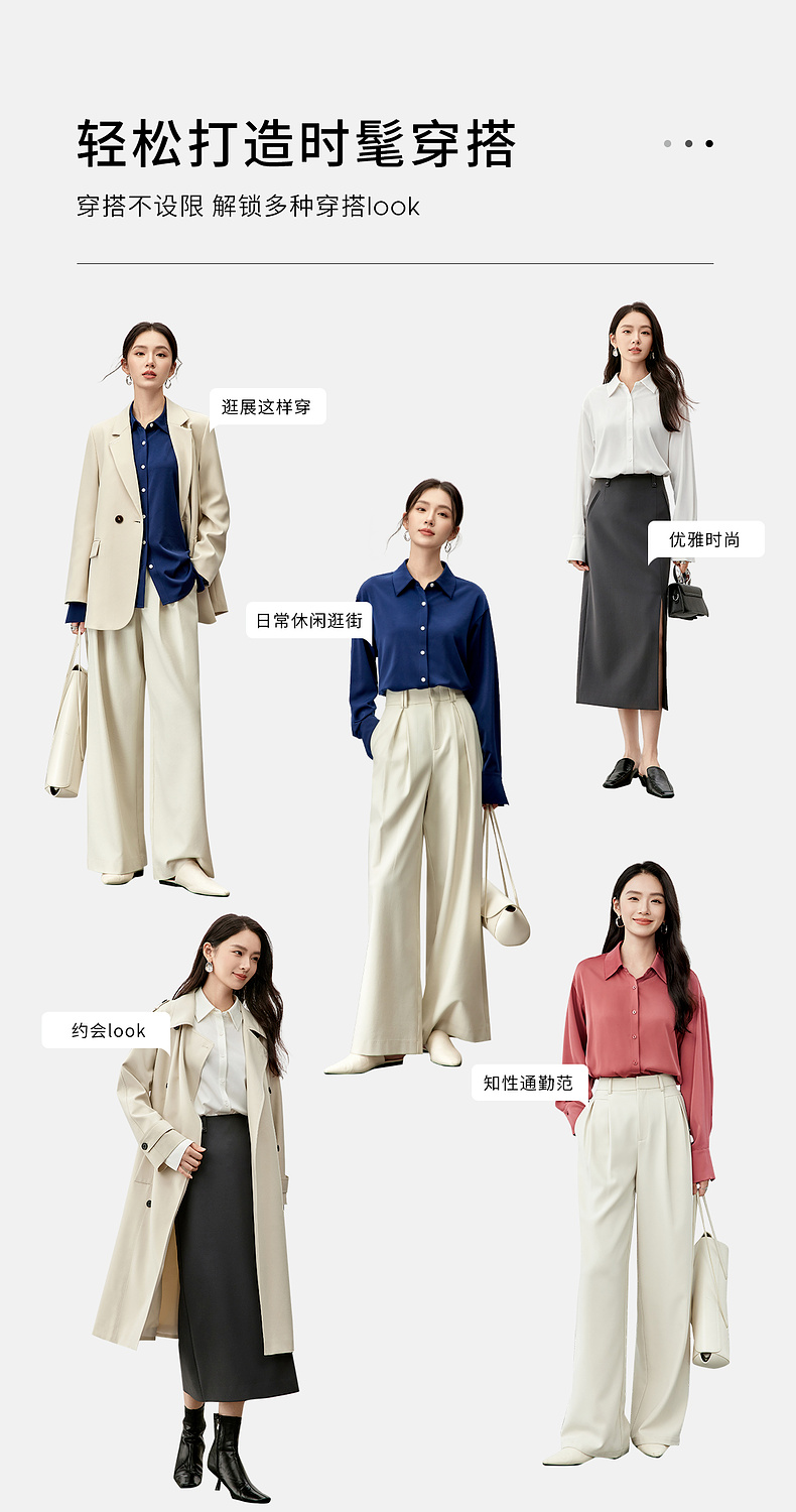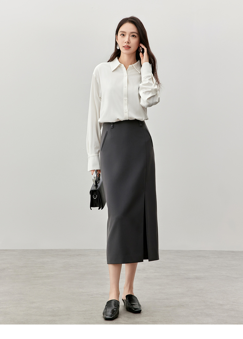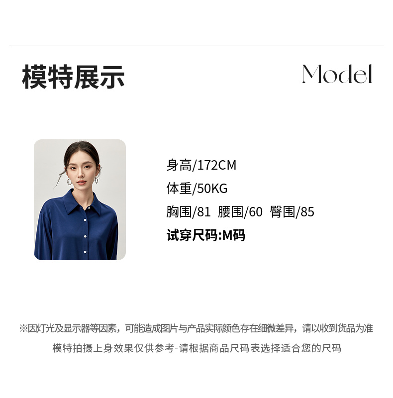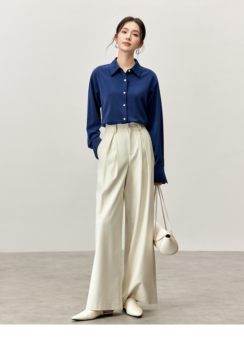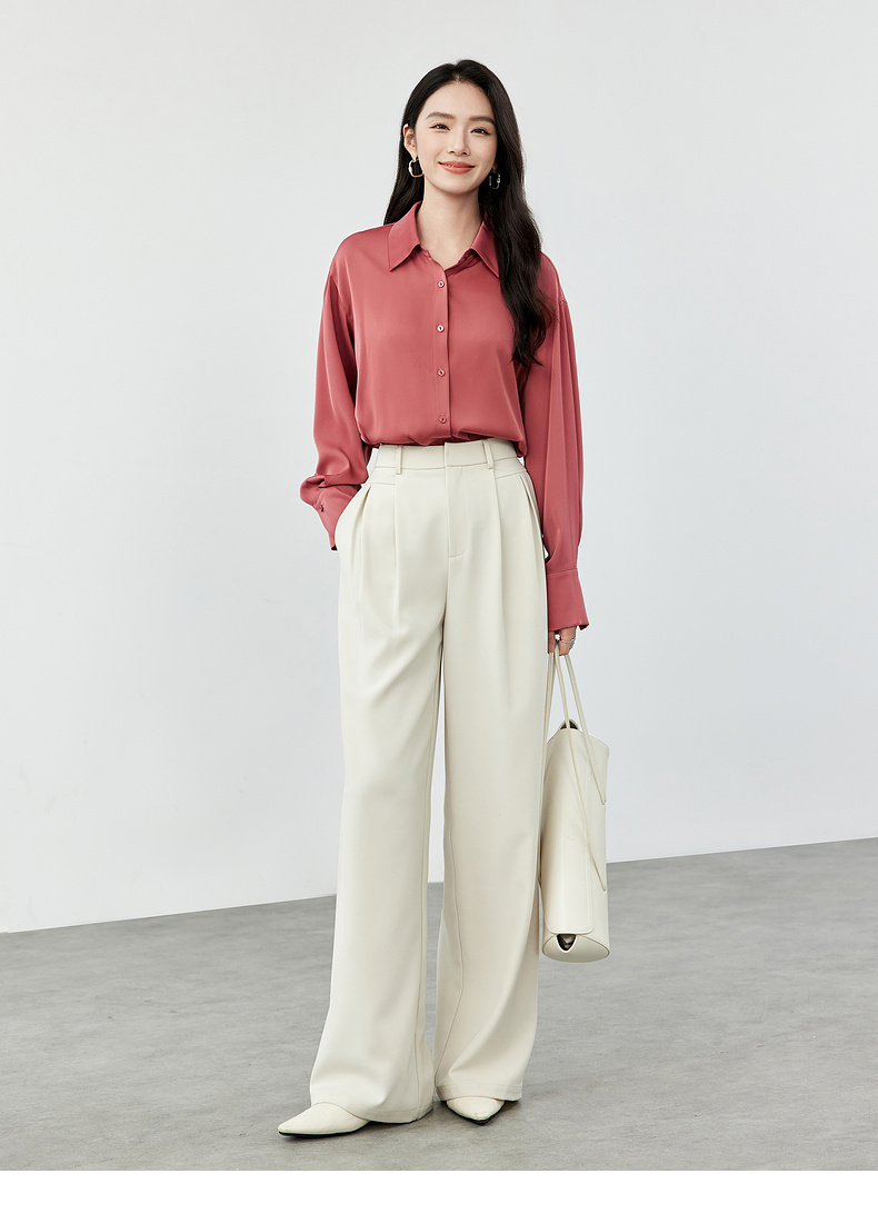 【内购】气质通勤光泽感长袖衬衫翻领落肩贝壳扣弧形衣摆上衣-153CC3580X
