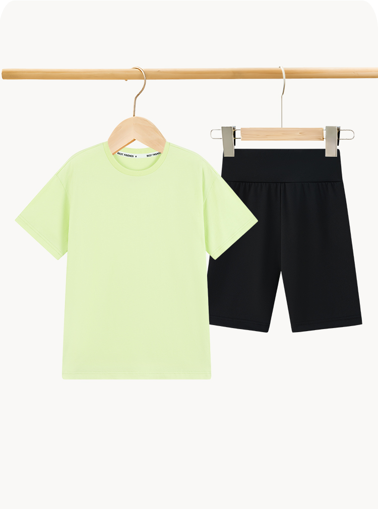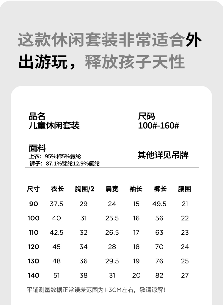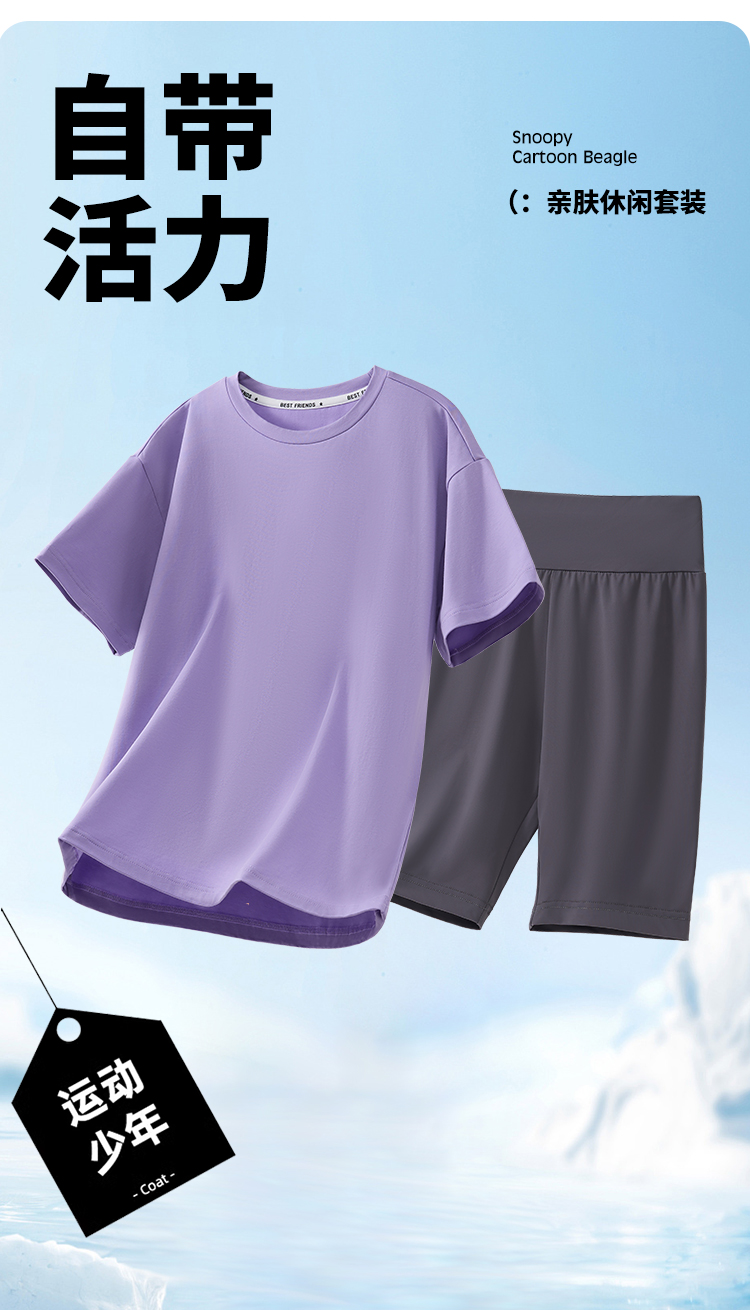 【2件套】【90-150】男女童夏季纯棉短袖速干短裤套装(上衣95%棉 5%氨纶 ,裤子82.4%锦纶 17.6%氨纶)
