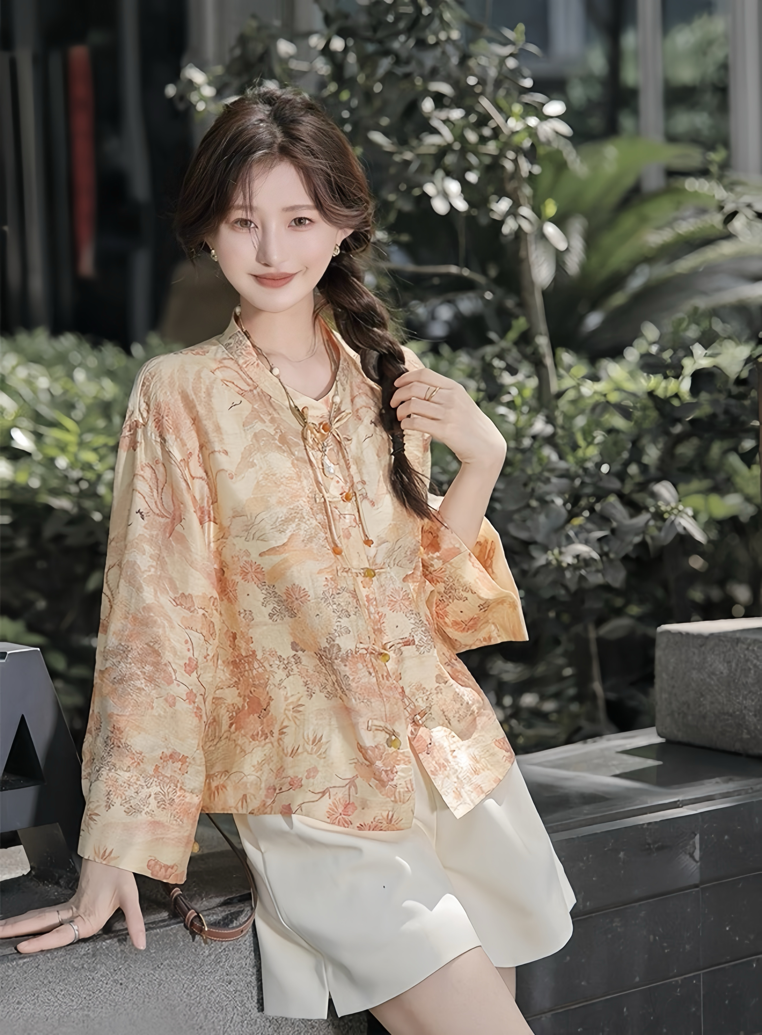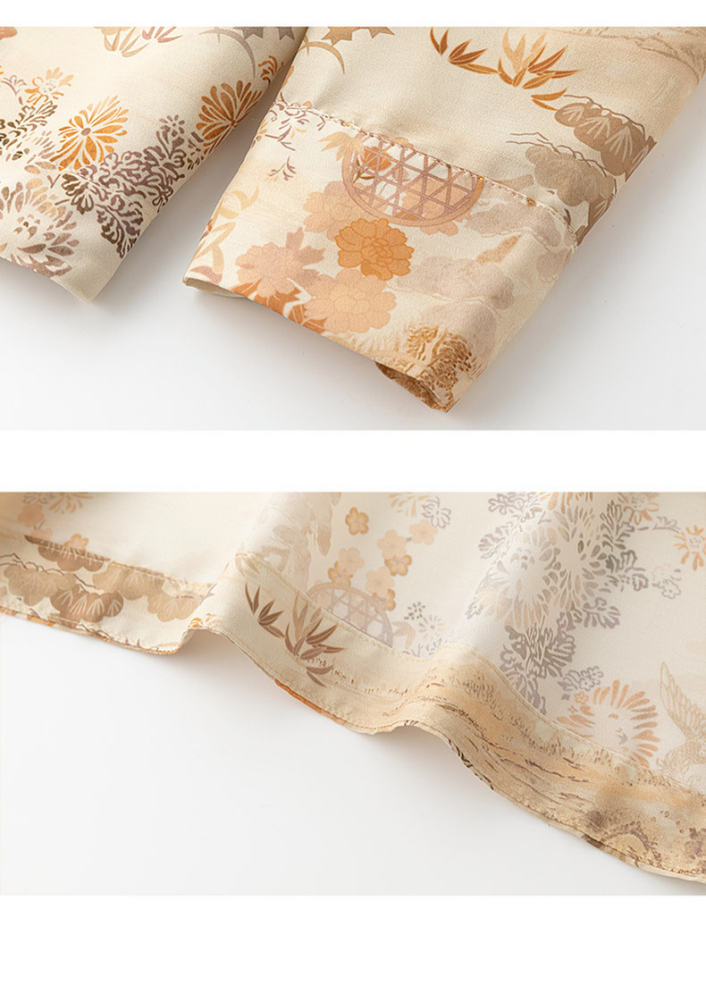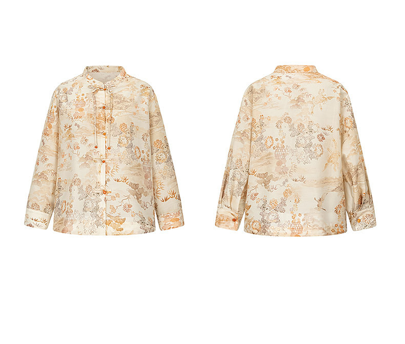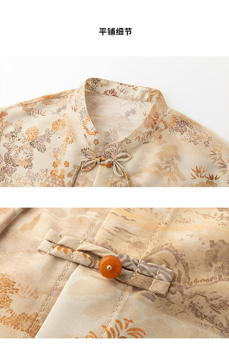 天猫同步【凉感、丝滑】拉夏贝尔/La Chapelle新中式立领印花盘扣长袖衬衫秋季新款★