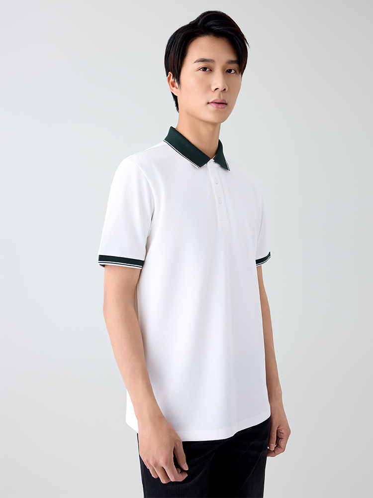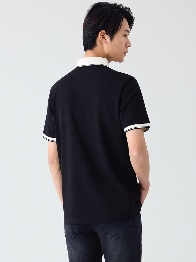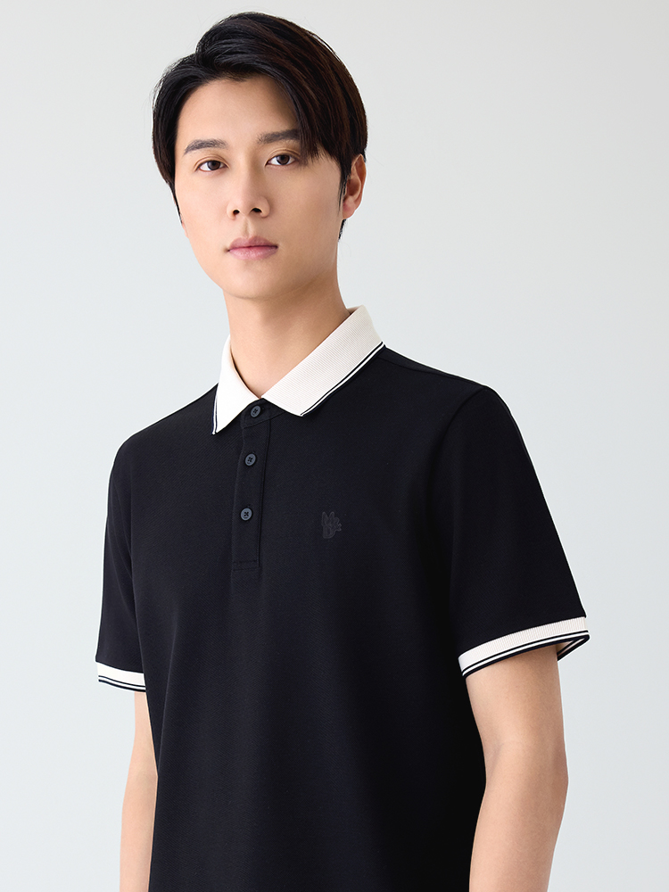 【名盾】撞色长袖Polo衫,新疆长绒棉混纺,透气舒适,柔软不易变形M0CL11694A