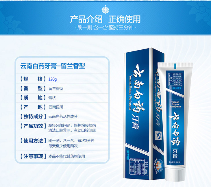 云南白药牙膏120g 减轻牙龈出血 去牙渍 去口臭 口气清新