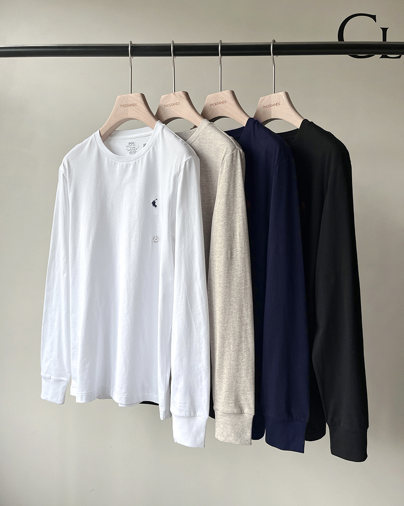 单品包邮现货 THS 8.10-无 RL家 马球经典小马刺绣长袖T恤 4色 QH440