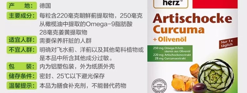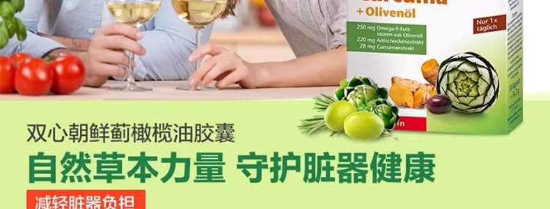 【保税】德国 双心(Doppel herz)朝鲜蓟橄榄油精华胶囊 30粒 适合需要保养肝脏的人群