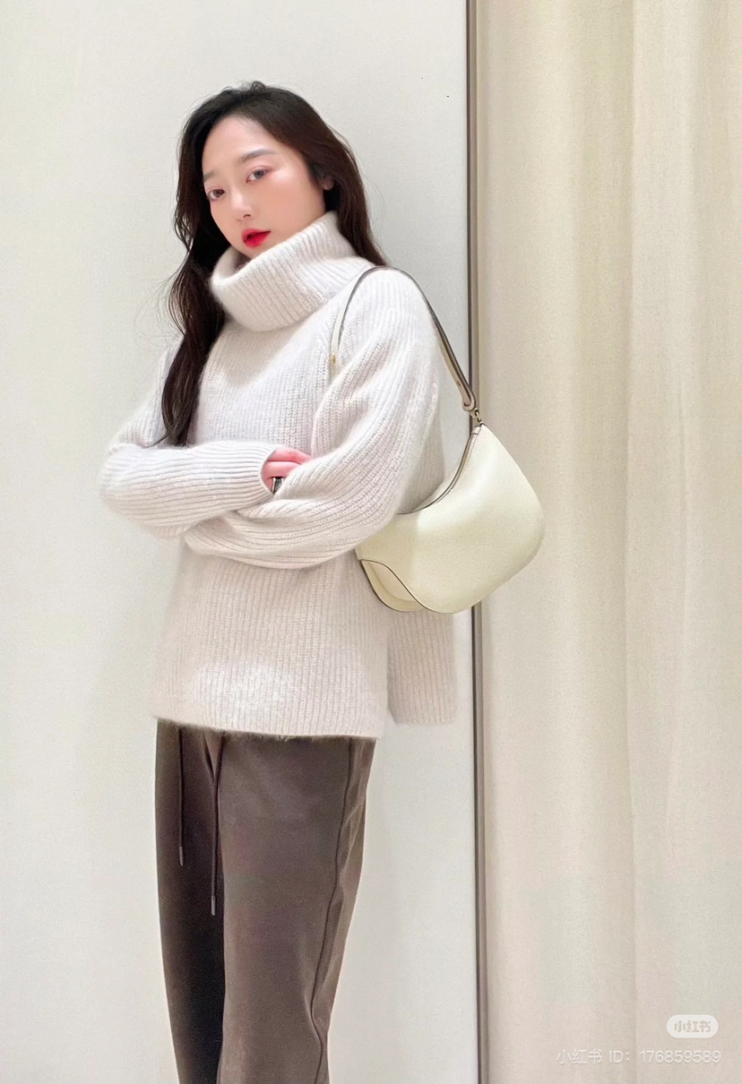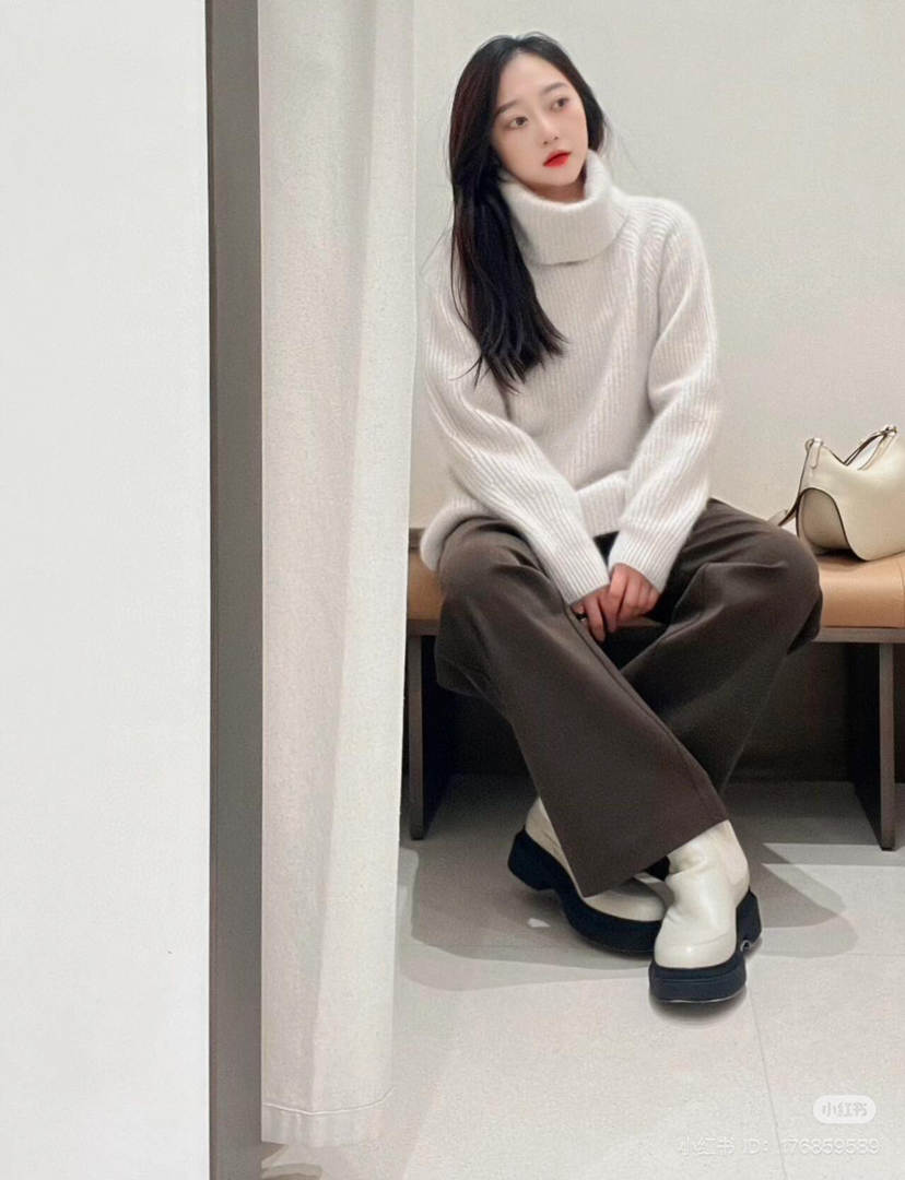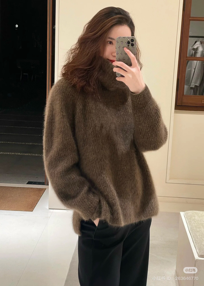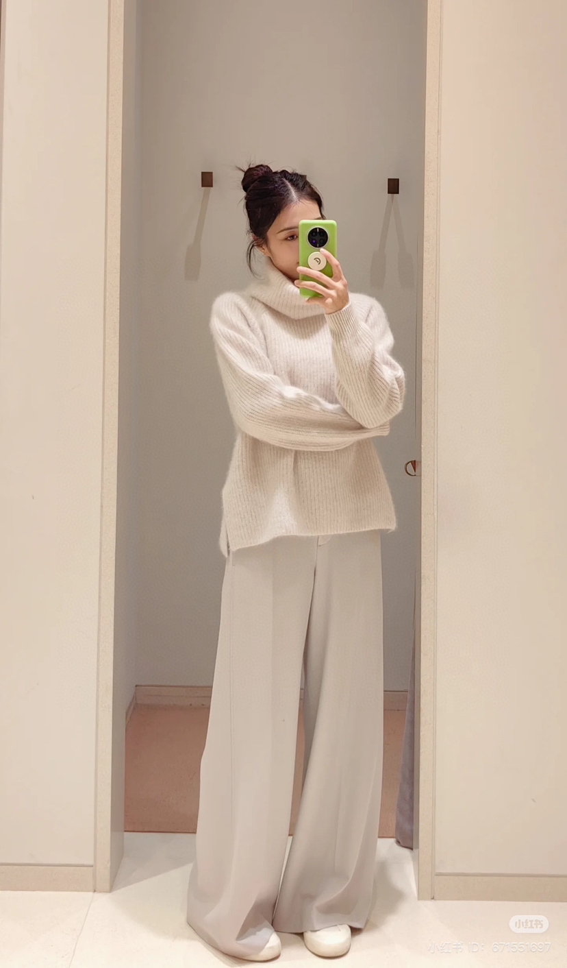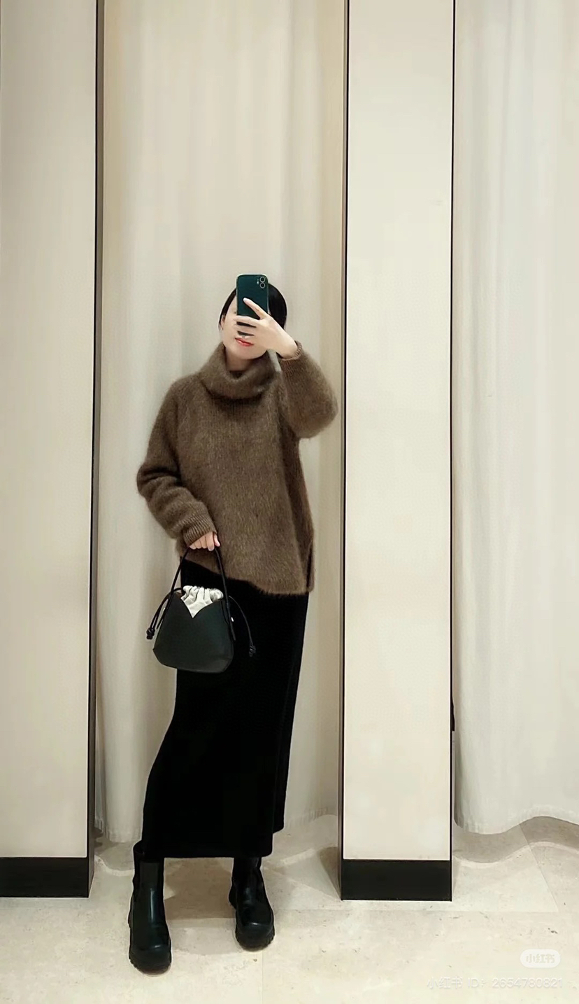 冬天穿大衣,是好看的,但是肯定不够保暖的。如果你内搭这件强缩羊绒拉绒的针织,那么外面套多轻薄的大衣,都不会怕冷了。当然,单穿就很好看了,我穿6码也是宽松的效果嗷嗷嗷