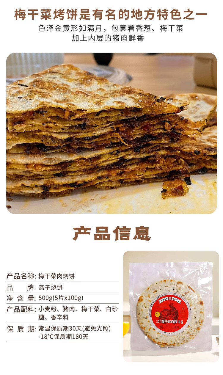 【代发】燕子梅干菜肉烧饼锅盔预制菜速食早餐传统老式薄酥脆饼500g/袋