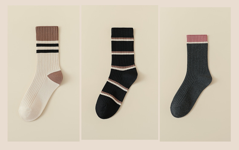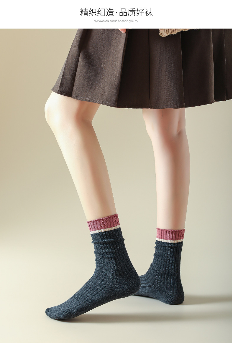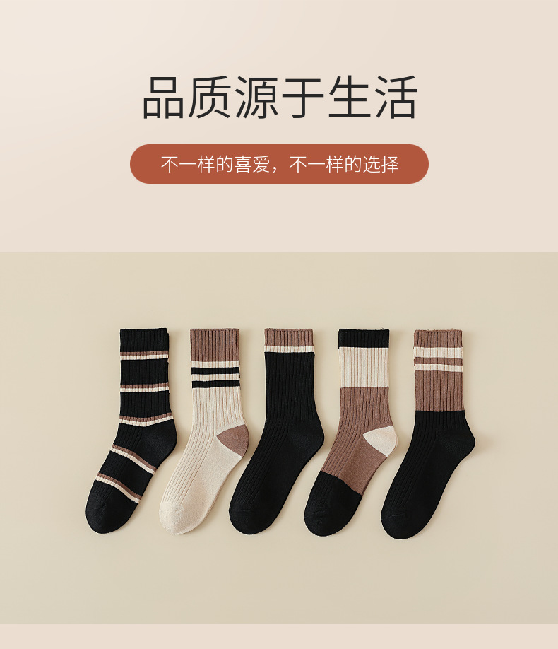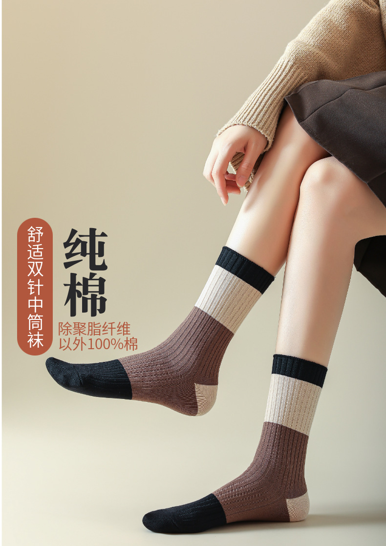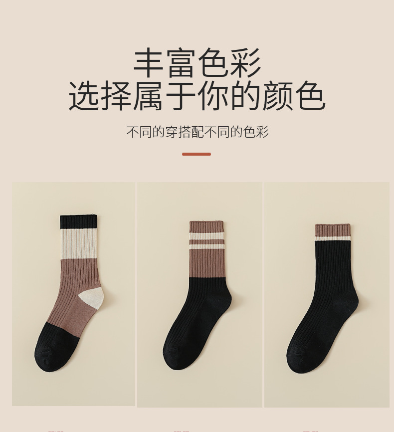 【舒适双针中筒袜】美拉德袜子女秋冬中筒春秋款堆堆袜新款爆款咖色双针长筒棉袜。ry 商品图5