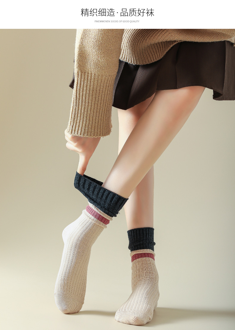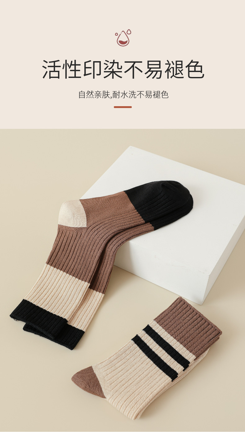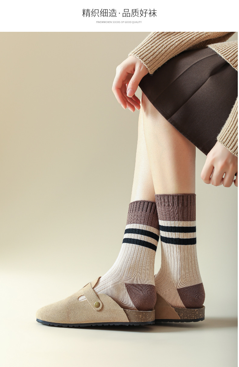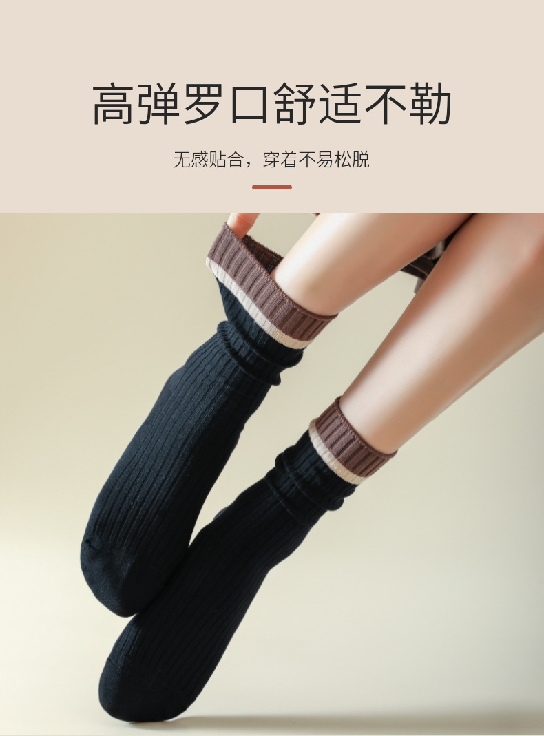 【舒适双针中筒袜】美拉德袜子女秋冬中筒春秋款堆堆袜新款爆款咖色双针长筒棉袜。ry 商品图2