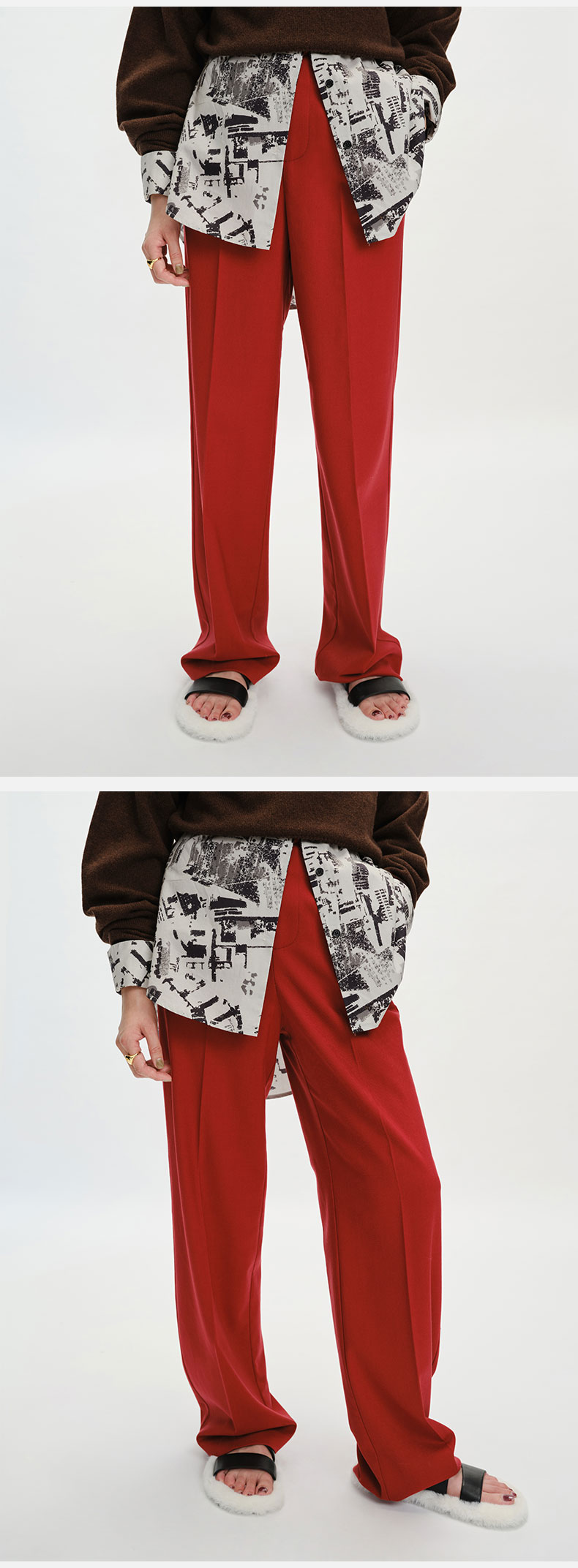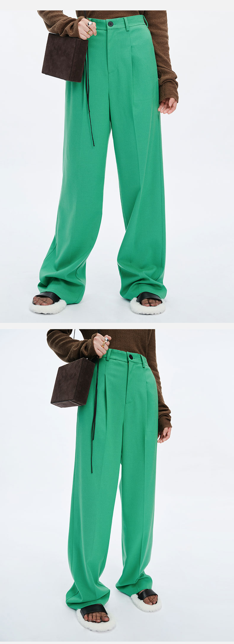 HIDEMI 浪漫冬日亮色系厚款阔腿裤