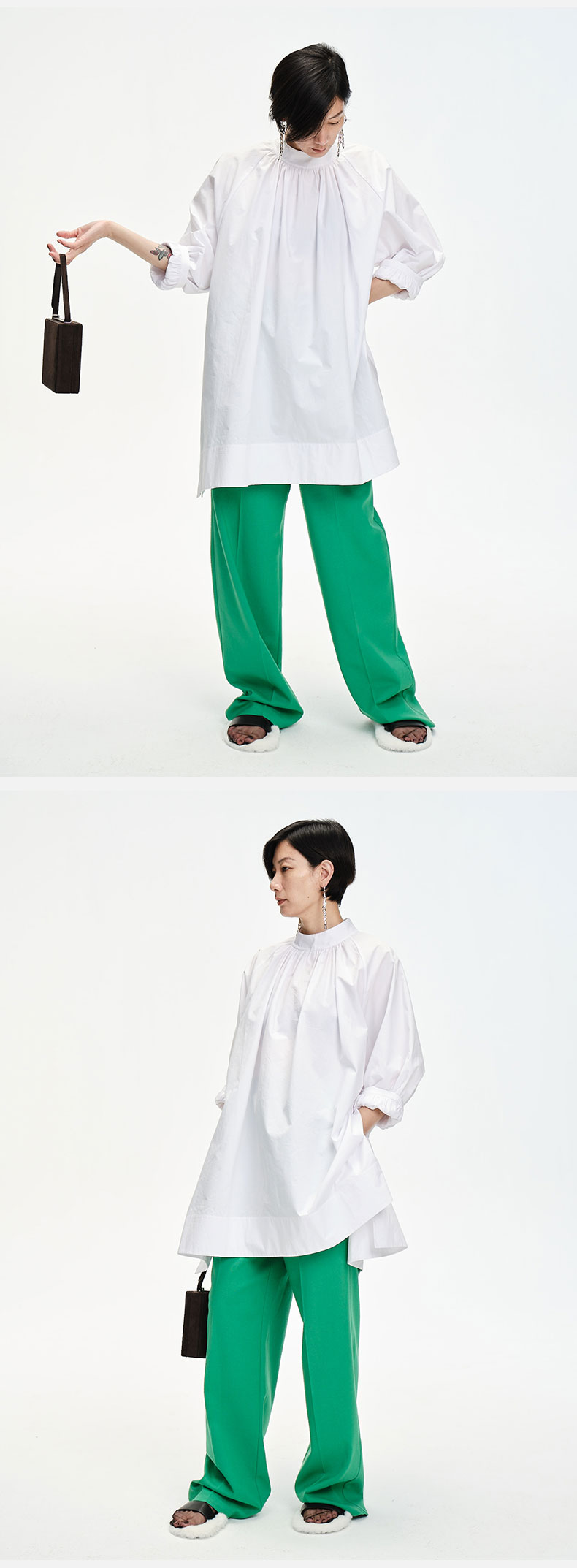 HIDEMI斜纹口袋设计感套装 杏仁卡其/藏蓝色