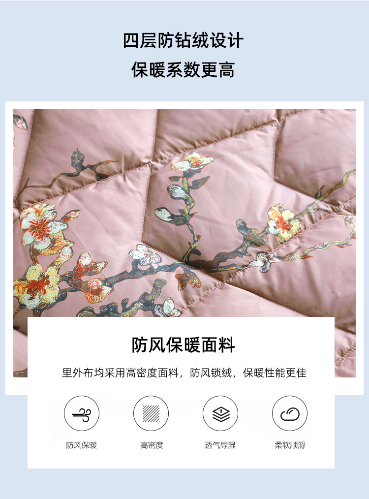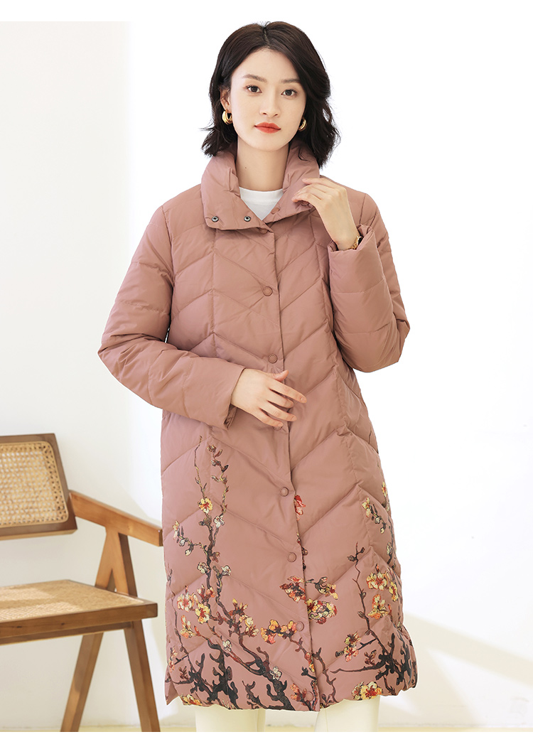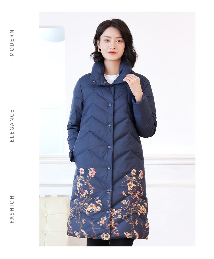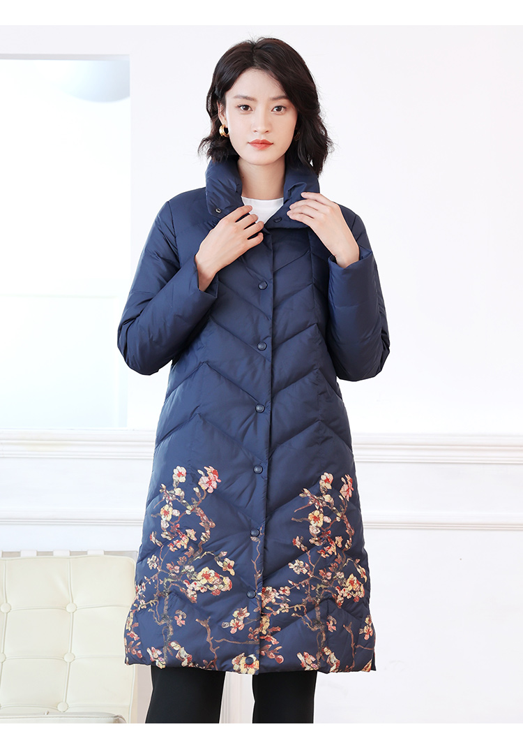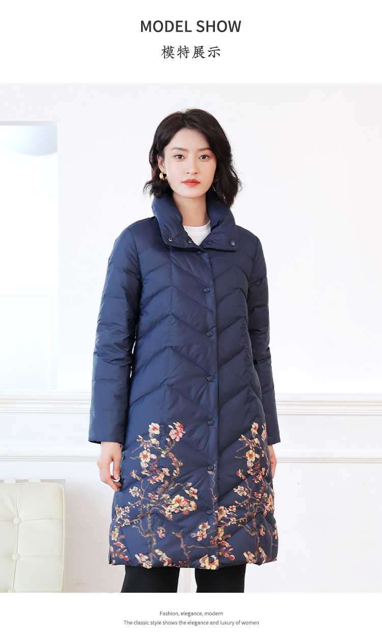 佐尔美冬季新款 气质中长款90绒立领碎花羽绒服女E34YY48