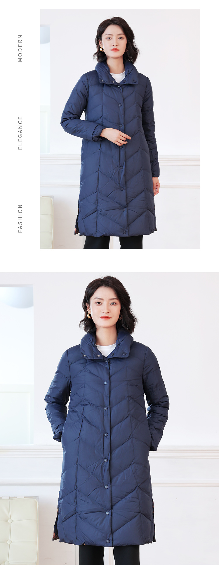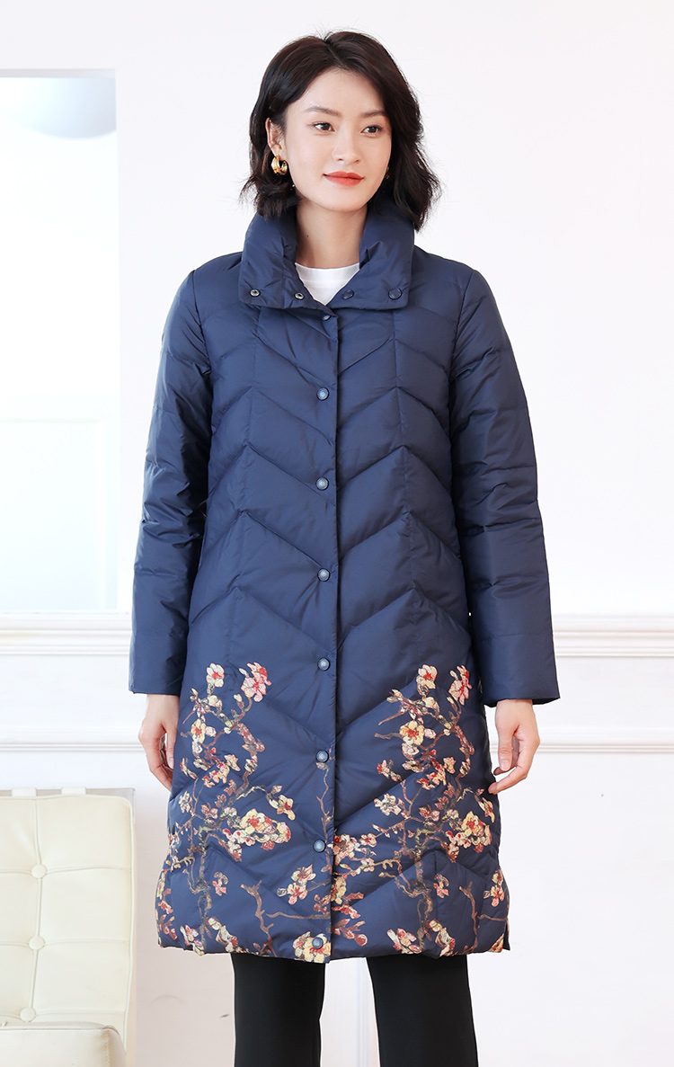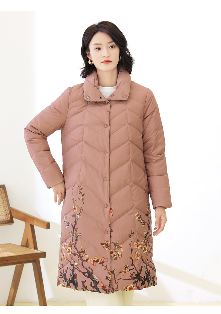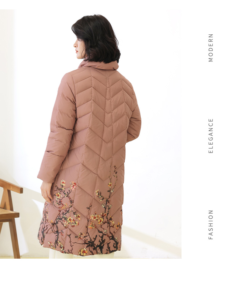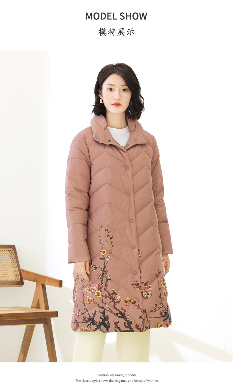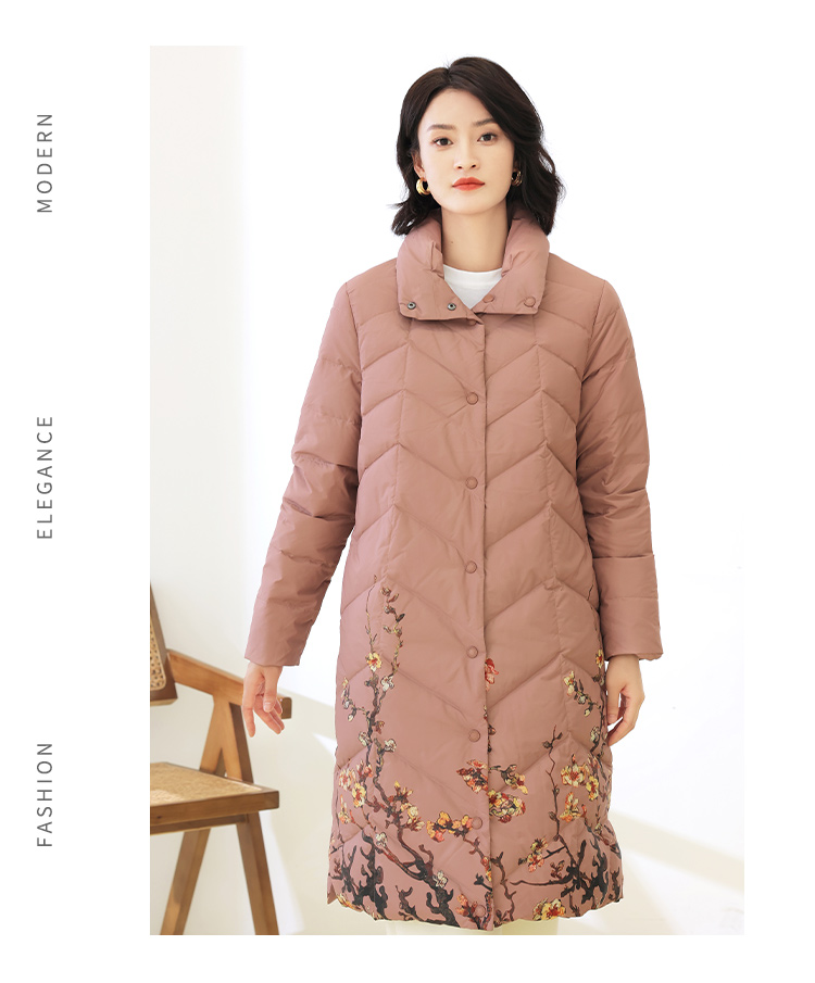 佐尔美冬季新款 时尚简约花纹图案中长款羽绒服女E14YY26