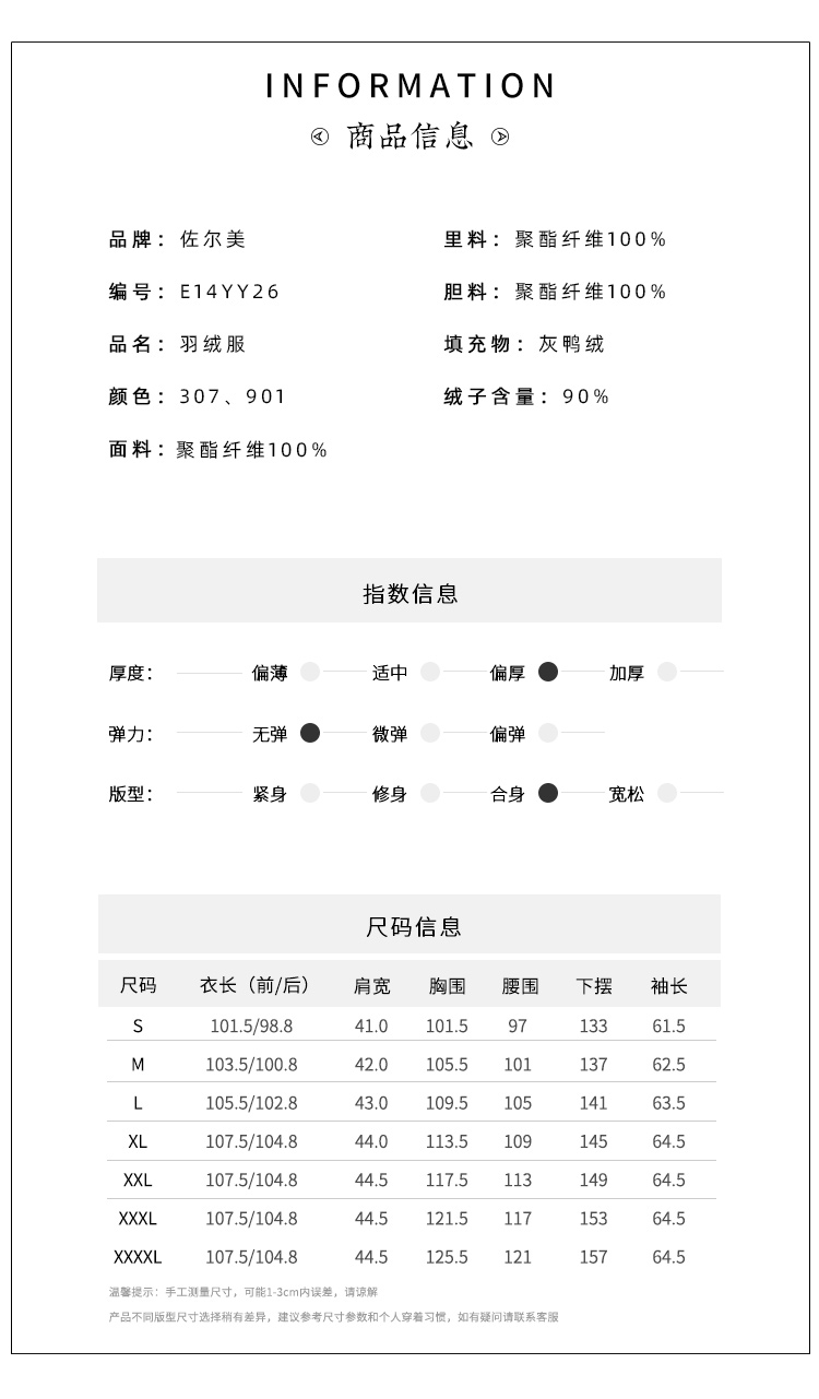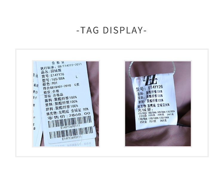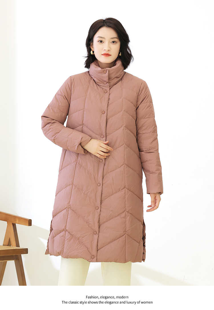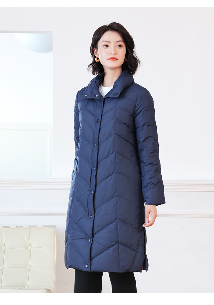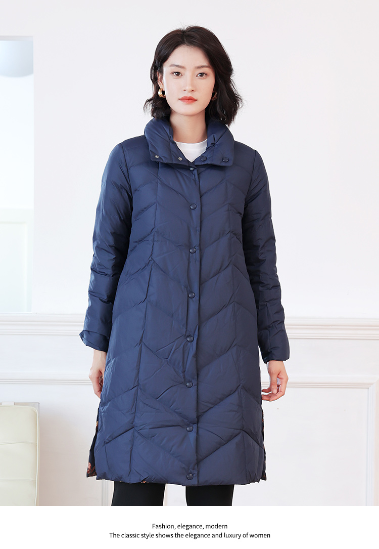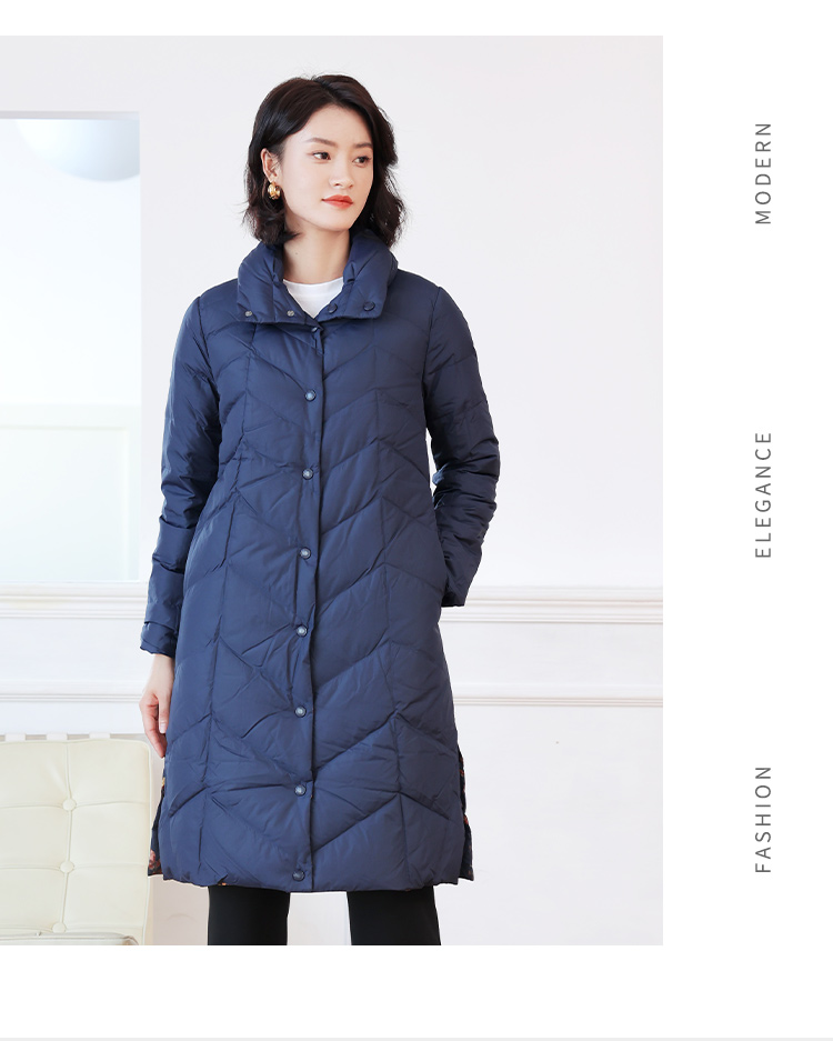 佐尔美冬季新款 时尚简约花纹图案中长款羽绒服女E14YY26