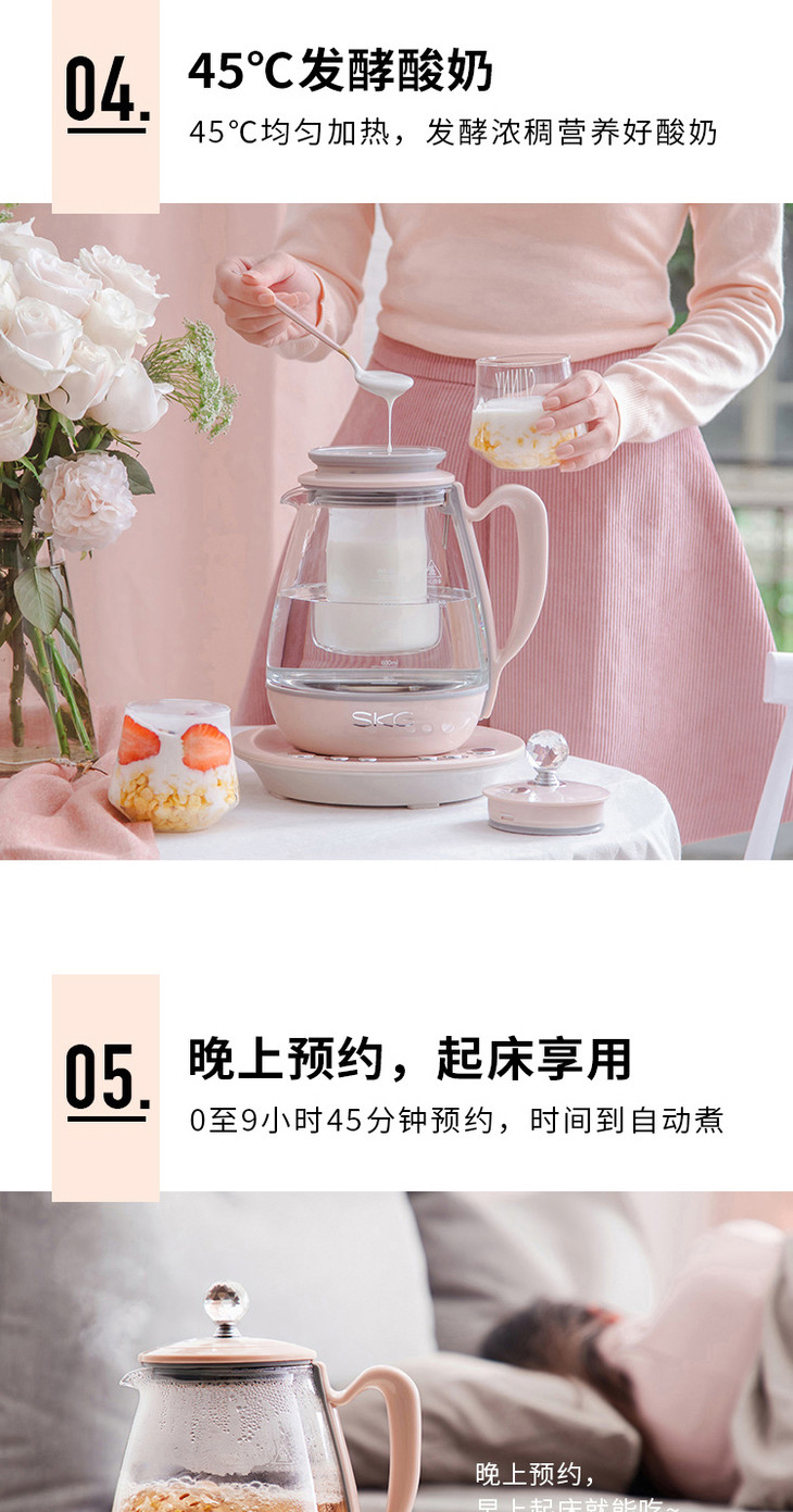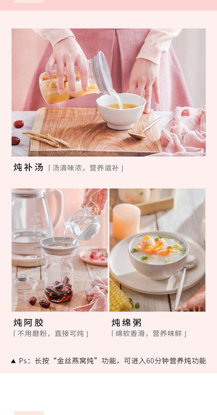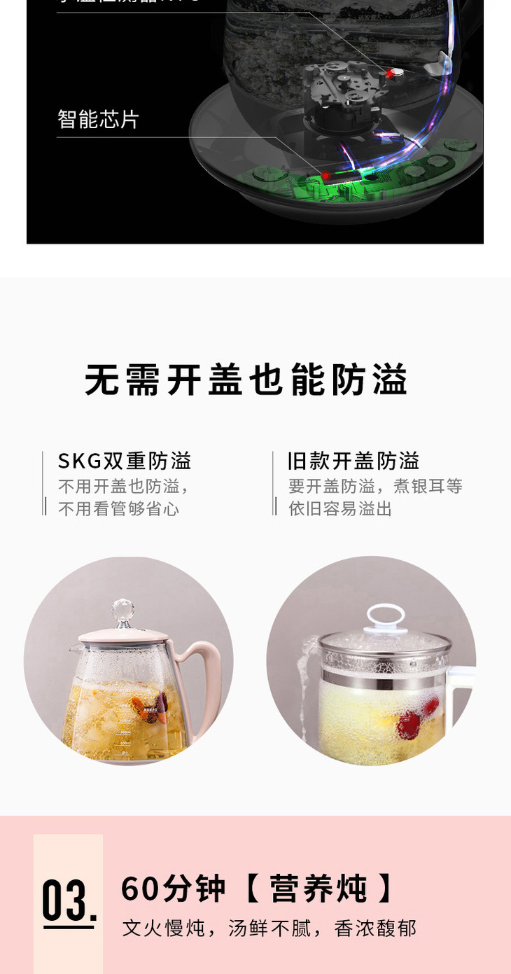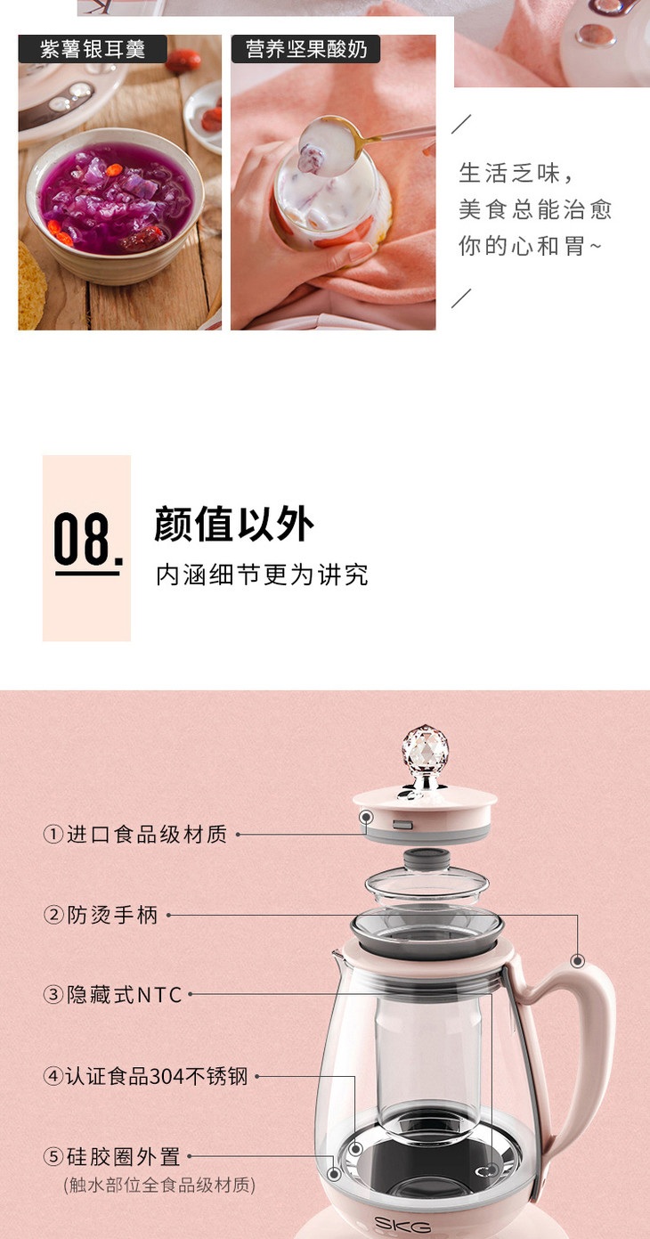 SKG 养生壶 保温电水壶加厚高硼硅玻璃多功能炖煮壶煮茶壶煮茶器 软糯燕窝壶8074/8077 8077千禧粉