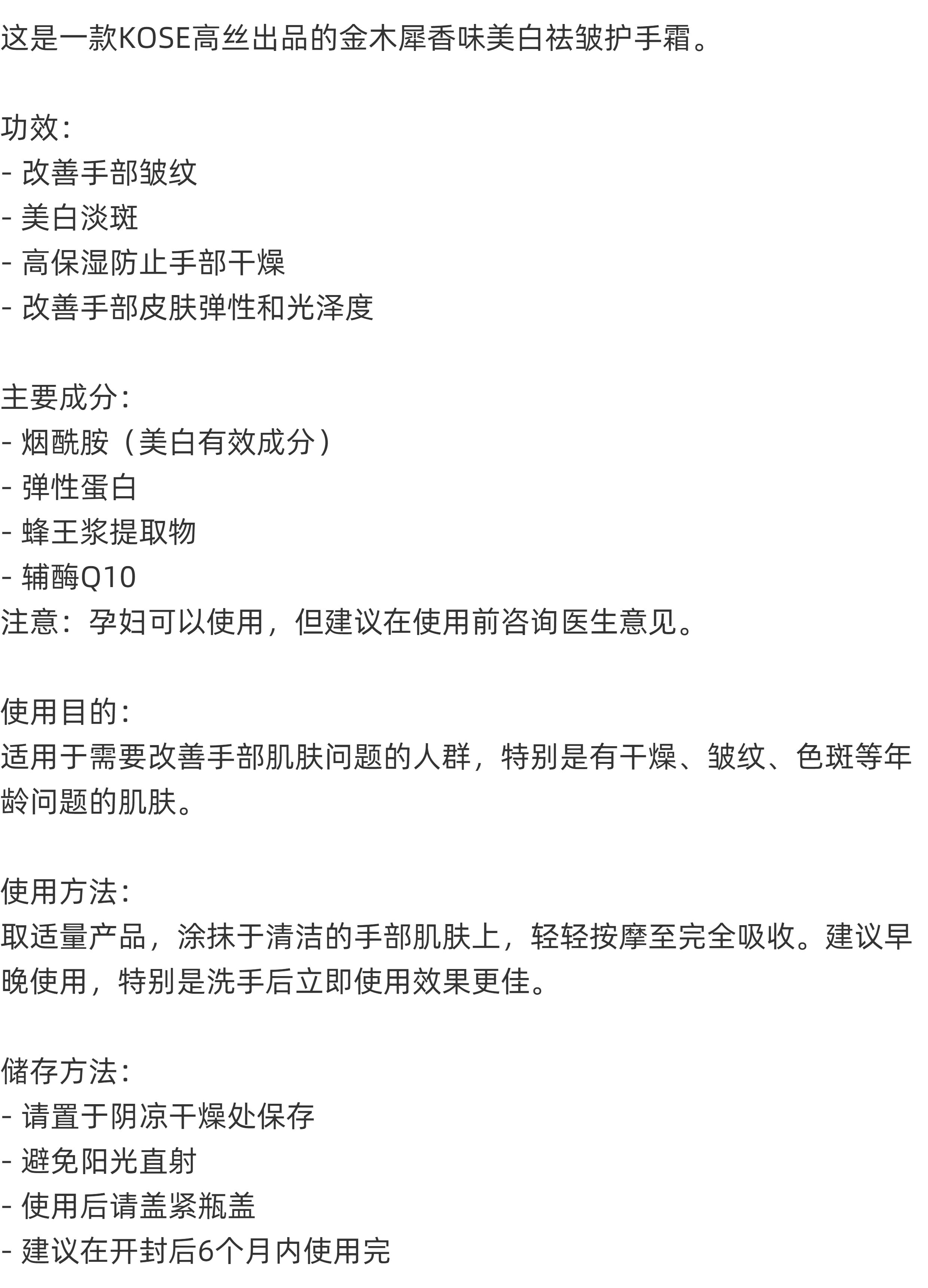 Kose/高丝Q10系列护手霜桂花香味60g红色细致嫩白超保湿滋润 80g金子色夜间修护滋润80g蓝色夜间修护滋润保湿护手霜花香味60g