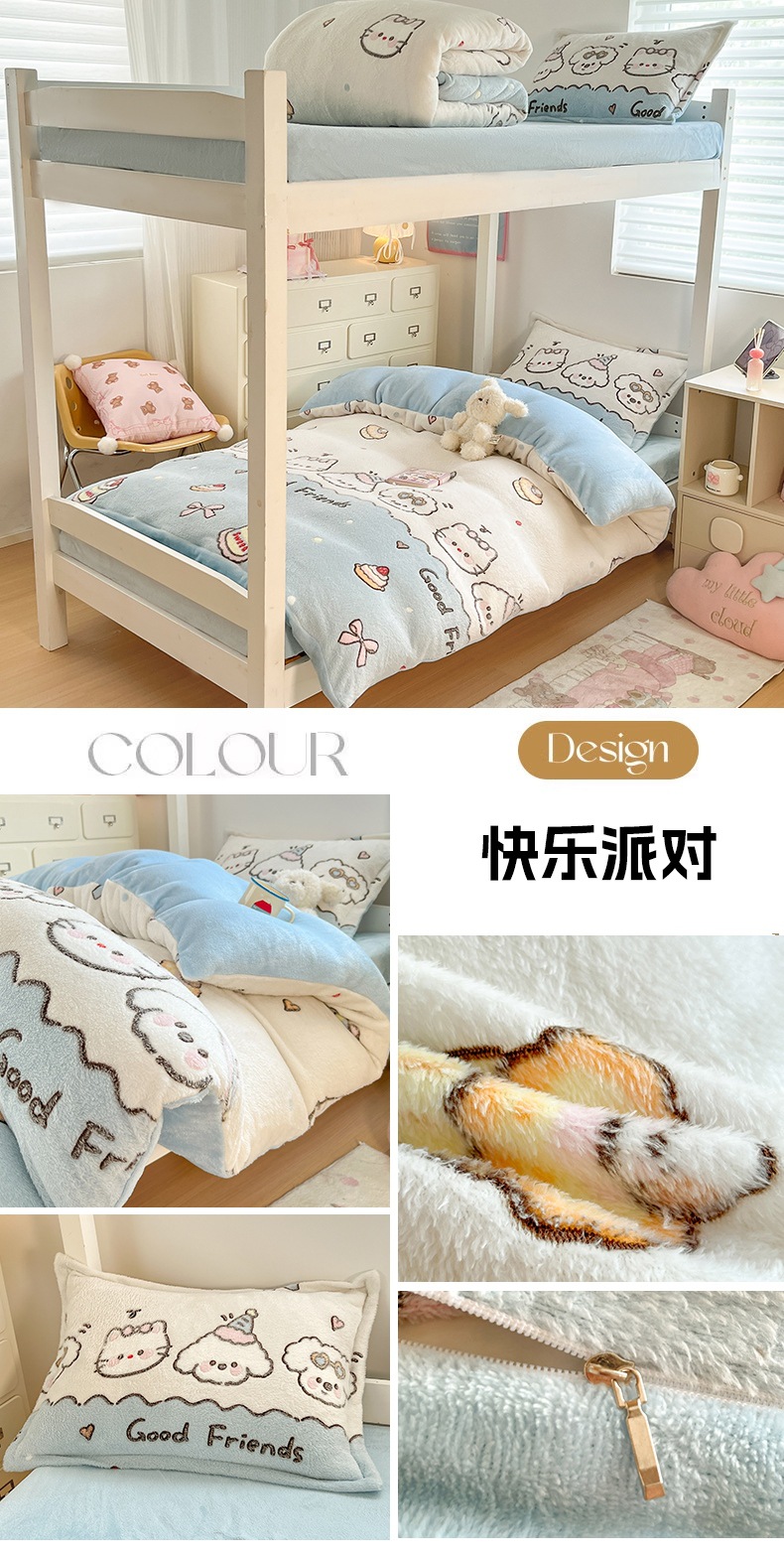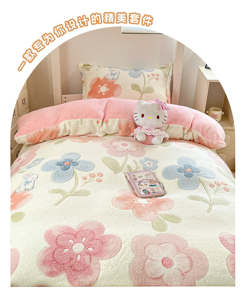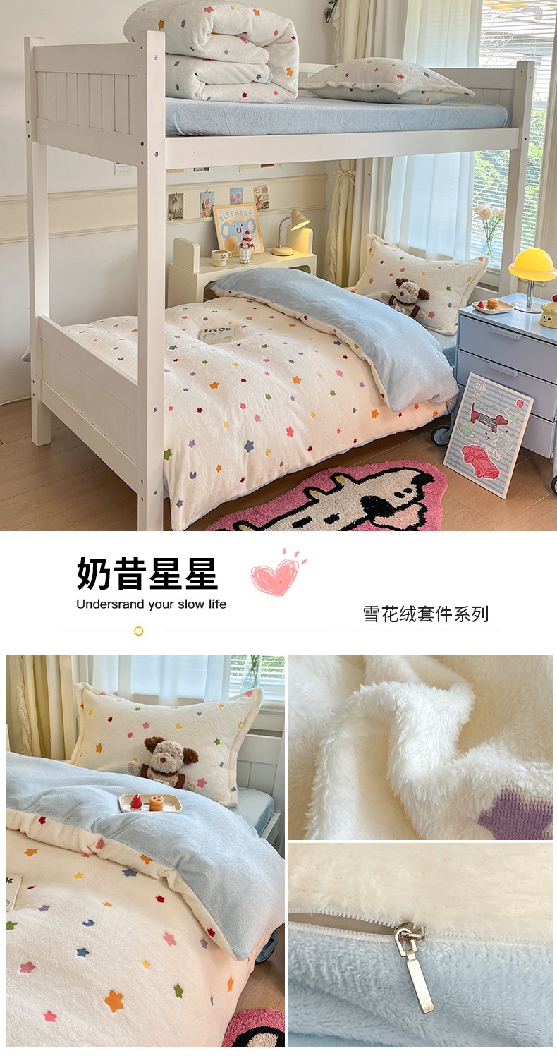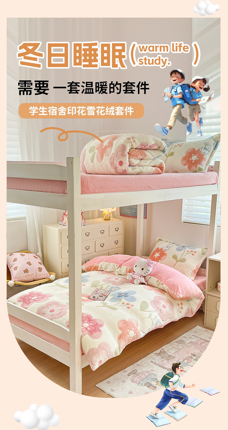 【好看又舒服!柔软透气】冬季小清新卡通立体雪花绒四件套加绒加厚床单被套学生宿舍三件套。rb