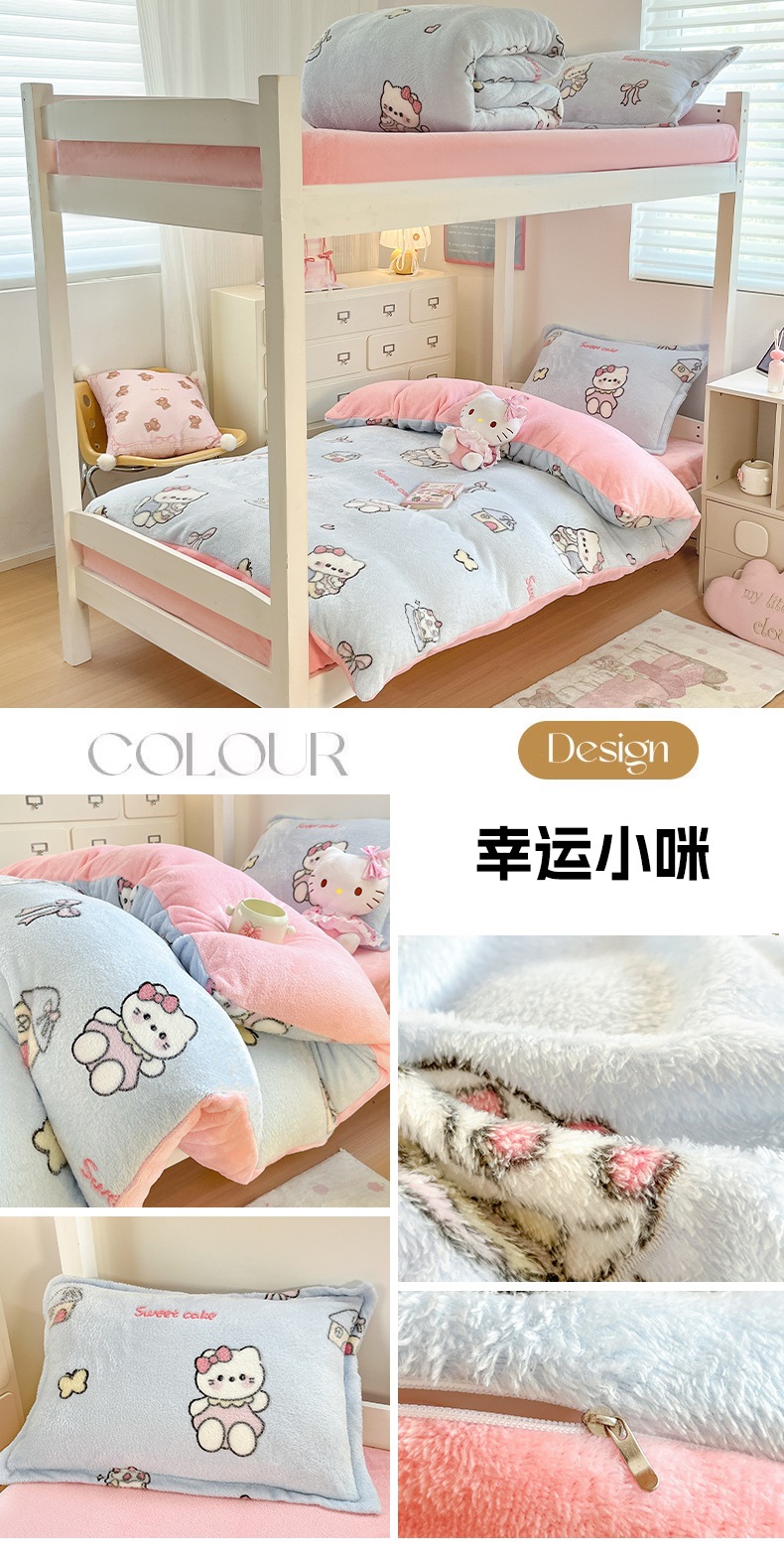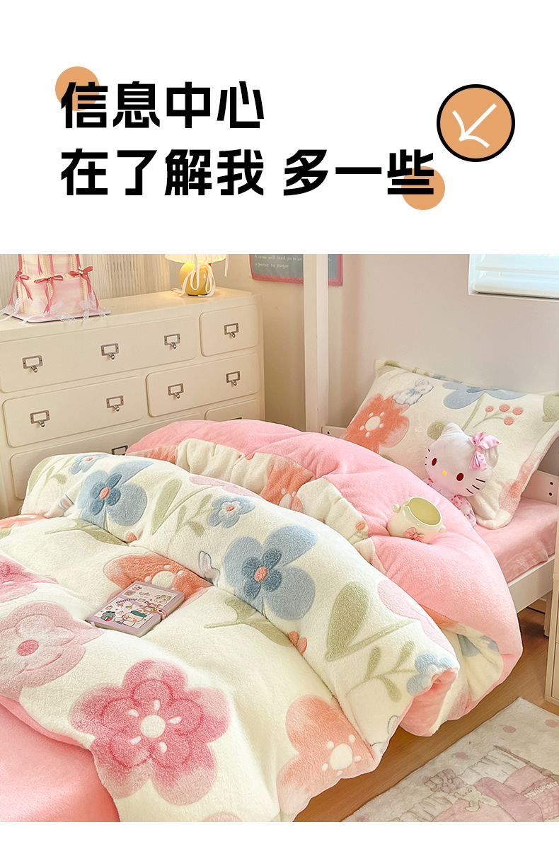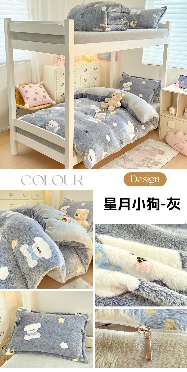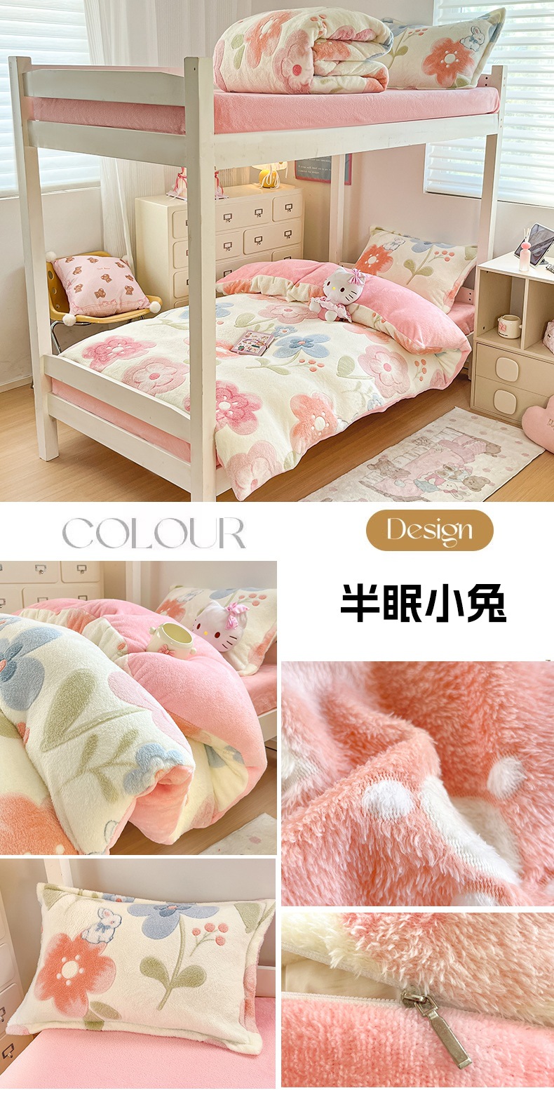 【好看又舒服!柔软透气】冬季小清新卡通立体雪花绒四件套加绒加厚床单被套学生宿舍三件套。rb
