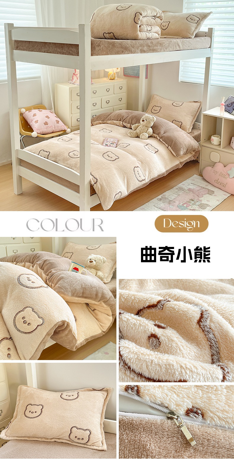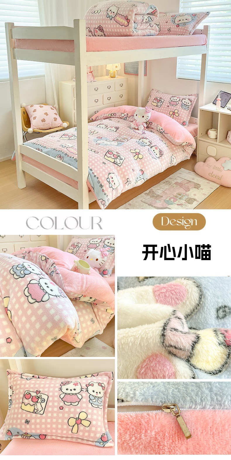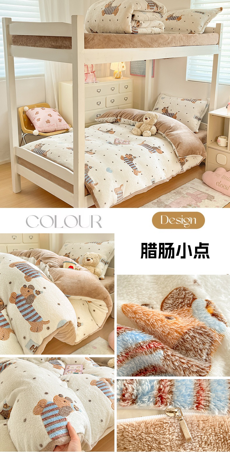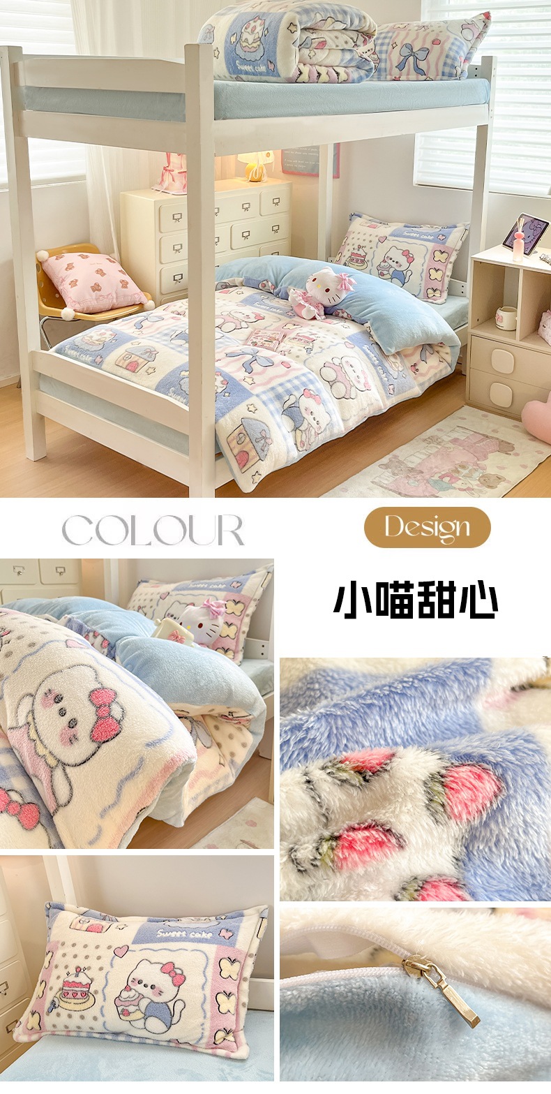 【好看又舒服!柔软透气】冬季小清新卡通立体雪花绒四件套加绒加厚床单被套学生宿舍三件套。rb