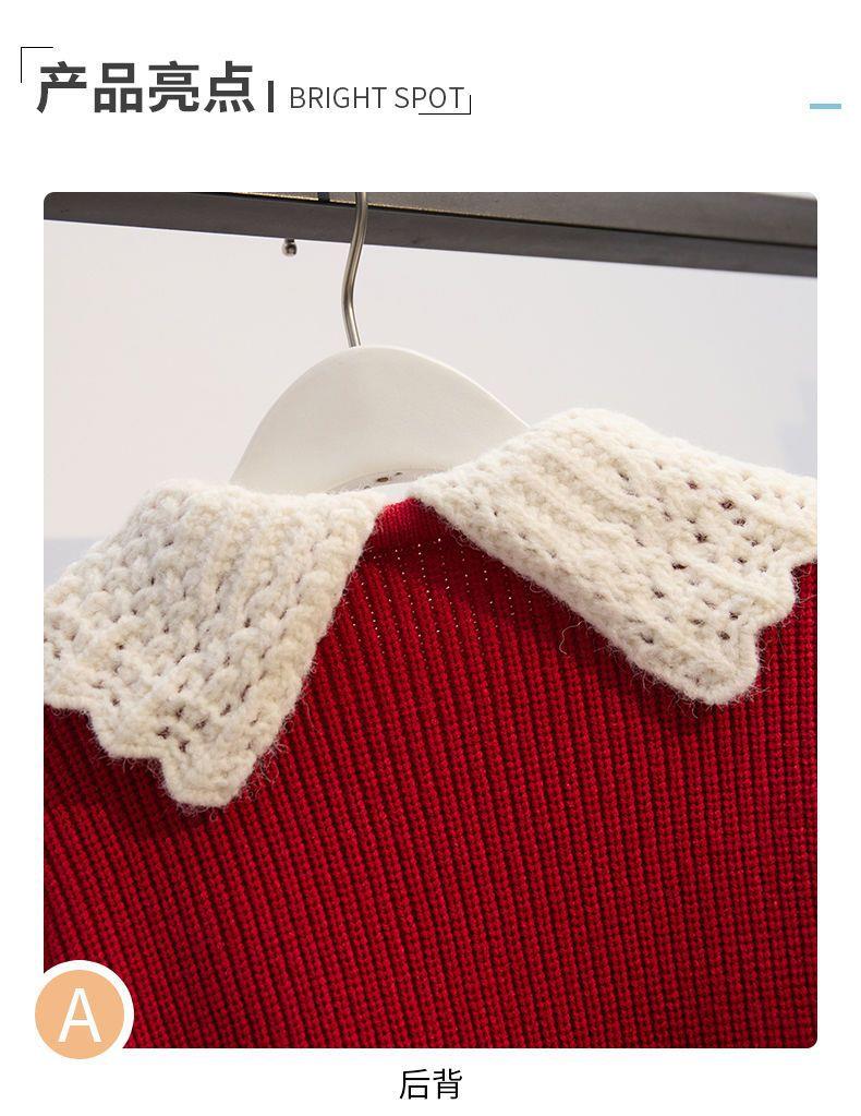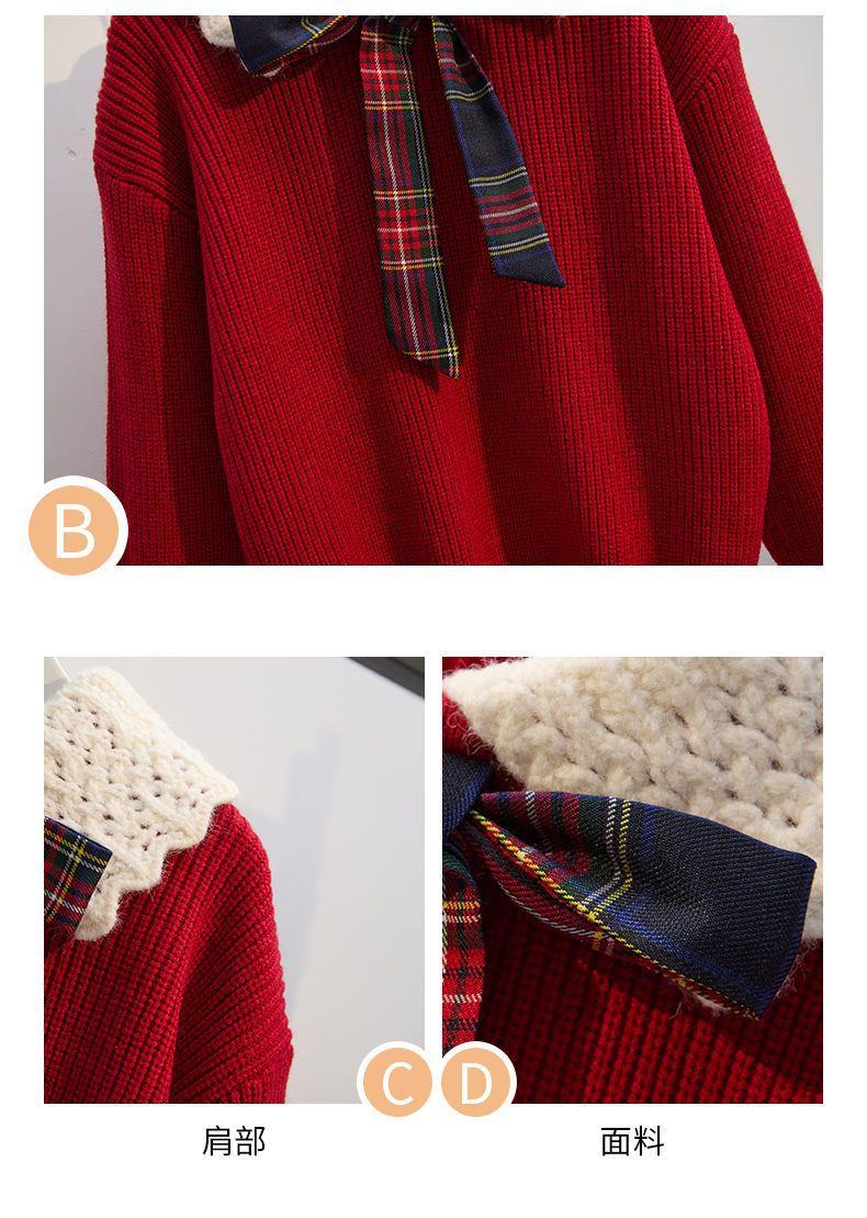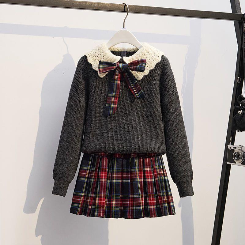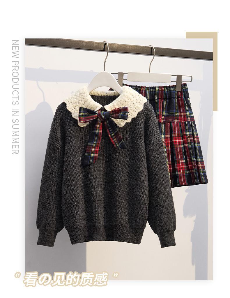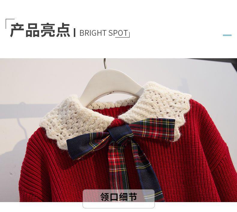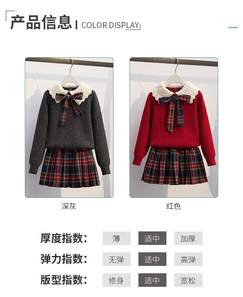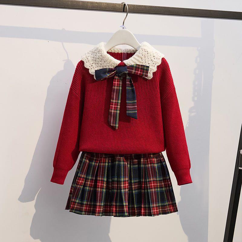 女童针织套头毛衣两件套儿童秋冬新款洋气学院风jk套装百褶裙红色