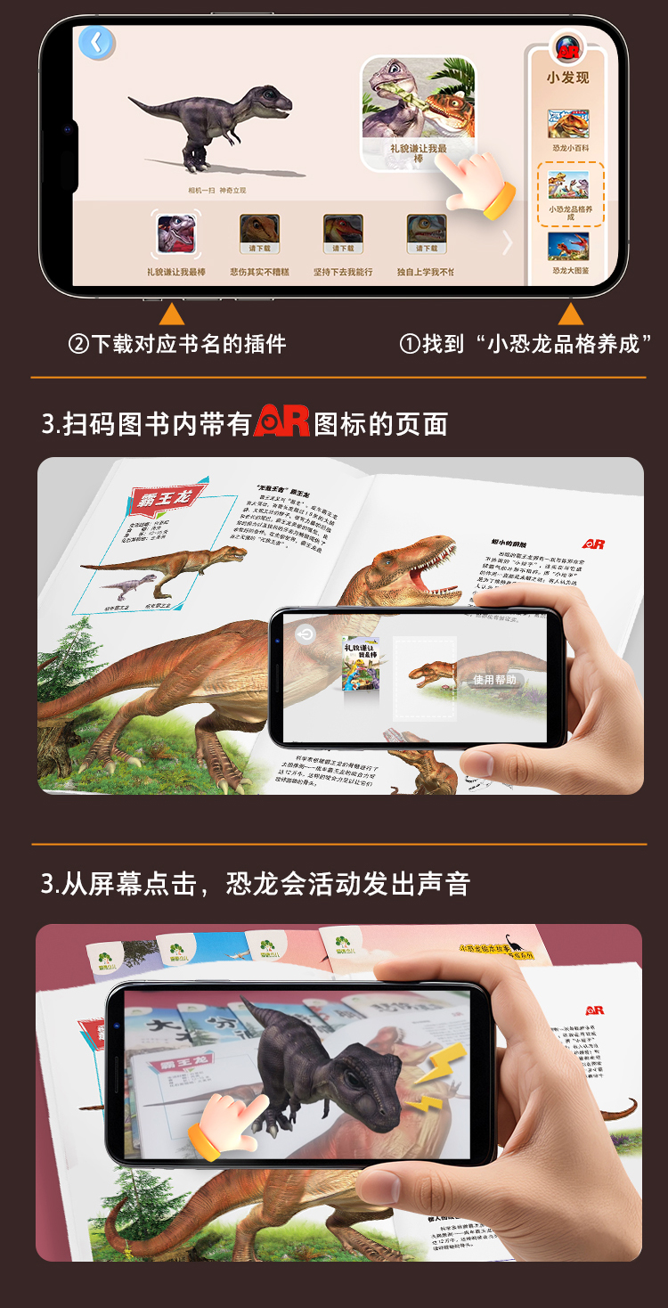 爱德少儿小恐龙故事绘本3-6岁独立人格人际关系培养绘本侏罗纪恐龙AR动画互动全彩注音版科普故事书