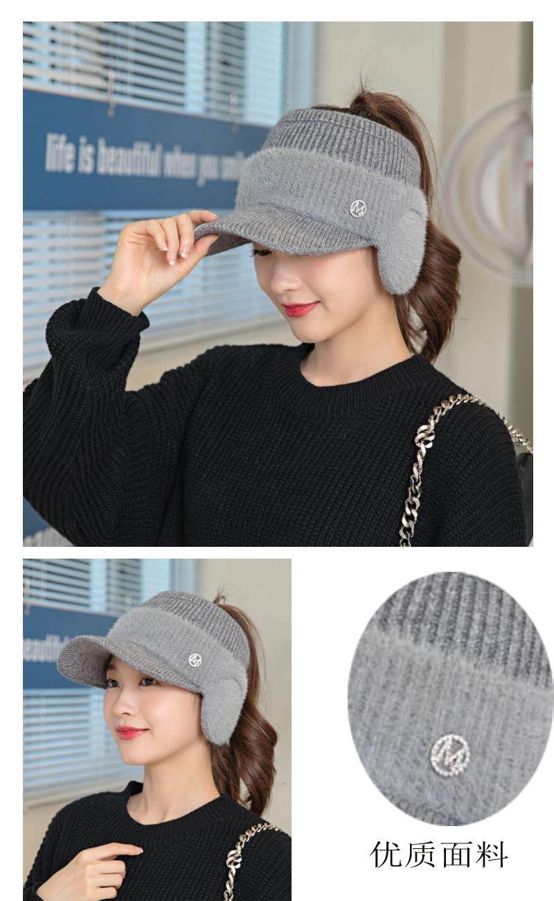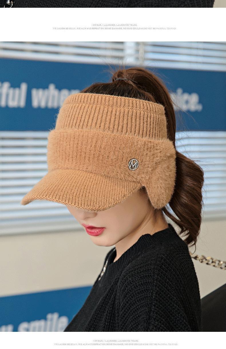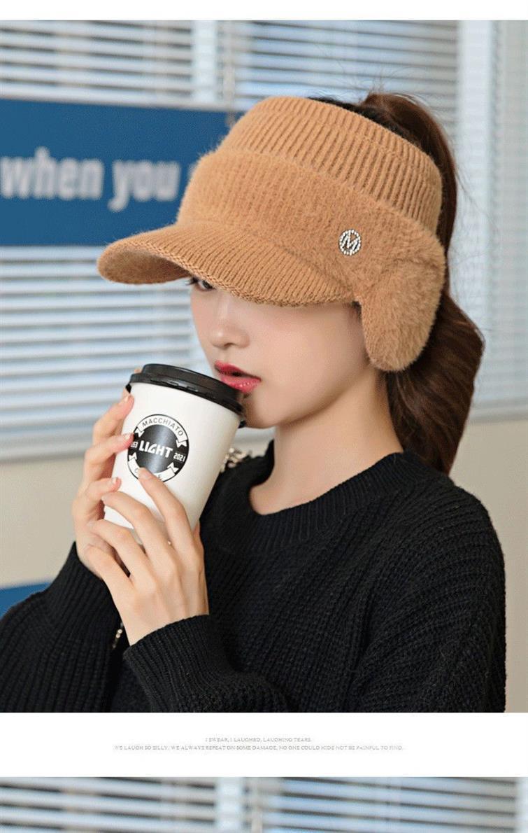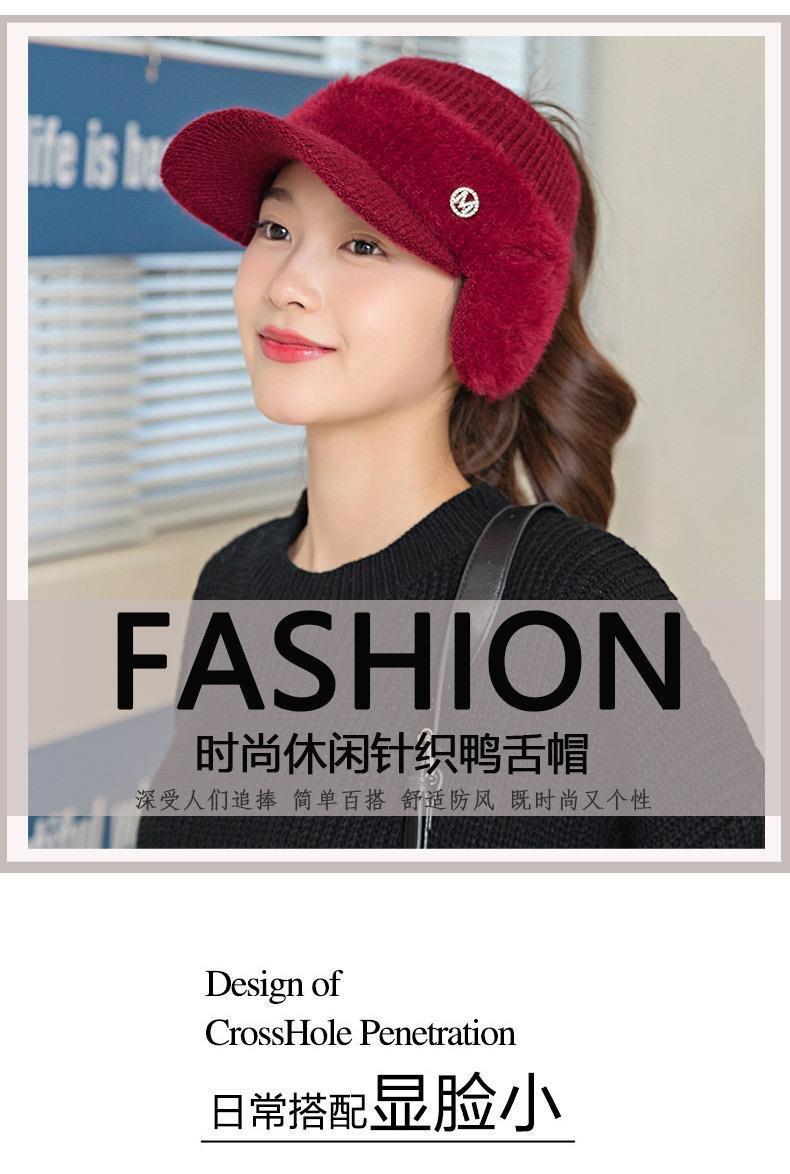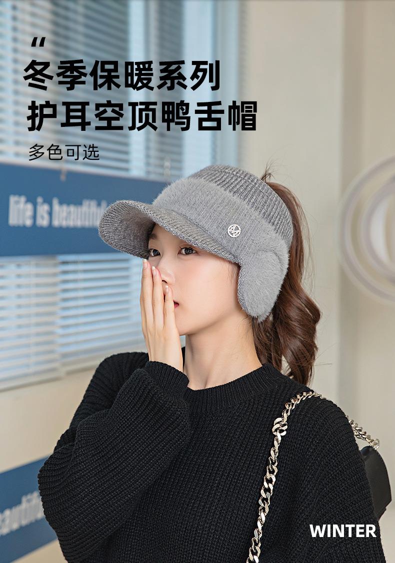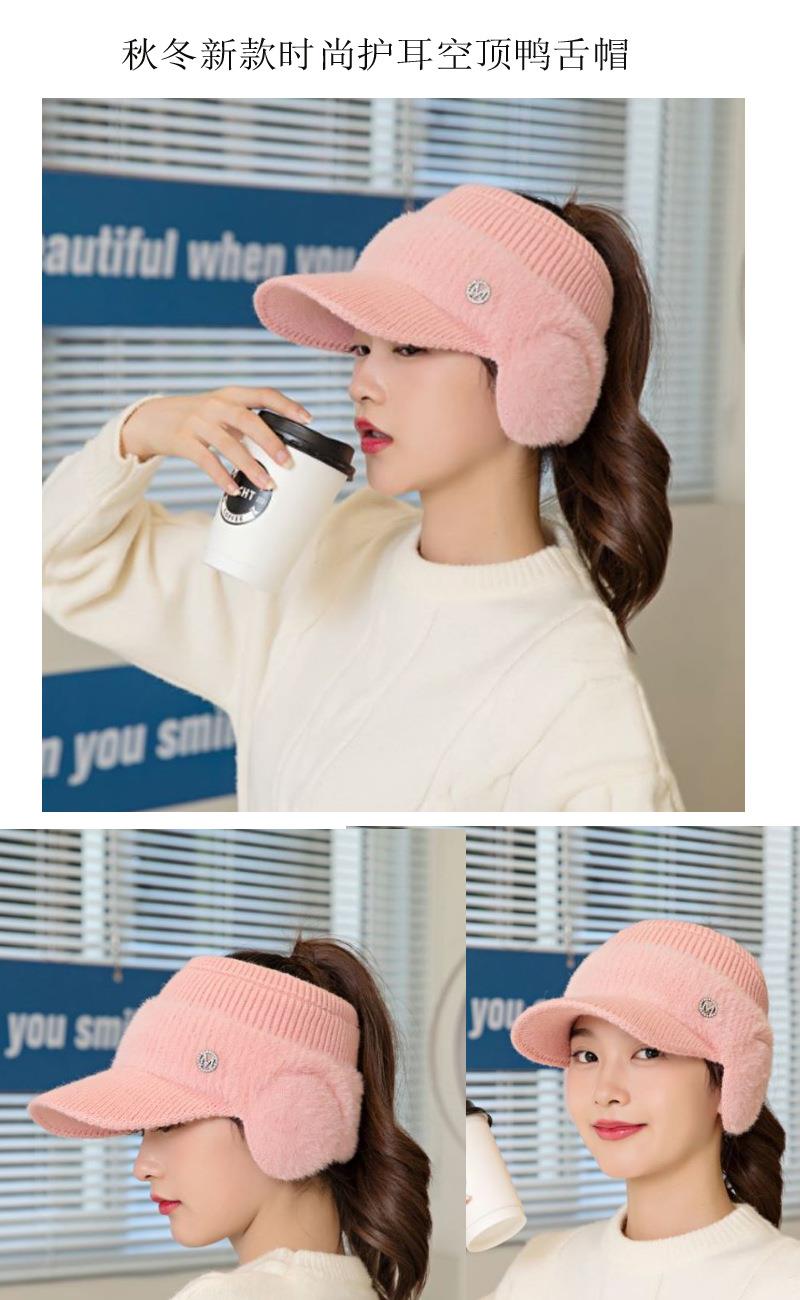 秋冬针织空顶帽子女士骑车跑步防风护耳毛线鸭舌帽韩版保暖棒球帽