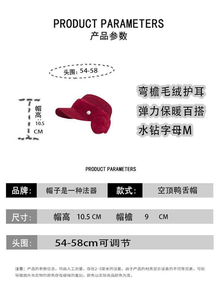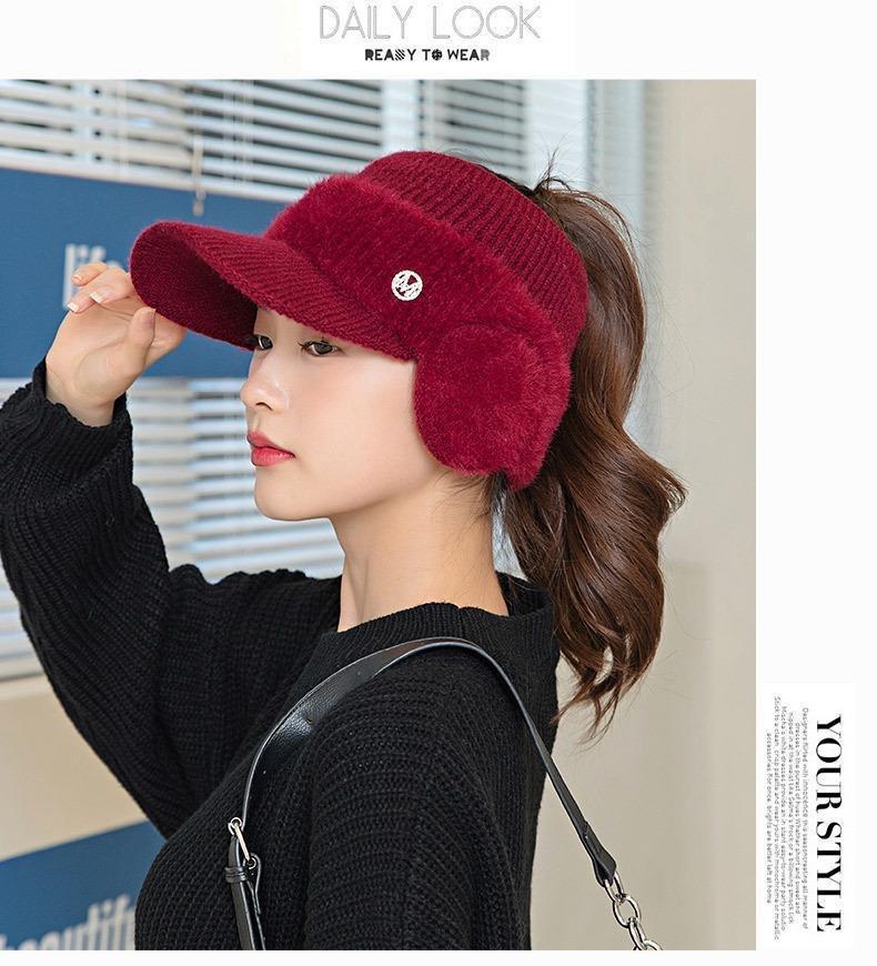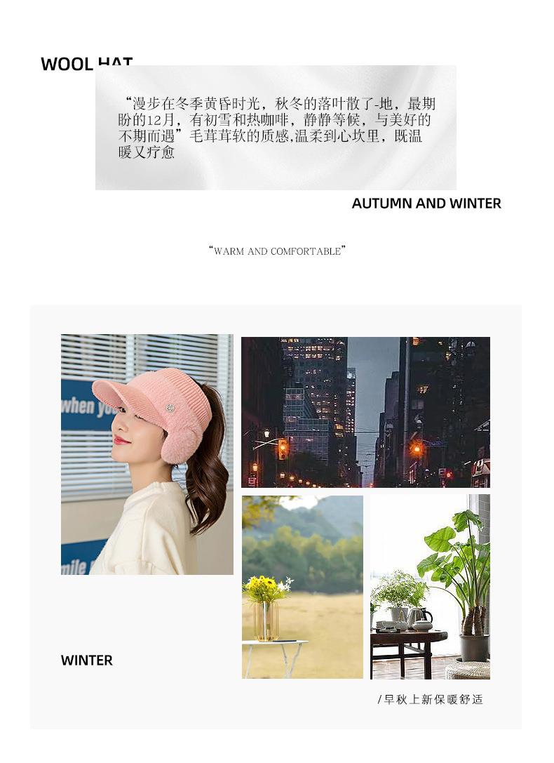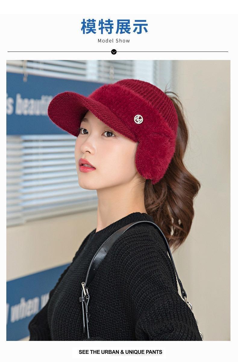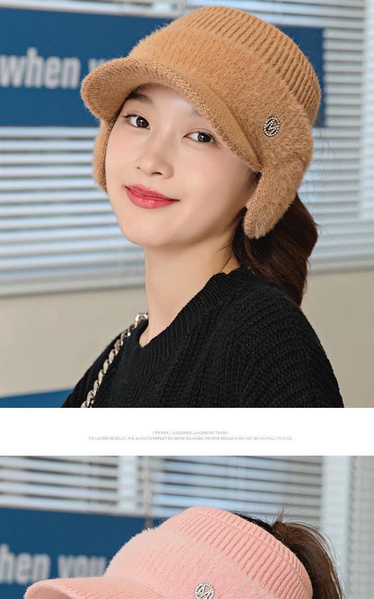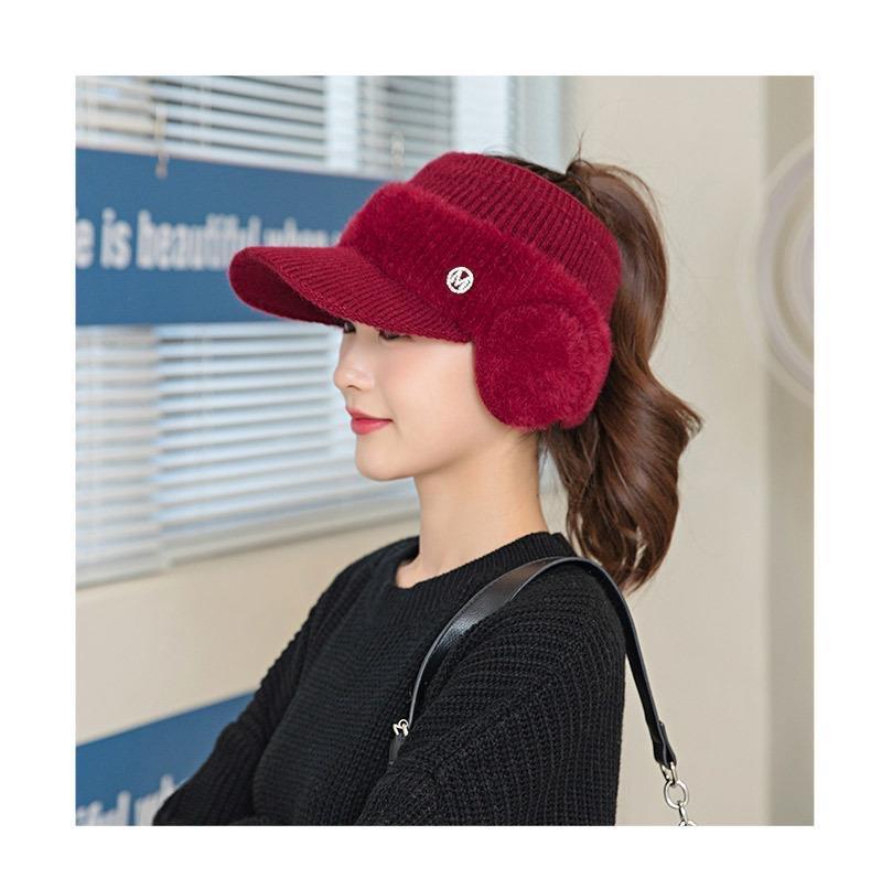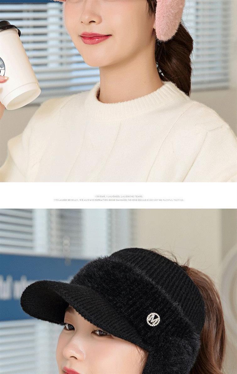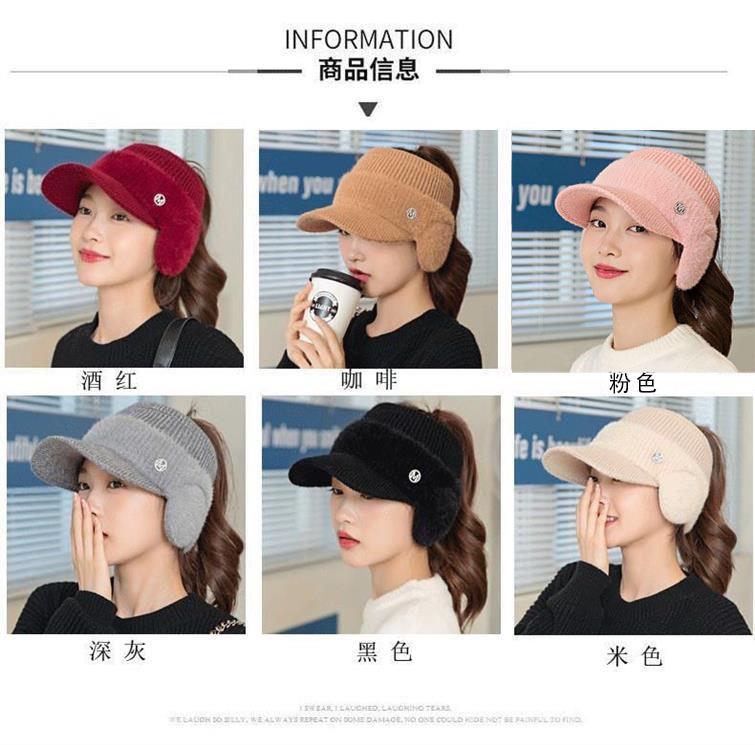 秋冬针织空顶帽子女士骑车跑步防风护耳毛线鸭舌帽韩版保暖棒球帽