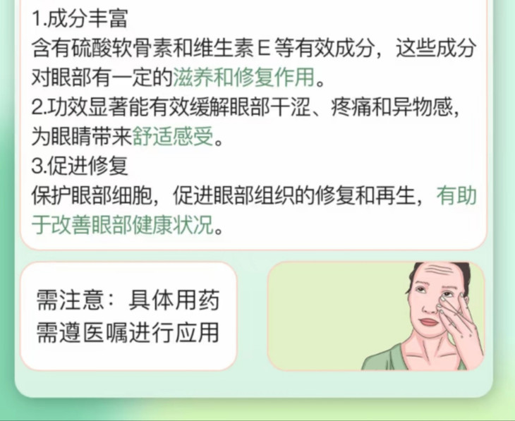 🔴硫酸软骨素 通过促进基质的生成 为细胞的迁移提供构架 有利于角膜上皮细胞的迁移 🔺促进角膜创伤的愈合 🔺改善血液循环 🔺加速新陈代谢 促进渗出液的吸收及炎症的消除!