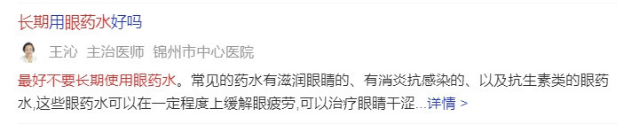 眼药水不能随便长期用 为了缓解眼部疲劳,很多人选择滴眼药水 但实则让眼睛长期接触抗生素、防腐剂 则会会结膜产生较大刺激 引起结膜囊菌群失调,甚至会引起感染