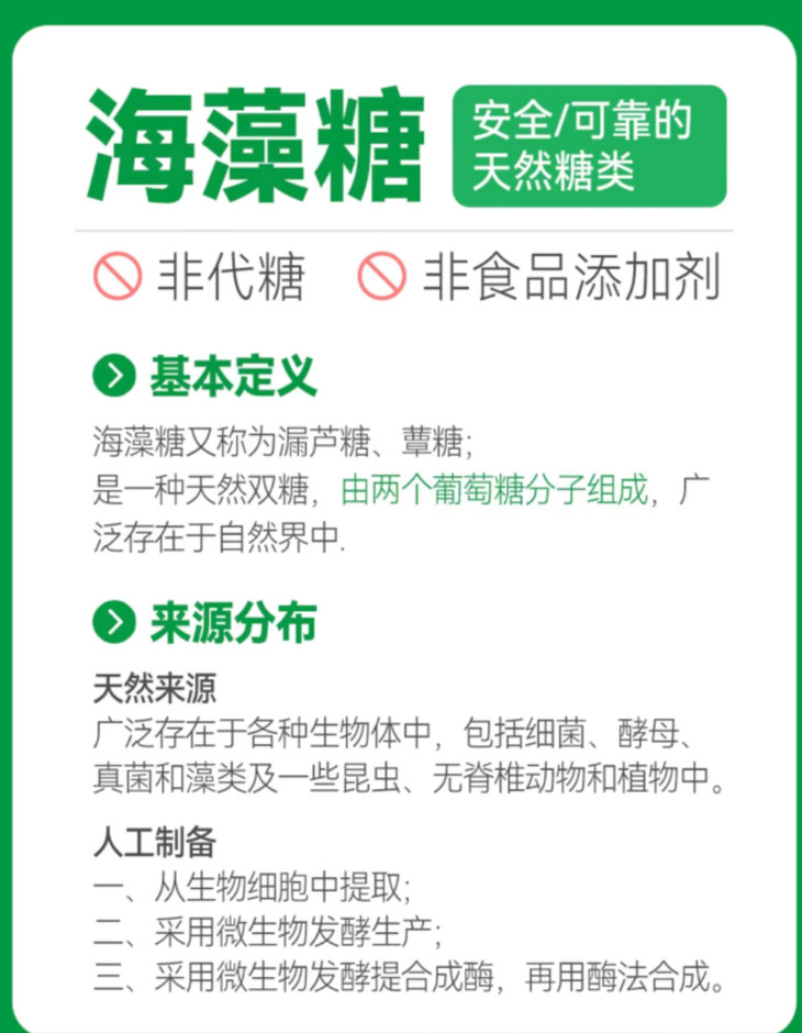 🔴海藻糖 海藻糖不仅是健康的天然糖类 它还能用于保护生物体内DNA分子 是因为海藻糖在高渗透压 及干燥失水等恶劣环境条件下 在细胞表面能形成独特的保护膜! 🔺防止放射线引起的损伤 🔺防止生物体膜和膜蛋白的变性 外源性的海藻糖对生物体 也具有非特异性保护作用~