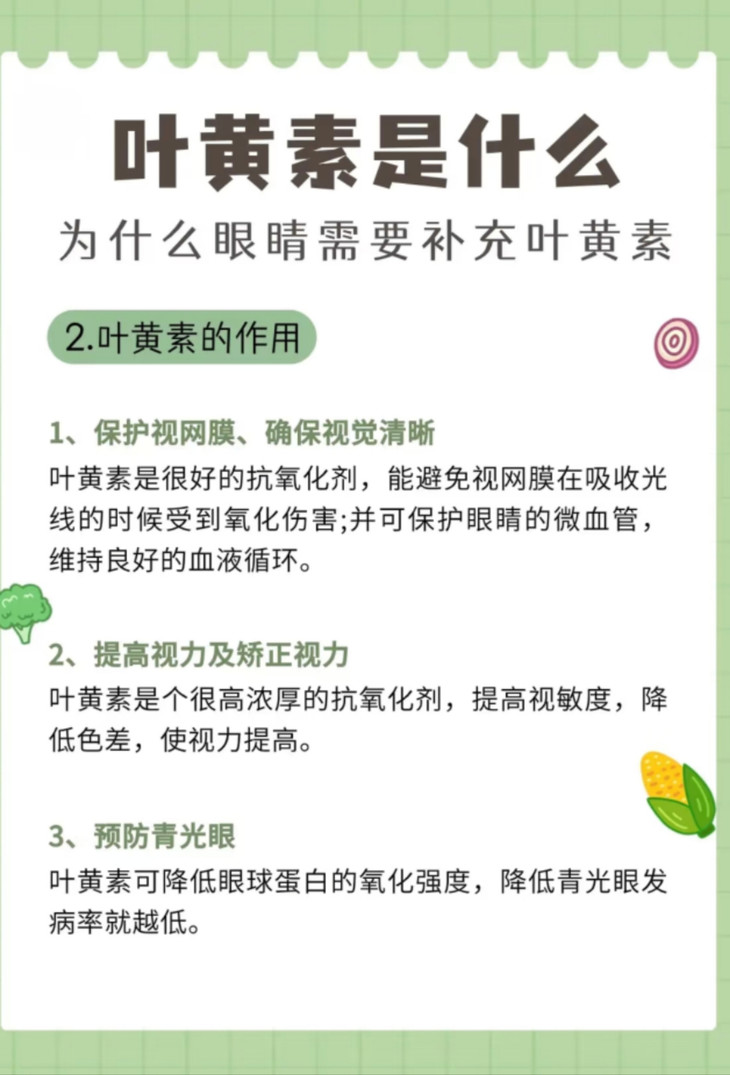 🔴王牌成分——叶黄素 叶黄素被称为“眼黄金” 叶黄素是视网膜黄斑中的主要类胡萝卜素 是保护视网膜的卫士 🔺处理有害蓝光 🔺抗氧化,延缓眼部病变 可在一定程度上过滤进入人眼视网膜的蓝光 有效降低视觉损害,同时抑制氧自由基的活性 阻止氧自由基对视细胞的破坏!