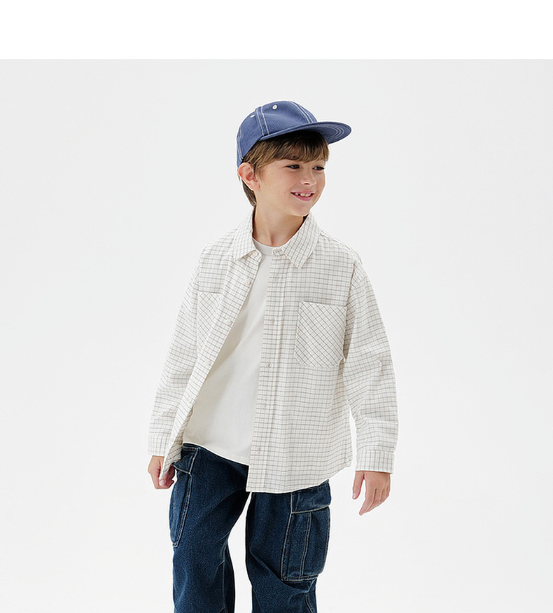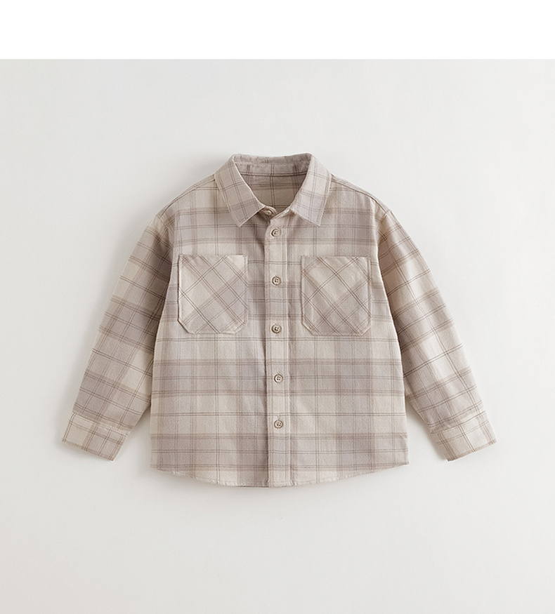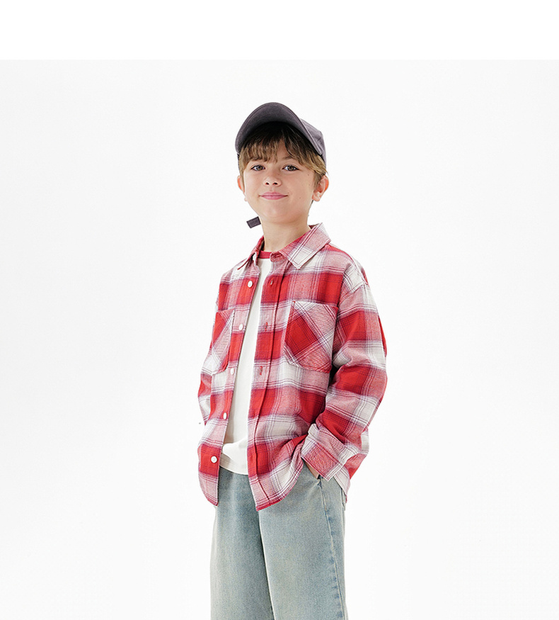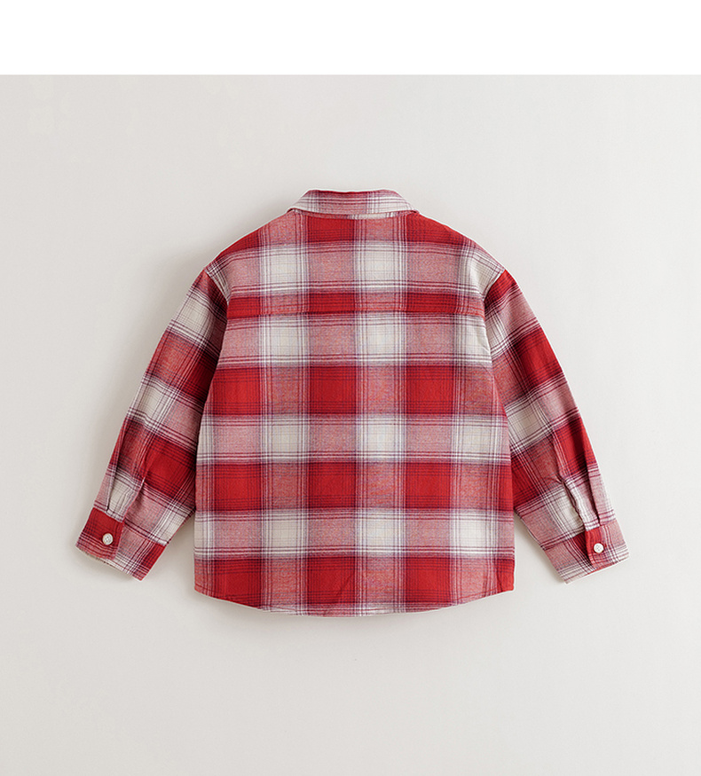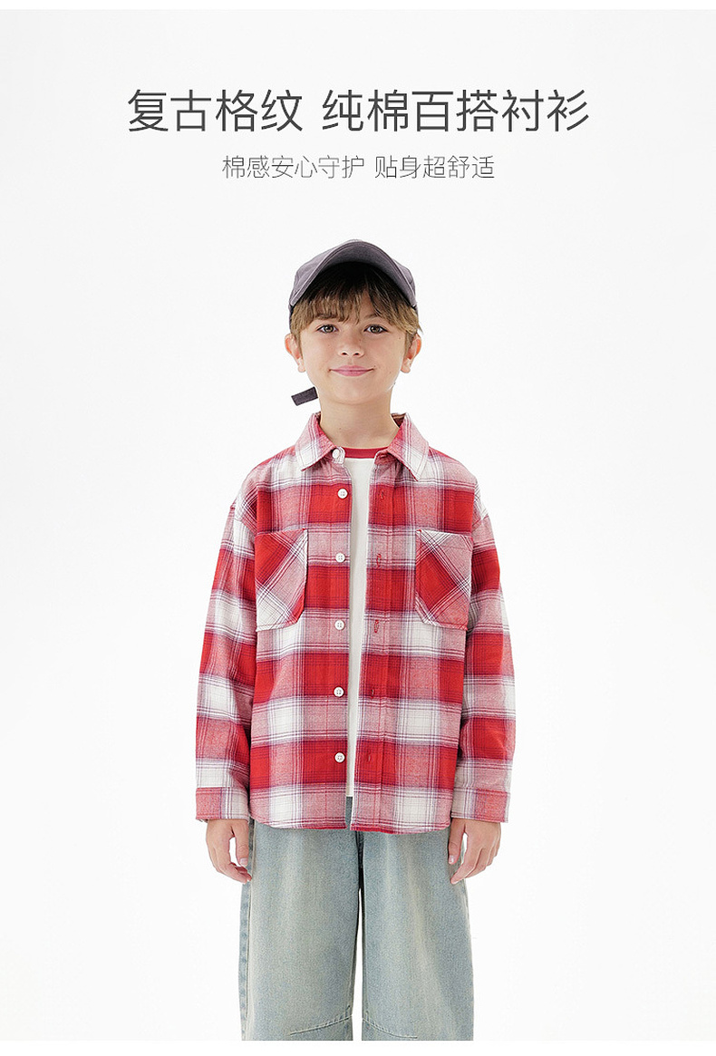 马克珍妮男童复古格纹纯棉百搭衬衫2025年秋装新款551700