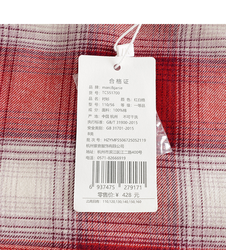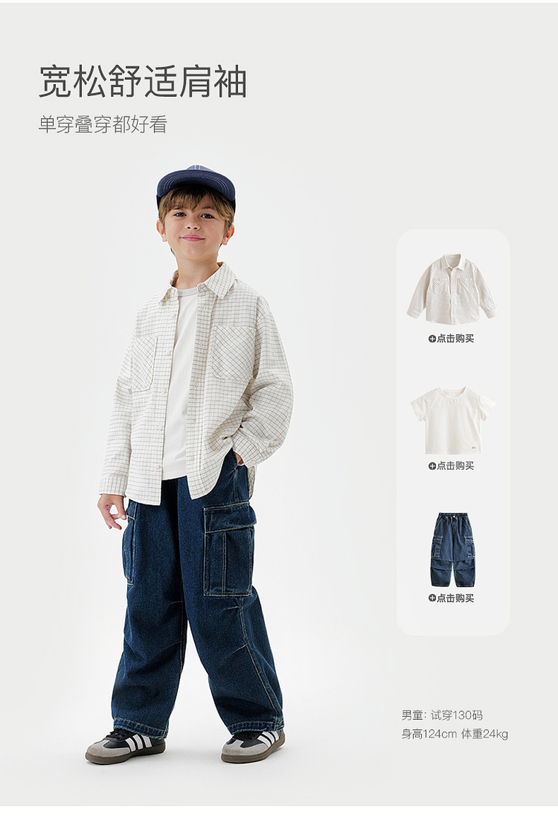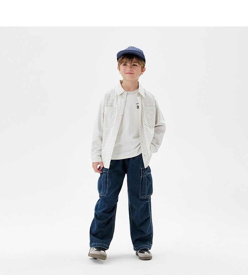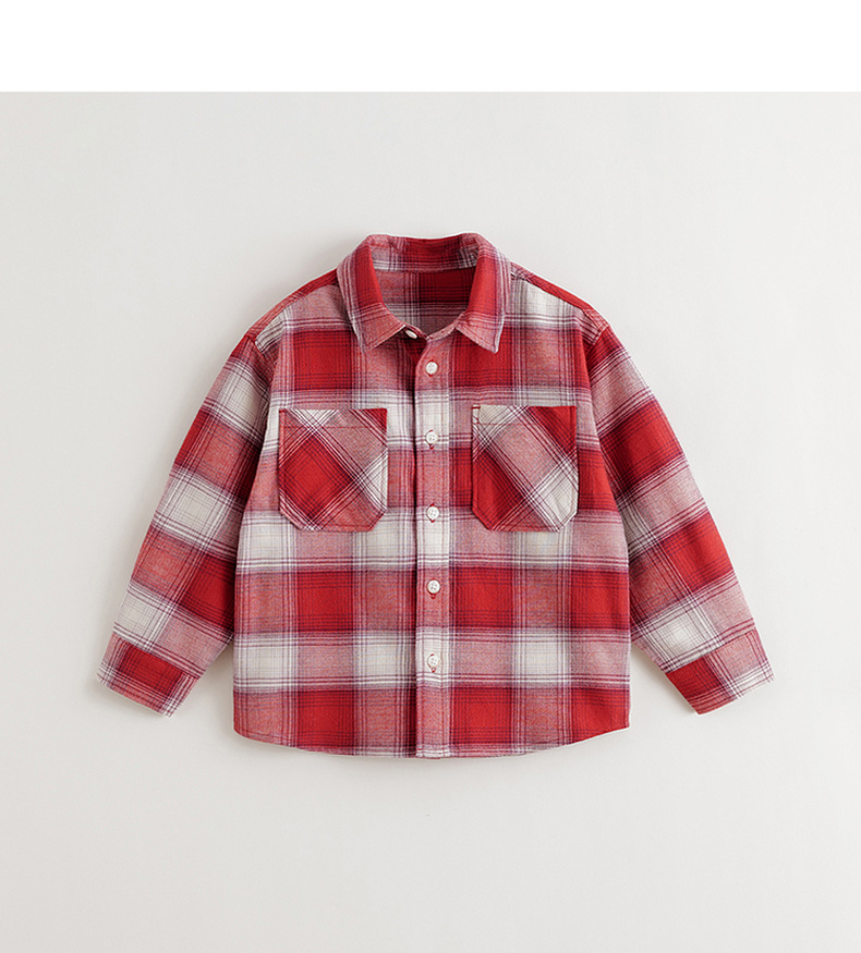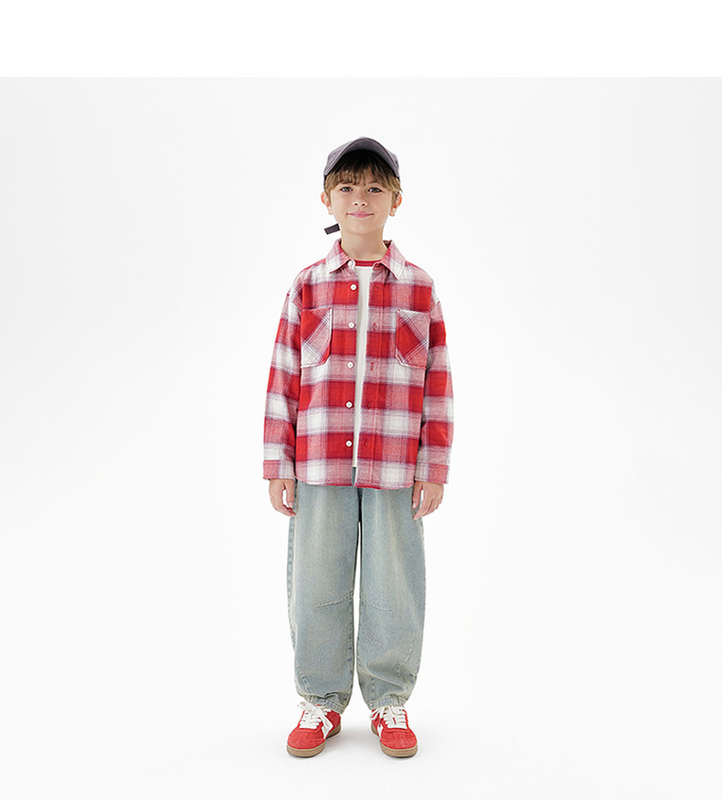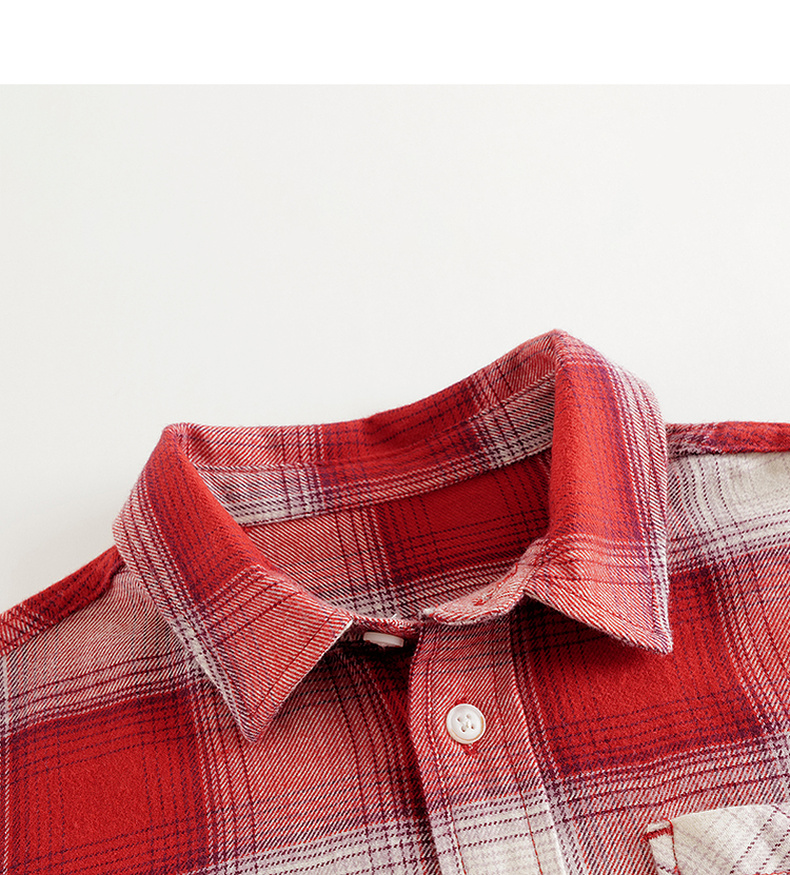 马克珍妮男童复古格纹纯棉百搭衬衫2025年秋装新款551700