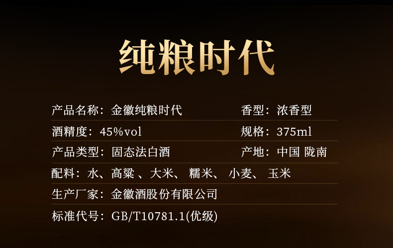 金徽酒 45度金徽纯粮时代 浓香型白酒