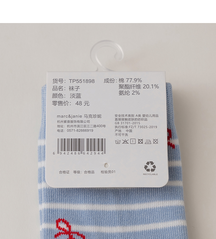 马克珍妮女童四季穿蝴蝶结中筒袜2025年新款551898