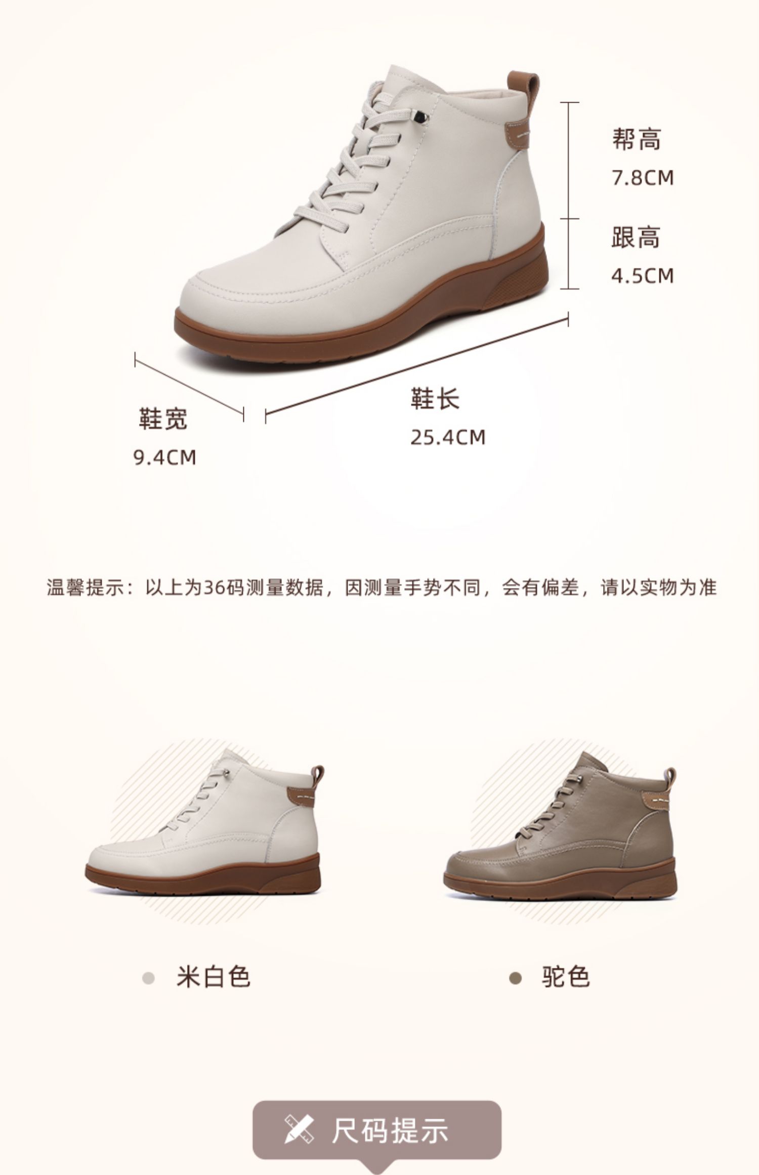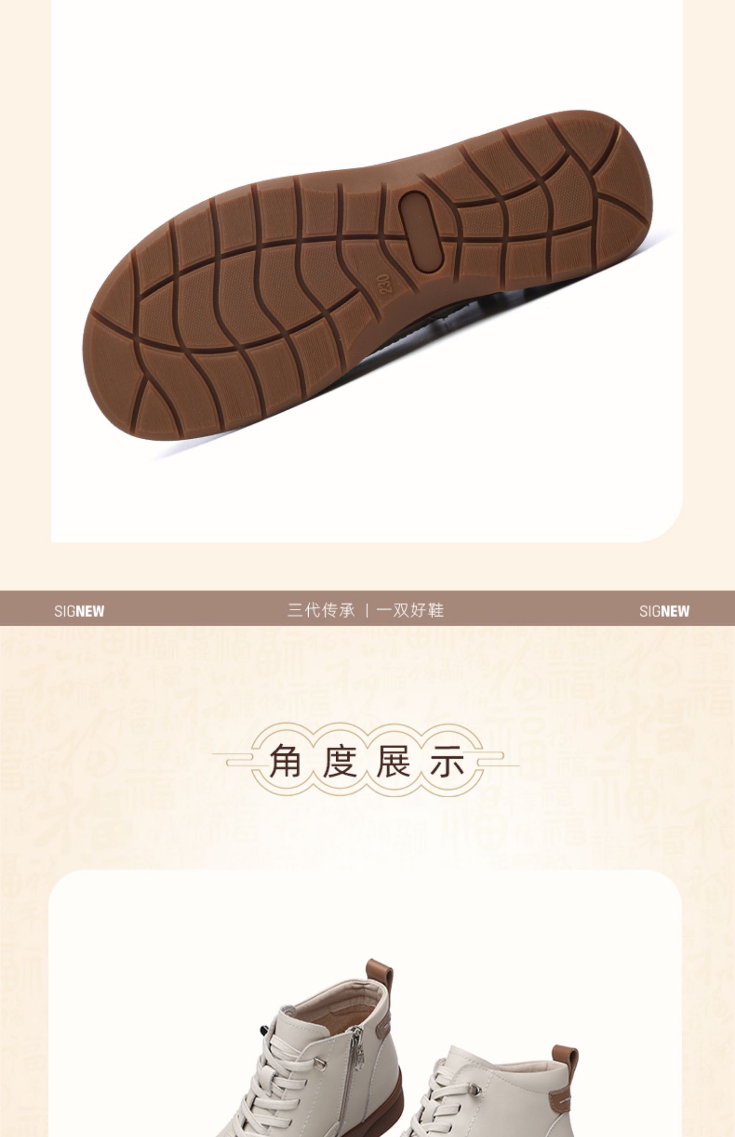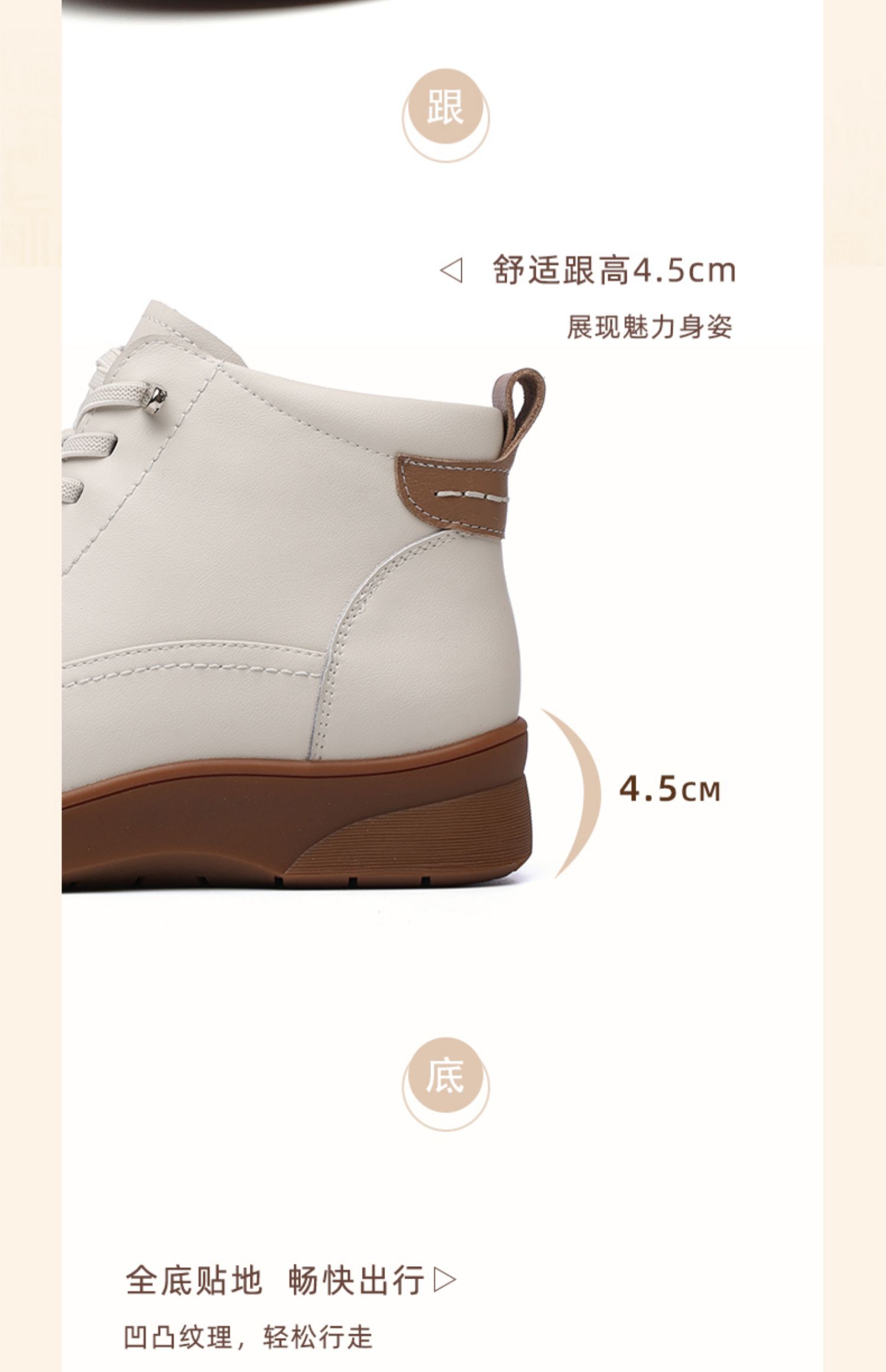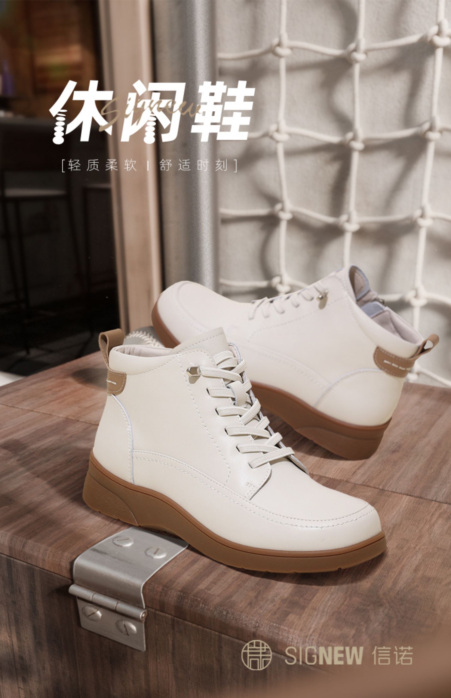 信诺舒适平底女鞋不加绒单靴2024新款秋冬季短靴厚底妈妈鞋子皮鞋M203-6TC