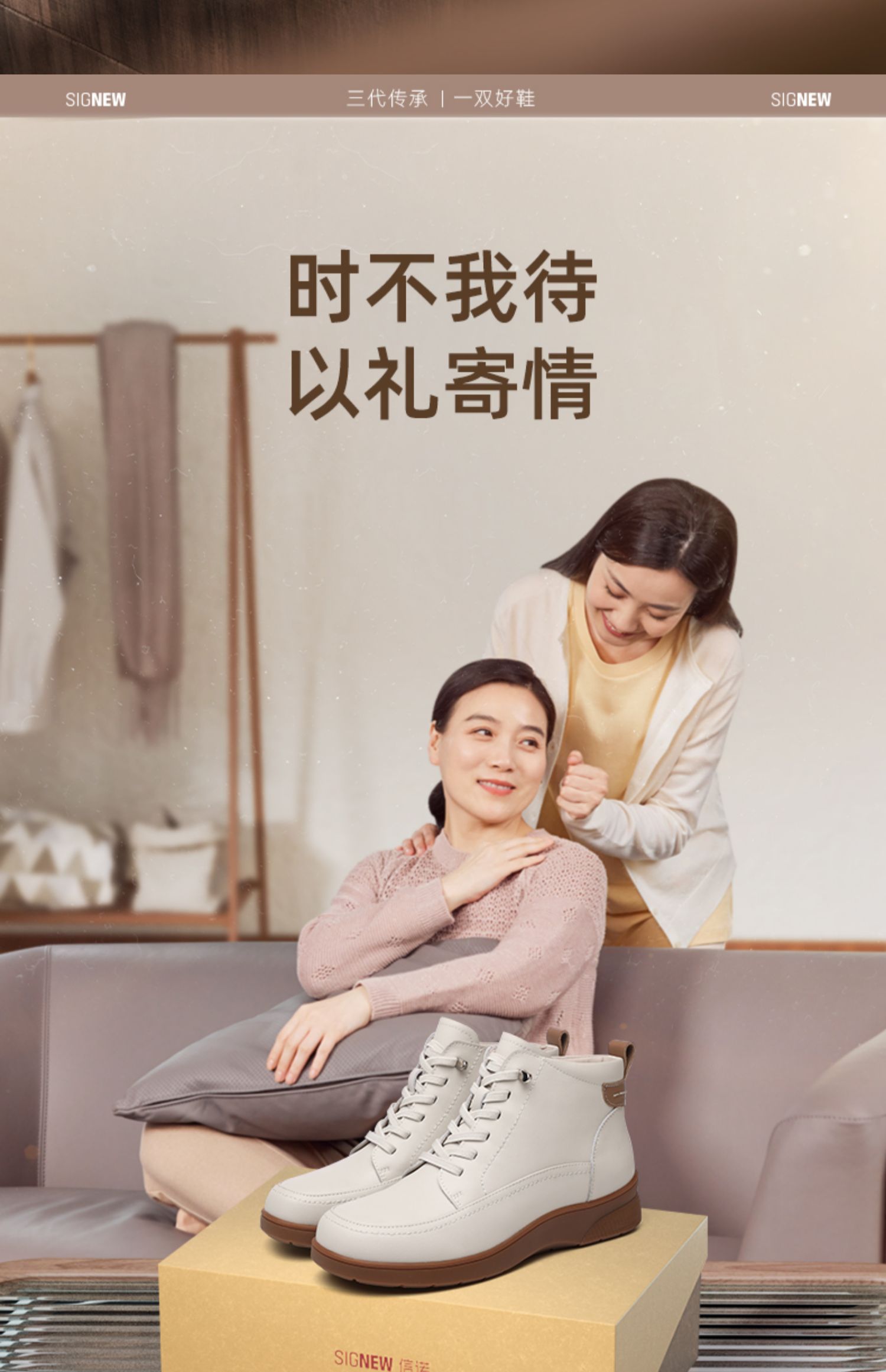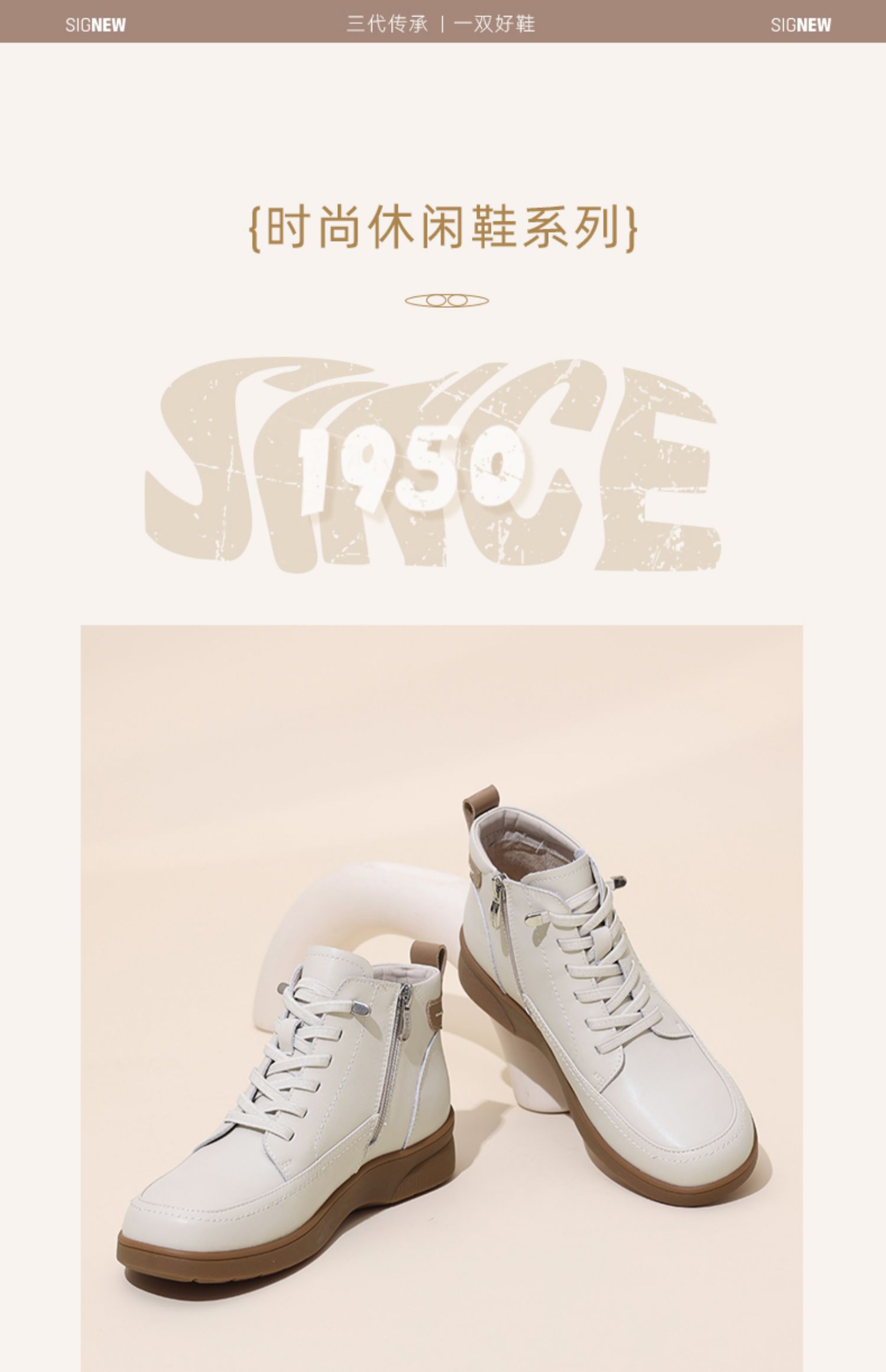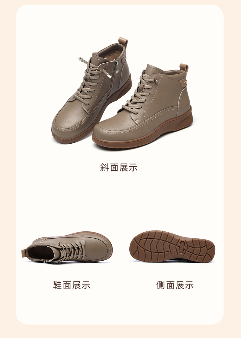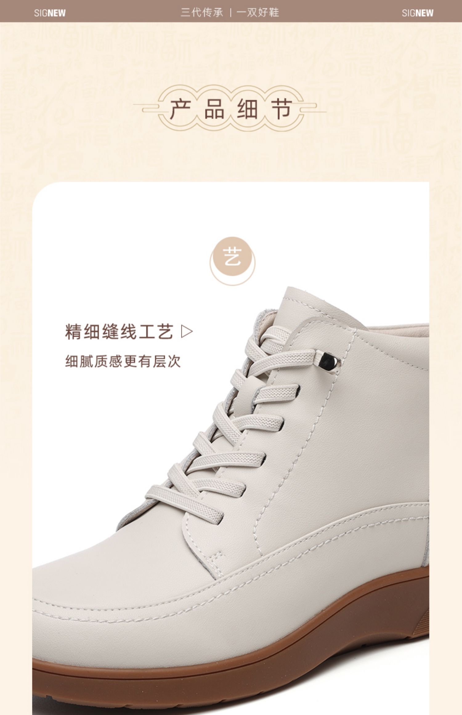 信诺舒适平底女鞋不加绒单靴2024新款秋冬季短靴厚底妈妈鞋子皮鞋M203-6TC