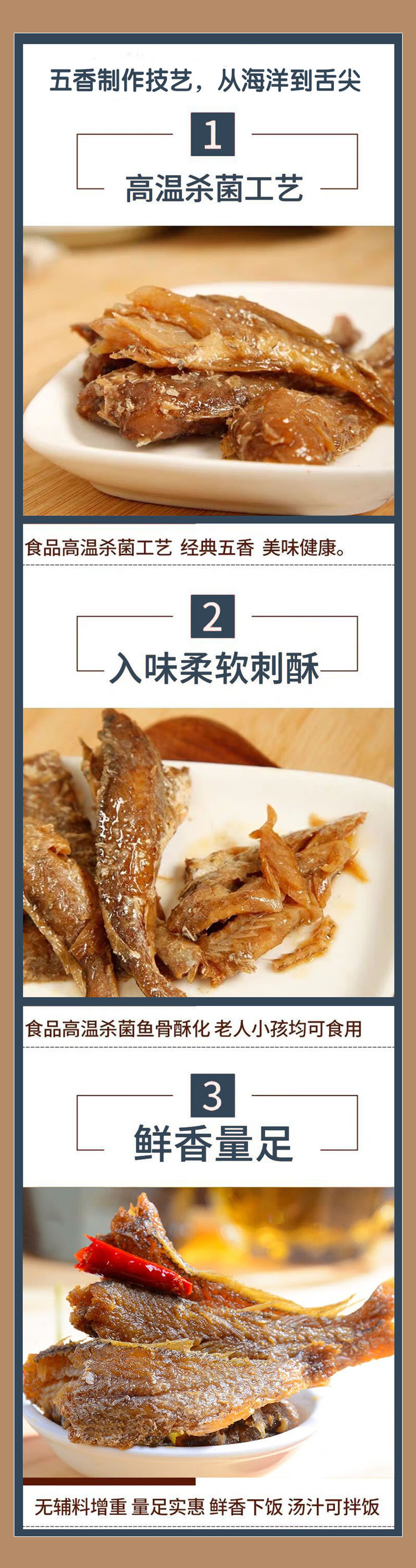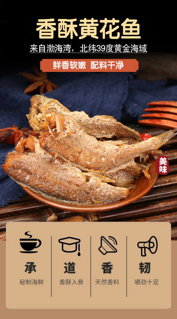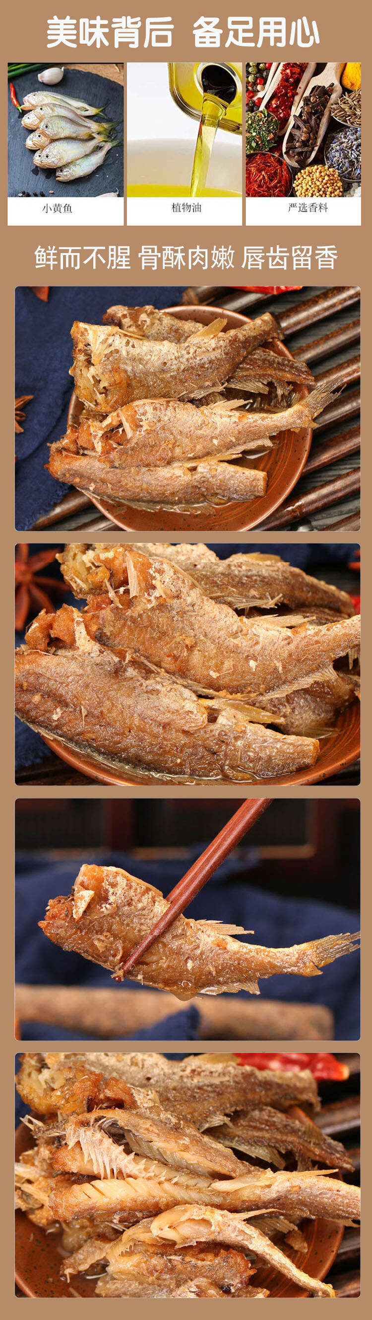 香酥黄花鱼,20大罐组合,精选渤海湾深海小黄鱼,鲜活制作,传承五香制作技艺,香辛料入味,配料表干干净净,肉质饱满,外酥里嫩,吃法百搭,口感鲜香醇厚,好吃过瘾!M