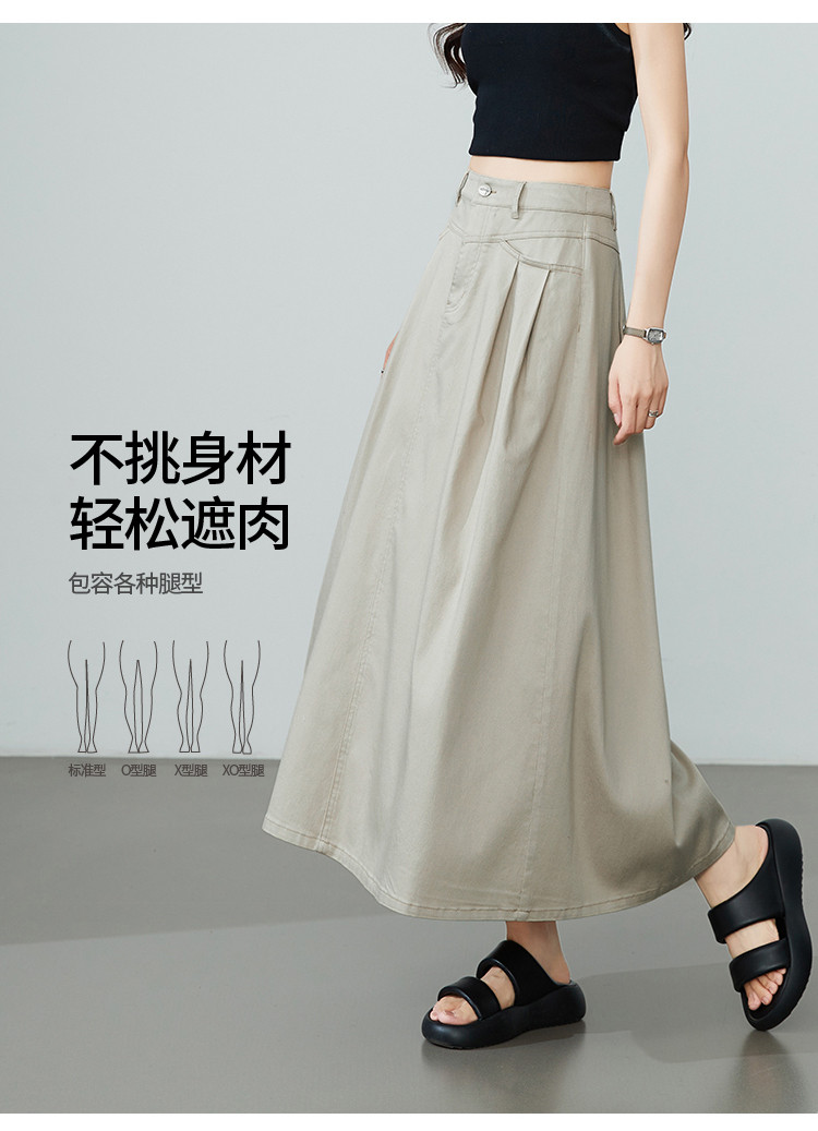 【立褶牛仔半身裙】逸阳软垂天丝棉飘逸高级感中长款裙子7096