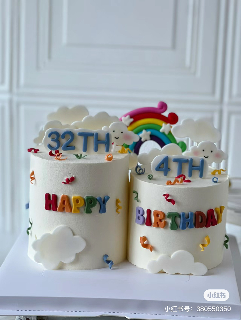 双拼INS小彩虹,奶油配翻糖蛋糕,提前48小时以上预定
