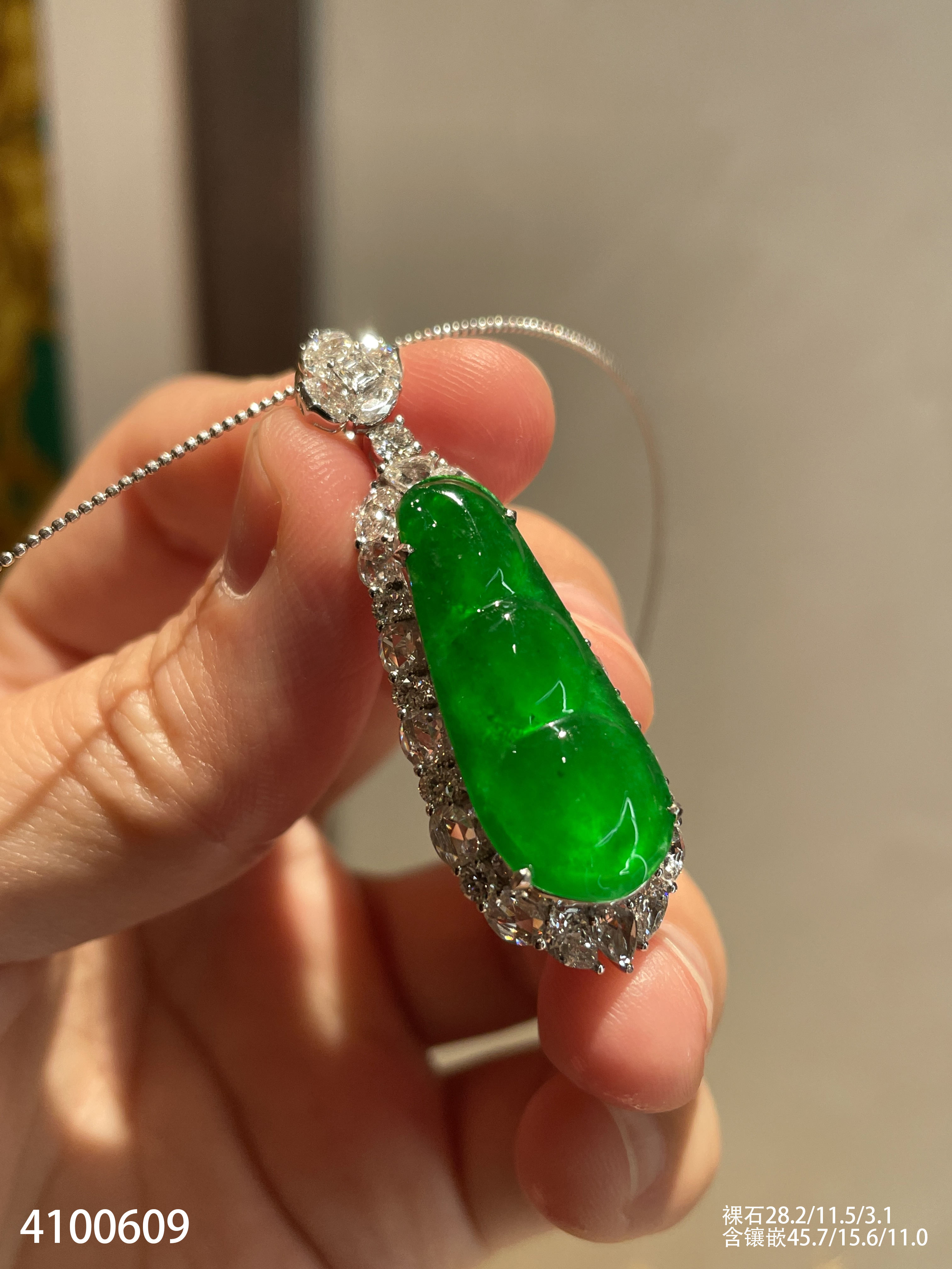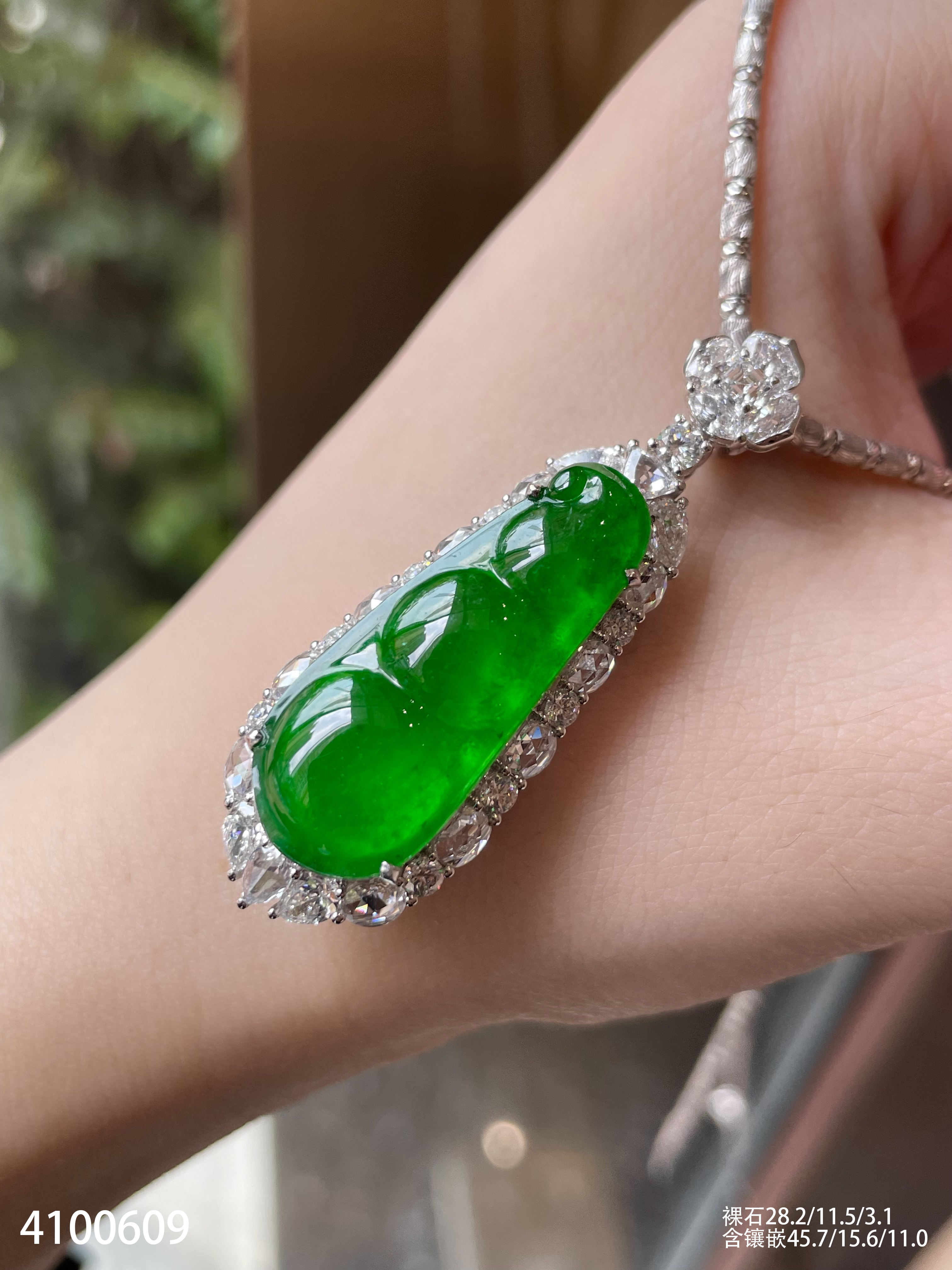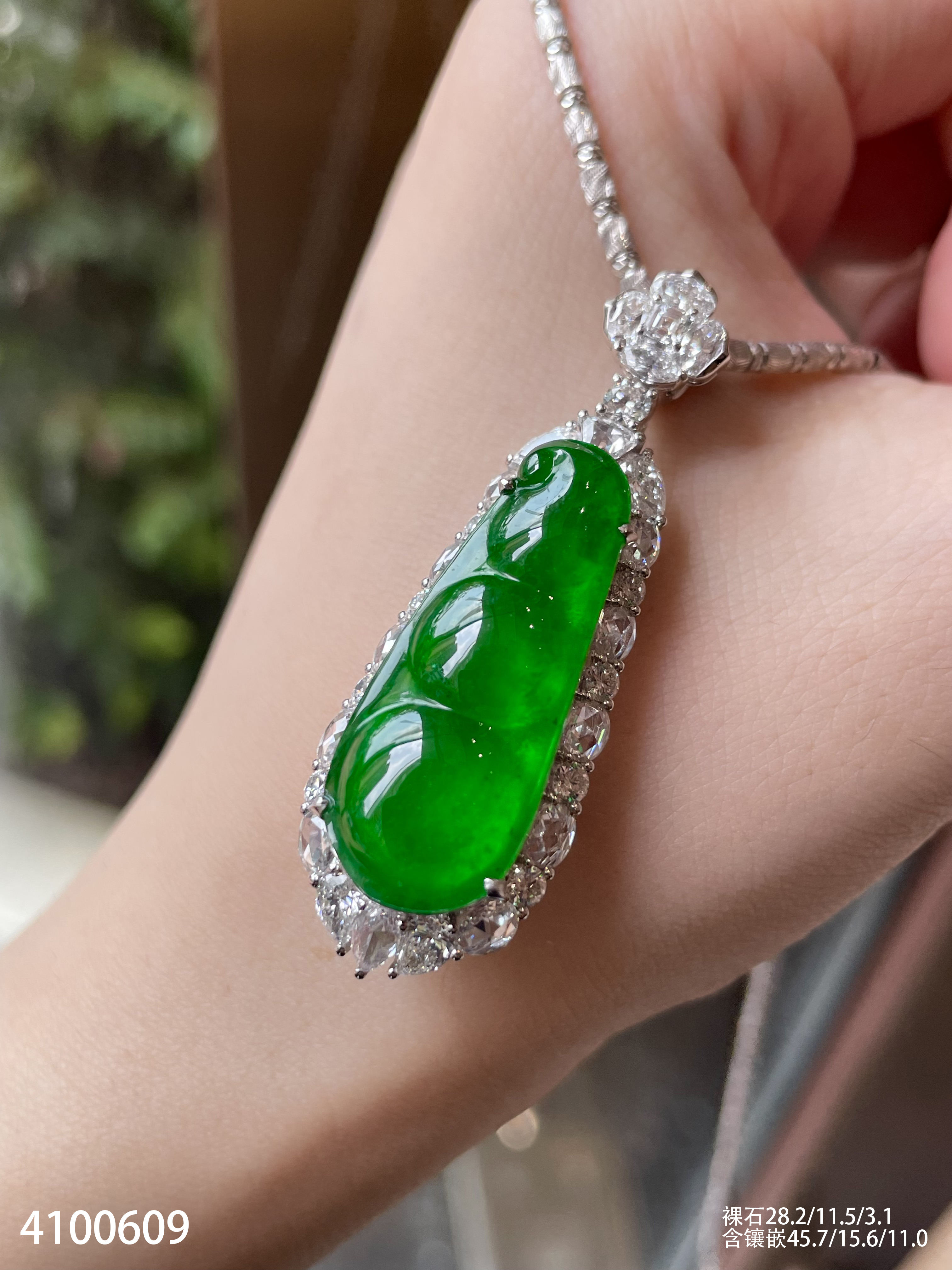 老坑玻璃种帝王绿福豆吊坠【4100609】具体价格微信咨询