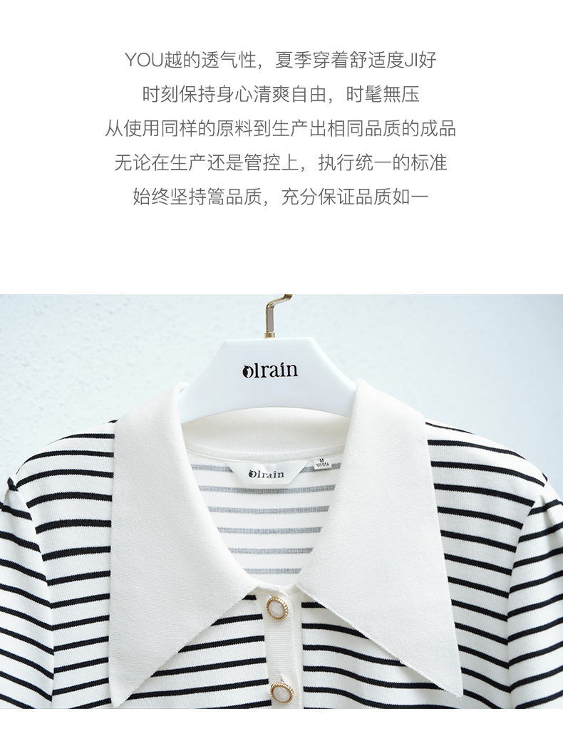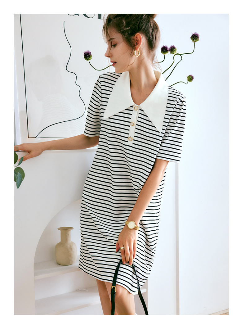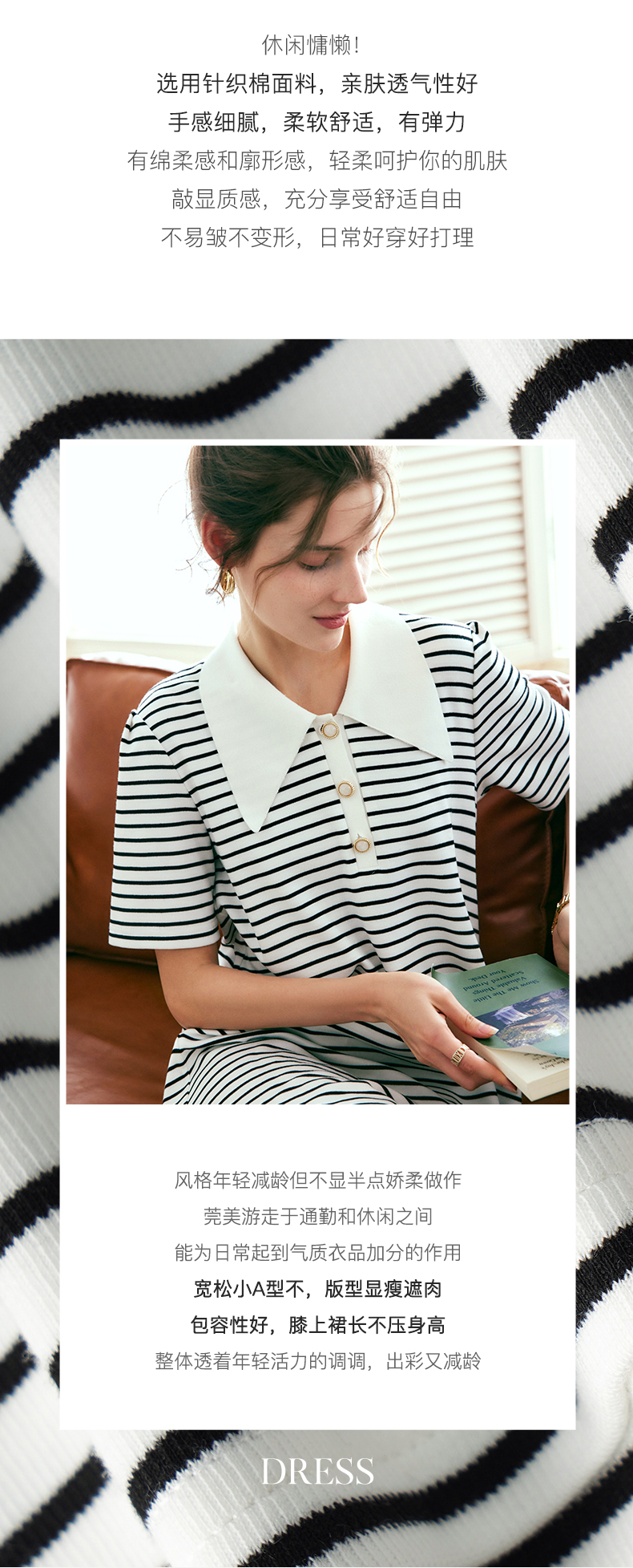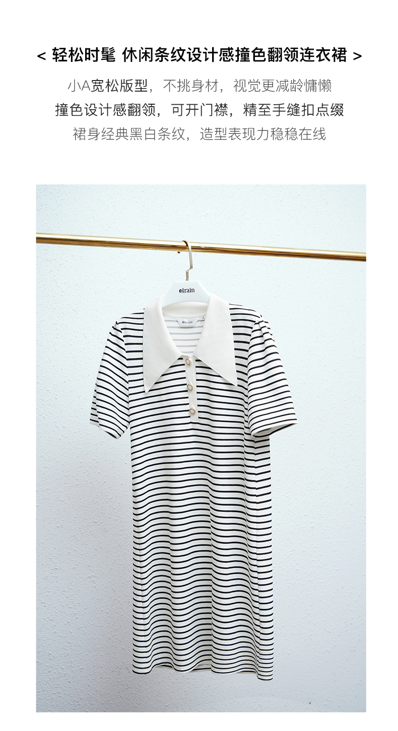 OLrain法式高级穿搭条纹T恤连衣裙女夏季2022新款气质减龄翻领裙