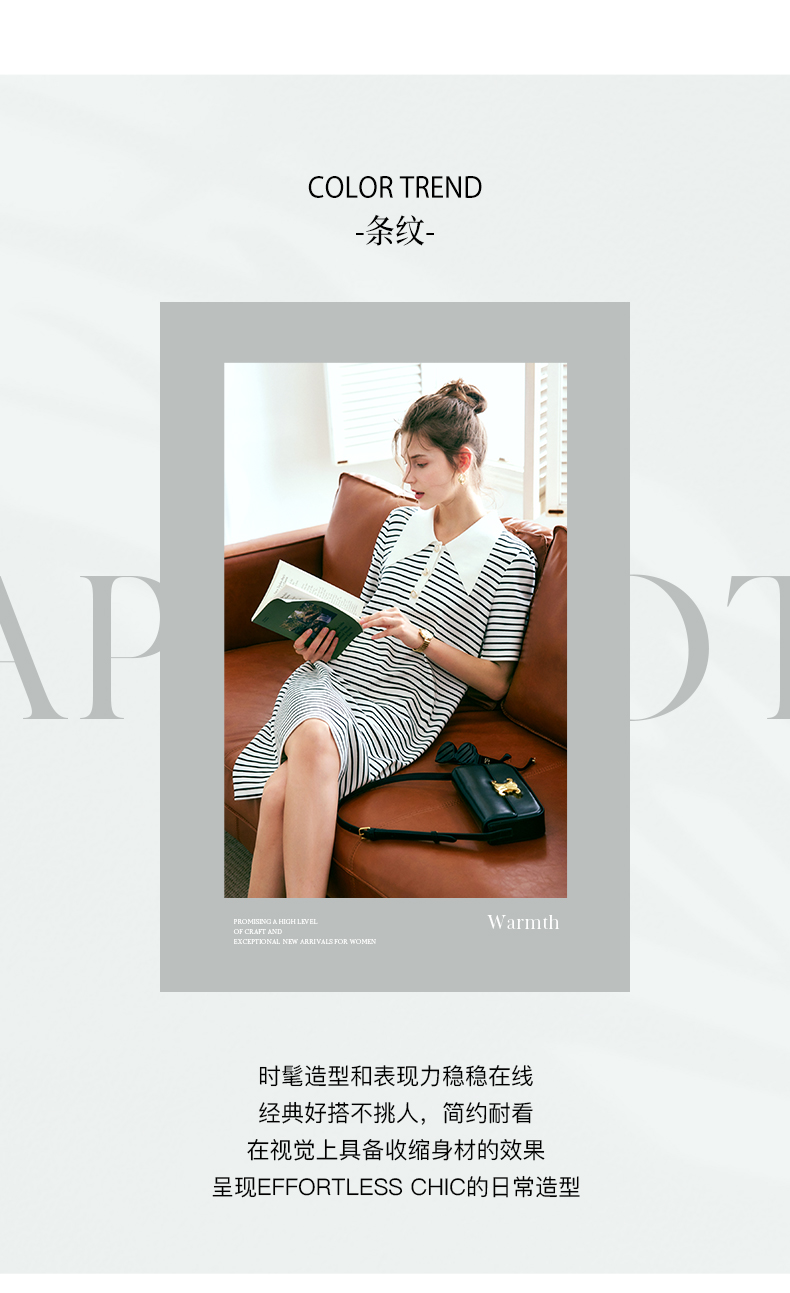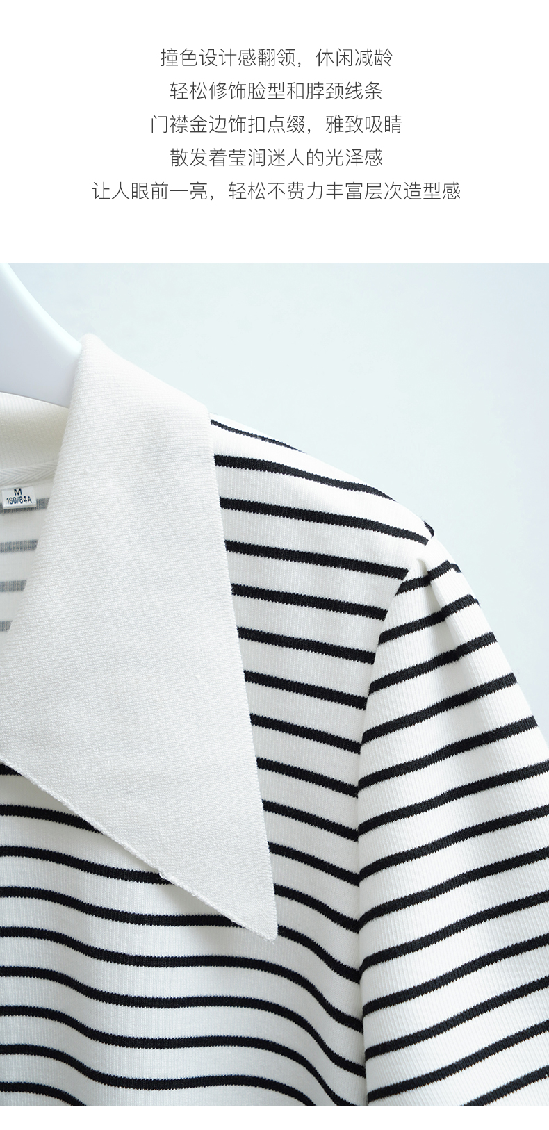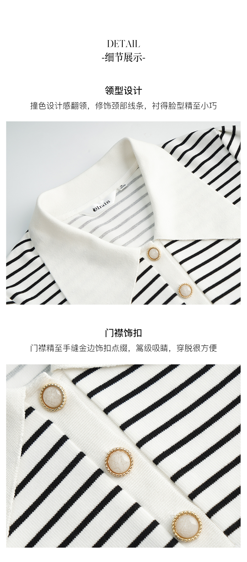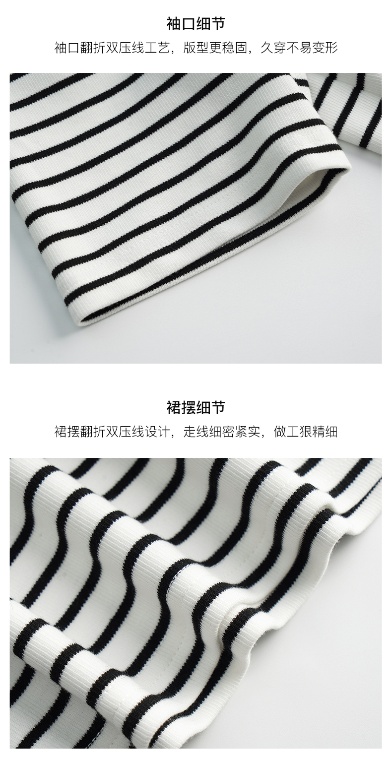 OLrain法式高级穿搭条纹T恤连衣裙女夏季2022新款气质减龄翻领裙