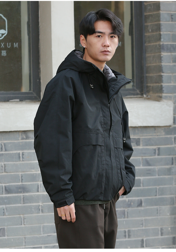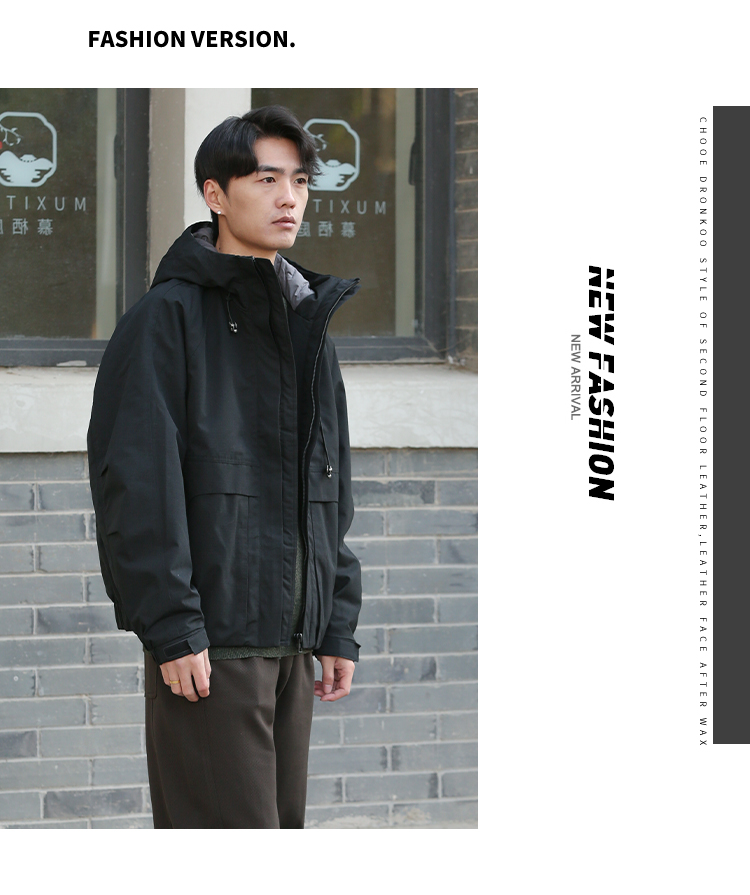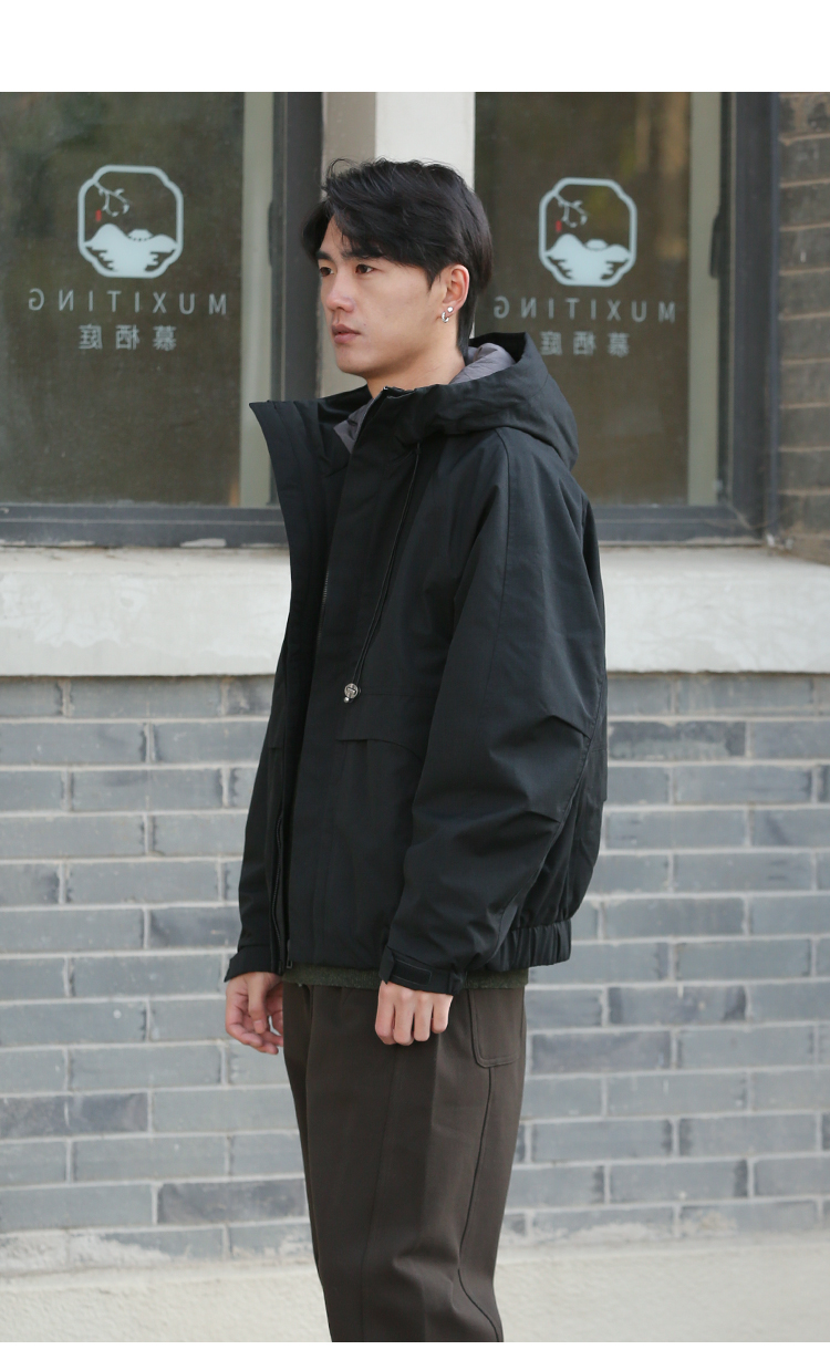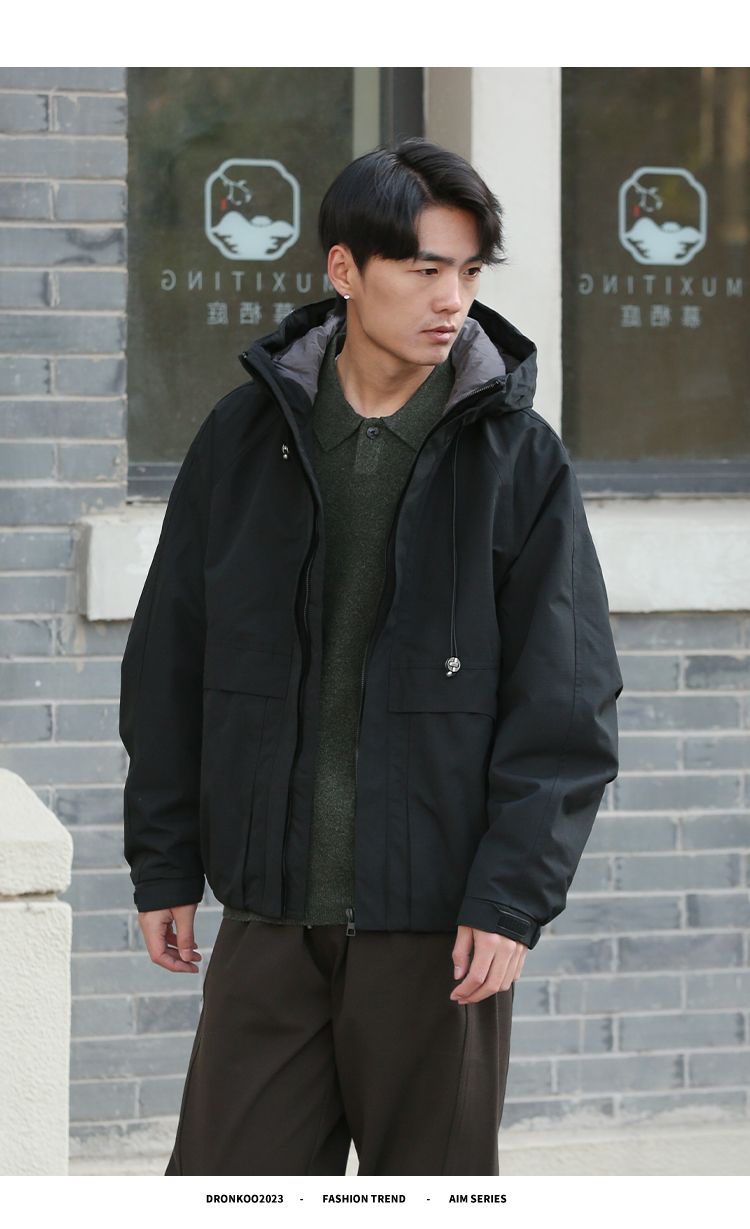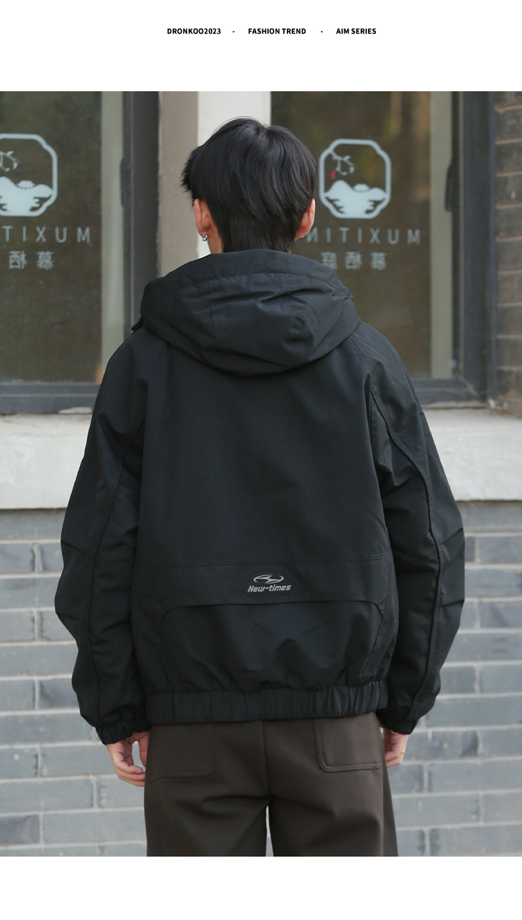 DRONKOO 2025 连帽弹力绳金属扣后背活页字母短款中厚棉服