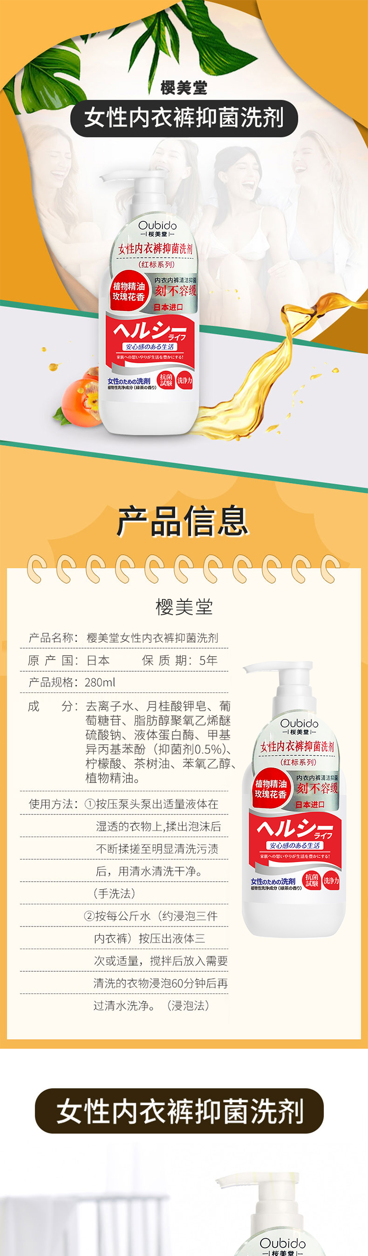 日本进口樱美堂女性内衣裤抑菌洗剂280ml