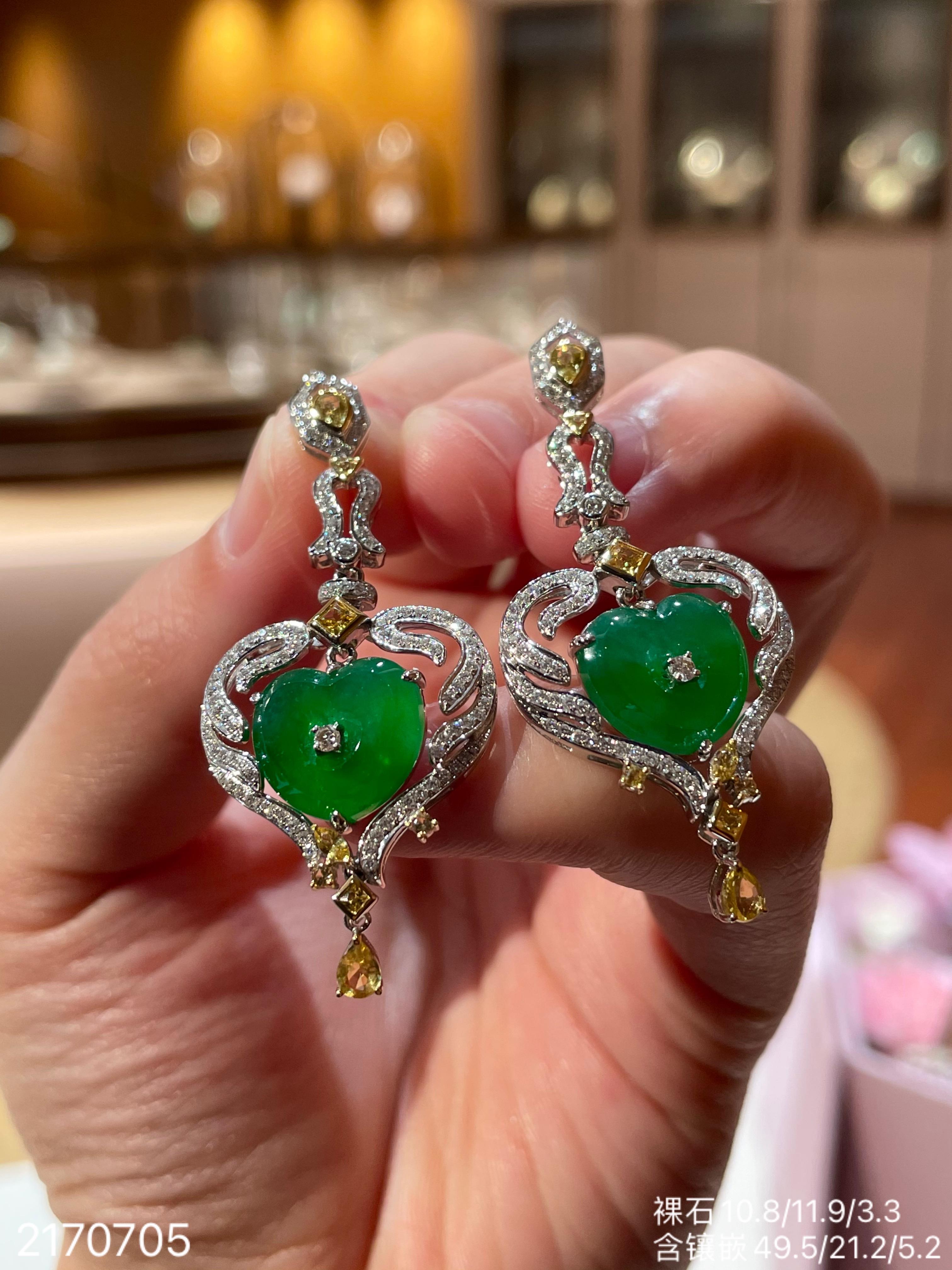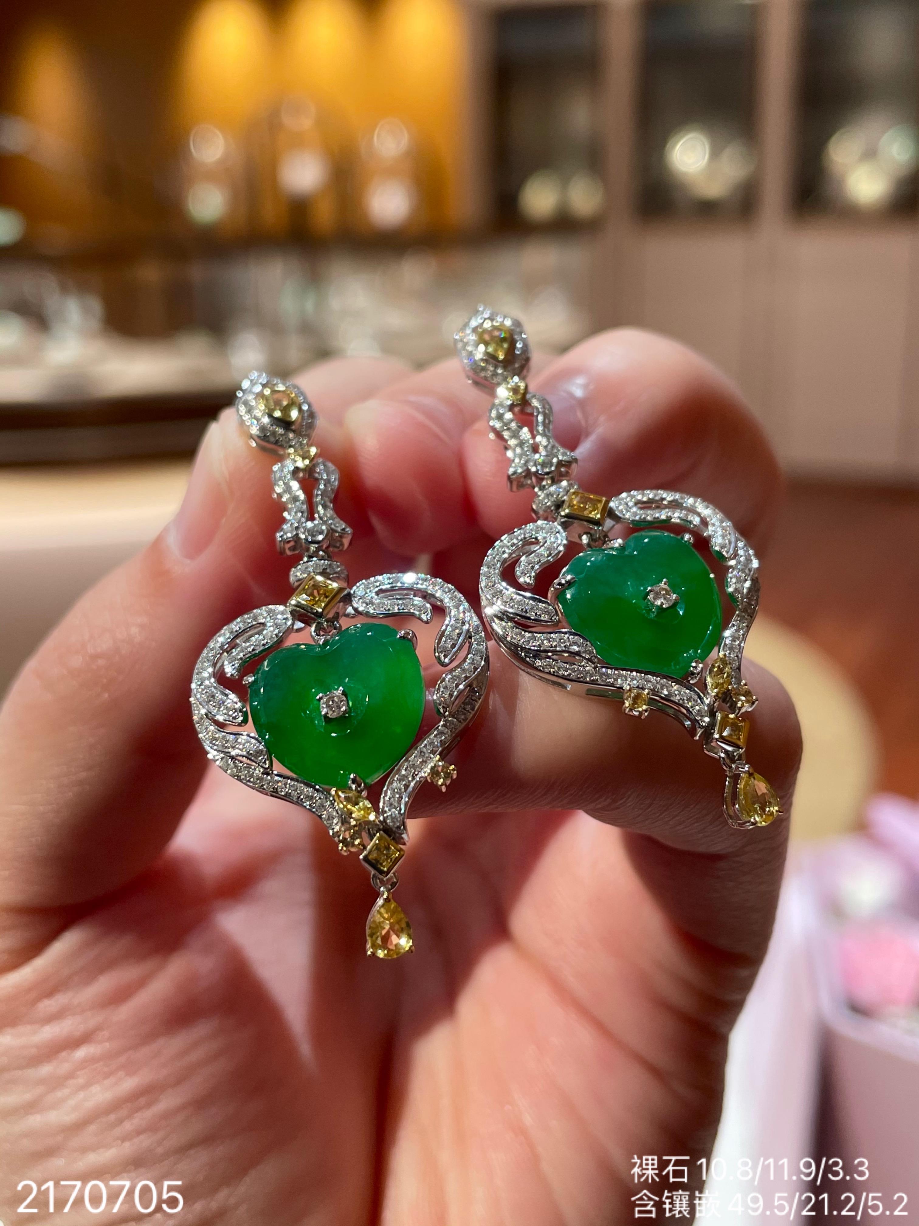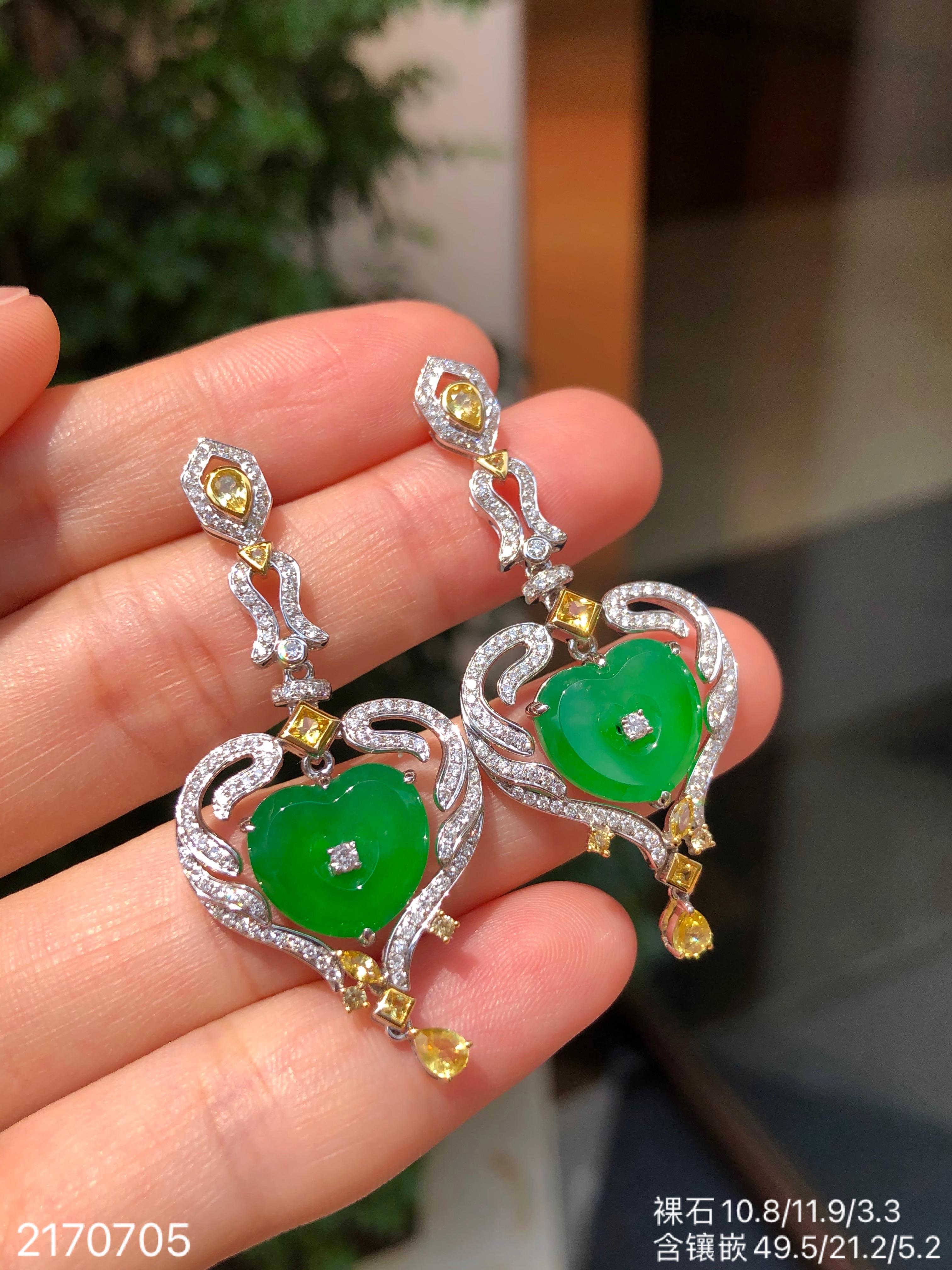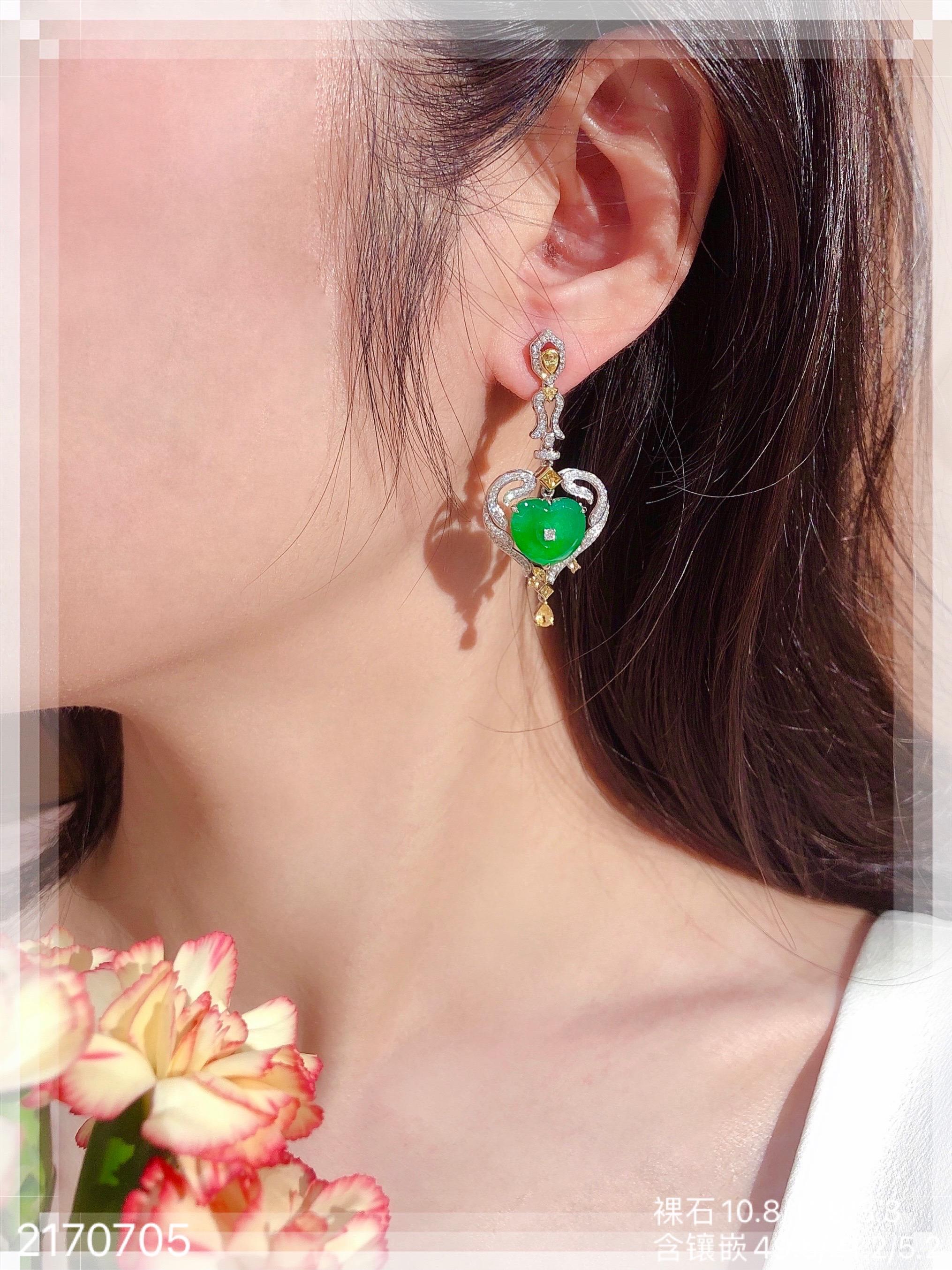 高冰种艳绿葫芦耳坠 72999【6024304】